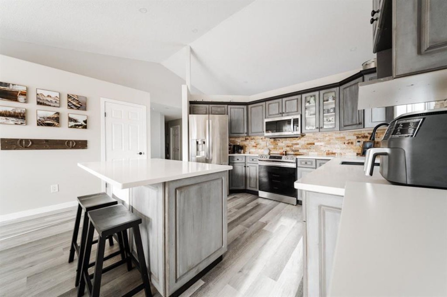 Welcome to 164 Eglert Drive: a beautifully maintained bi level offering 1,496 sq ft of warm rustic charm paired with thoughtful modern updates. Located in the highly sought after Bs of Timberlea, this home is close to schools, trails, parks, and bus stops for site workers, making it an ideal choice for families and commuters alike. The property offers a driveway with parking for two and a 23x24 attached double garage that is heated and fully finished. A man door was added for convenience, and the garage floor has been painted for a clean, polished look. Shingles were updated in 2020, providing peace of mind for years to come. Inside, the layout is functional and inviting. The main living room is bright with large windows that allow natural light to pour in. The kitchen is finished with beautiful white quartz countertops, a tasteful stone backsplash, stainless steel appliances, and an eat up island that opens seamlessly to the dining space, creating the perfect setup for entertaining. The dishwasher was replaced in 2023. Fresh updates throughout the home blend country warmth with clean, modern finishes. The upper level offers three bedrooms, including a spacious primary suite complete with a walk in closet and private four piece ensuite. A stylish barn door adds character and charm to the ensuite, and the room comfortably accommodates a king size bed. A four piece main bathroom serves the additional bedrooms. The fully developed basement provides exceptional additional living space with luxury vinyl plank flooring replacing the previous carpet. This level includes a large family room, two oversized bedrooms, and a three piece bathroom, offering flexibility for guests, a home office, gym, or media space. Large windows throughout keep the lower level bright and welcoming. The washer and dryer was replaced in 2025, the hot water tank updated in 2022, and central air conditioning was added in 2023. The backyard is fully fenced and offers a great outdoor space to enjoy. With its thoughtful updates, desirable location, and welcoming feel, 164 Eglert Drive is a move in ready home in one of Timberlea’s most loved family neighbourhoods. Schedule your private showing today.