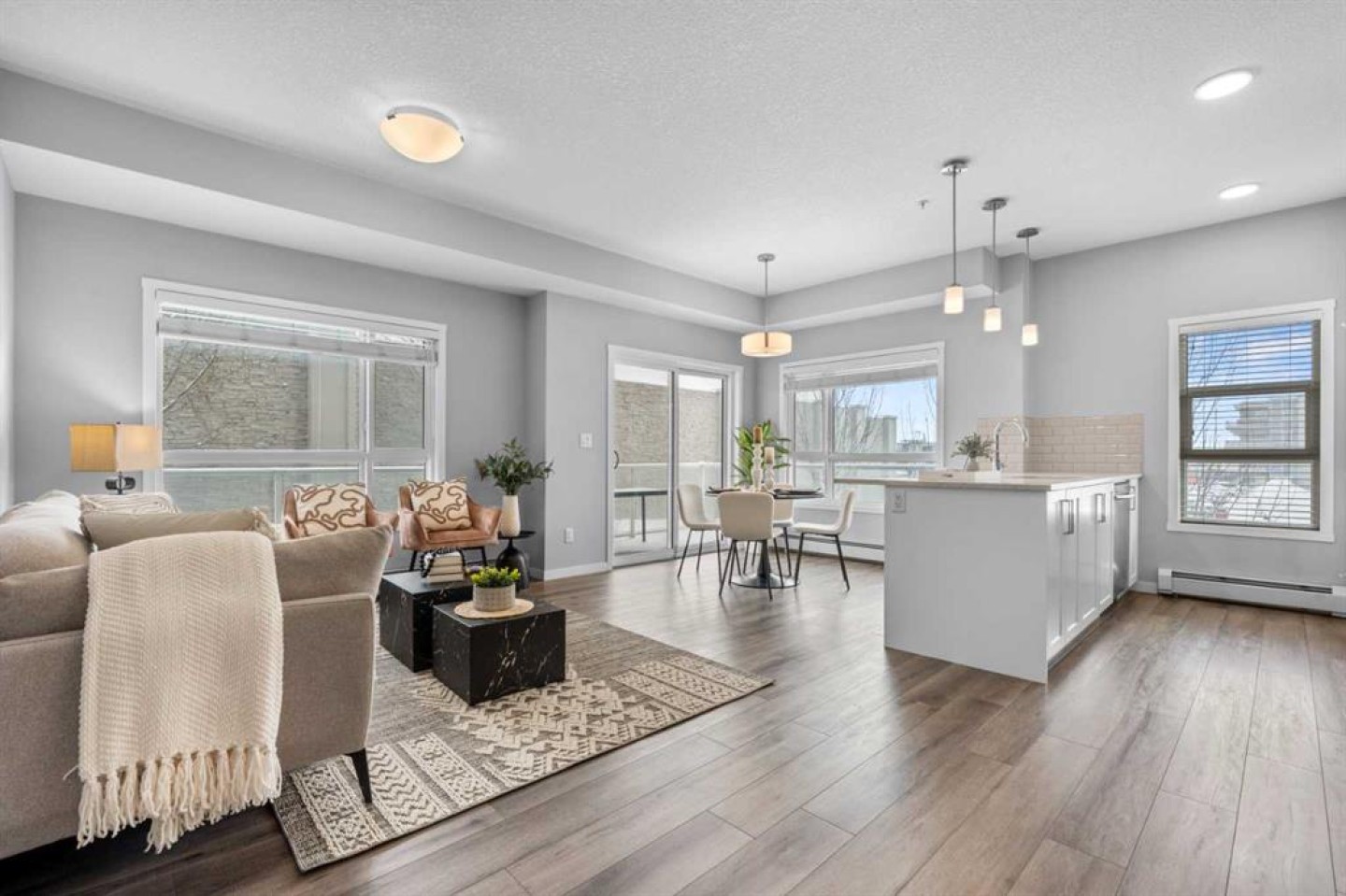 Welcome to Harvest Hills — one of NE Calgary’s most established and lifestyle-driven communities, where everyday convenience meets outdoor living. Surrounded by the beauty of Harvest Hills Lake, the Golf Centre, scenic parks, and the community garden, this location offers the perfect balance of recreation and practicality. Just minutes away you’ll find Landmark Cinemas, Canadian Tire, The Home Depot, Sobeys, and a wide selection of shopping and dining options. Within walking distance to the east are Starbucks, Kinjo Sushi, and neighborhood retail conveniences. Families will also appreciate access to reputable schools including Ascension of Our Lord School, Northern Lights School, and Notre Dame High School. This spacious 2-bedroom, 2-bathroom condo is designed for modern comfort and effortless living. The primary bedroom easily accommodates a king-sized bed with room for side tables and seating , creating a true retreat. The ensuite features a double vanity, generous storage, and a walk-in closet. The kitchen is finished with upgraded quartz countertops, sleek cabinetry, and high-end details that elevate the space. The open-concept layout is bright, functional, and ideal for both daily living and entertaining. The standout feature is the expansive wrap-around balcony — a rare offering that provides exceptional outdoor space, abundant sunlight, and endless possibilities for relaxing evenings or hosting guests. If you’re looking for space, location, and lifestyle in one complete package, this is an opportunity you won’t want to miss.