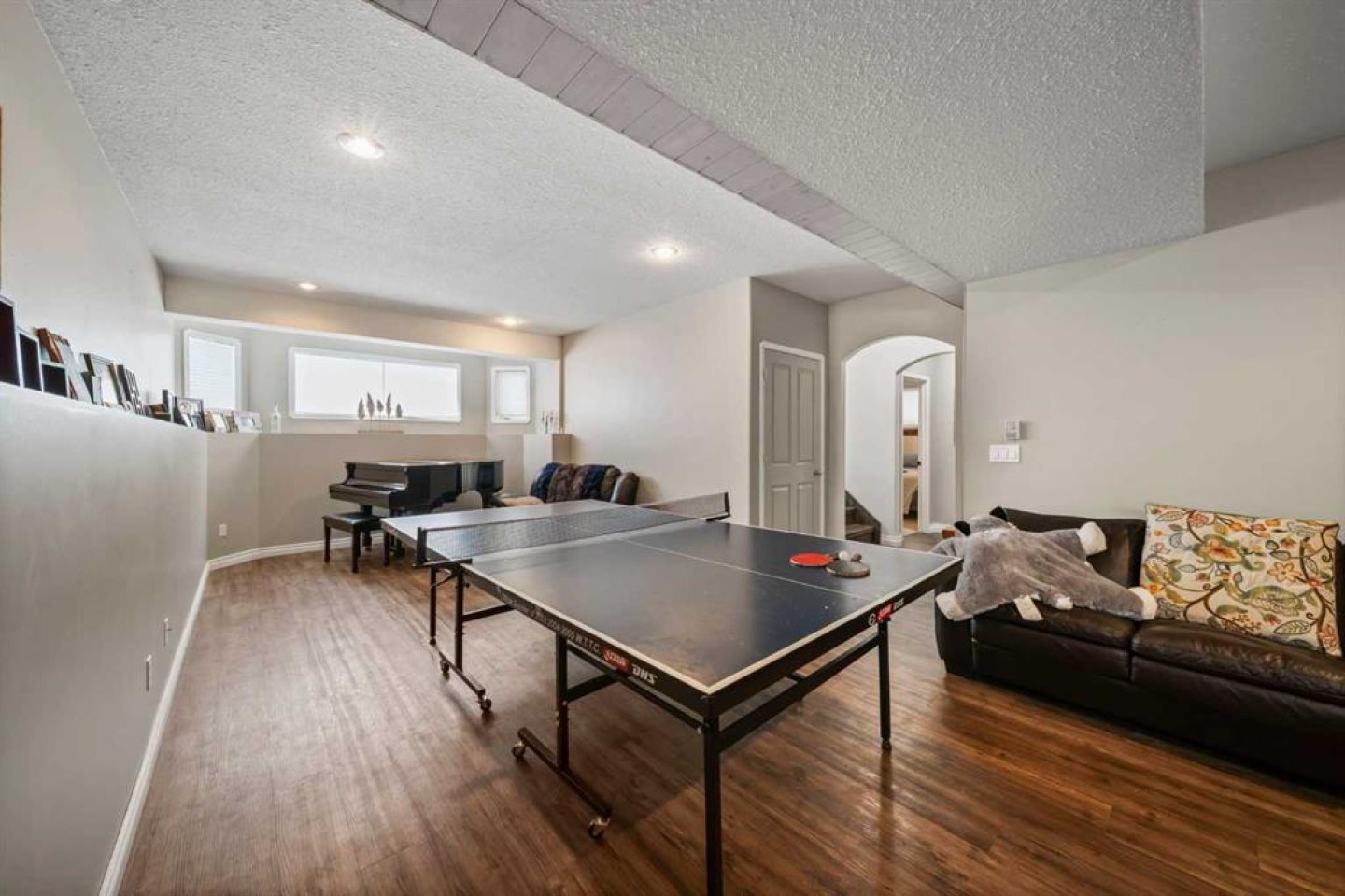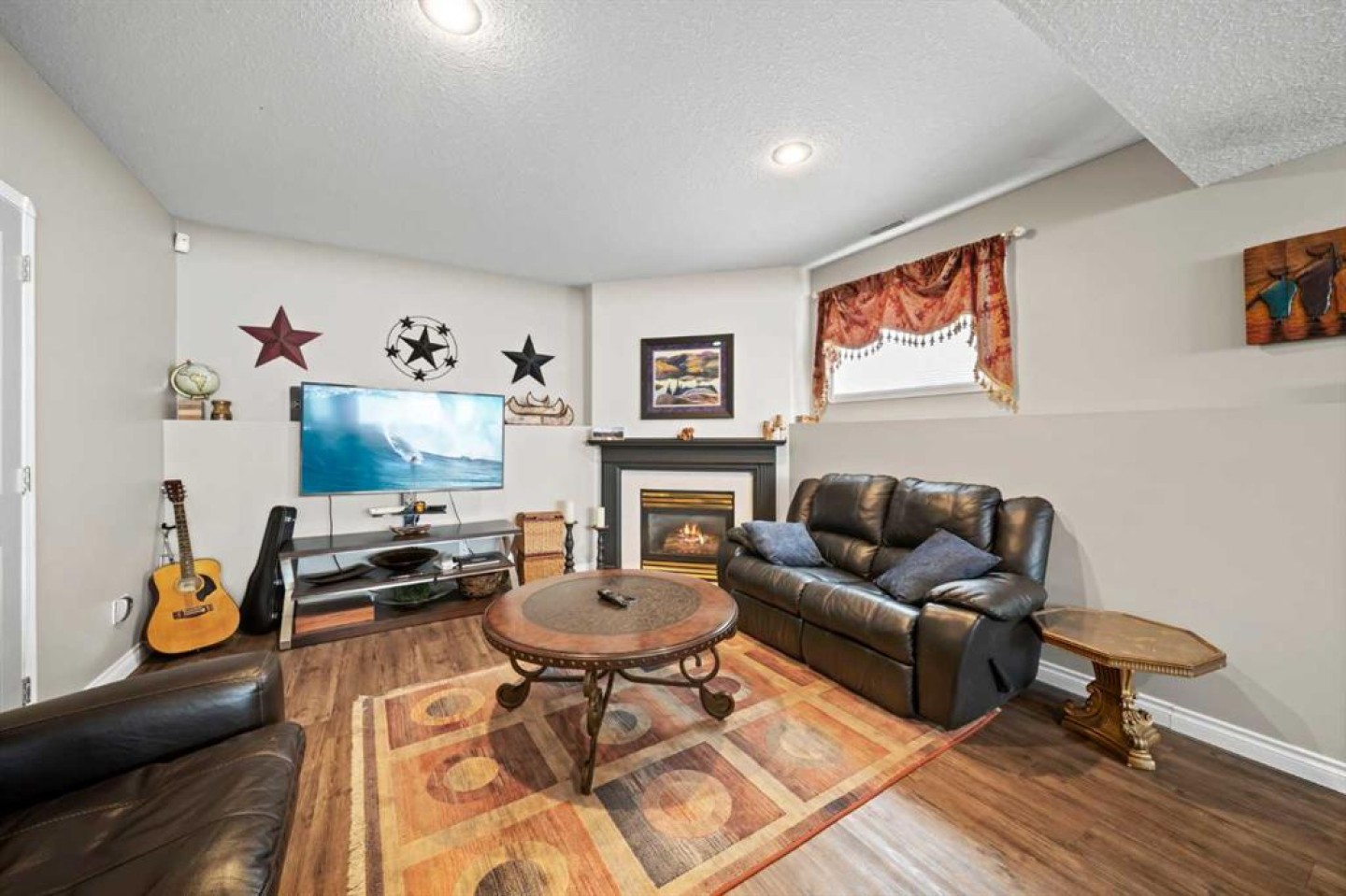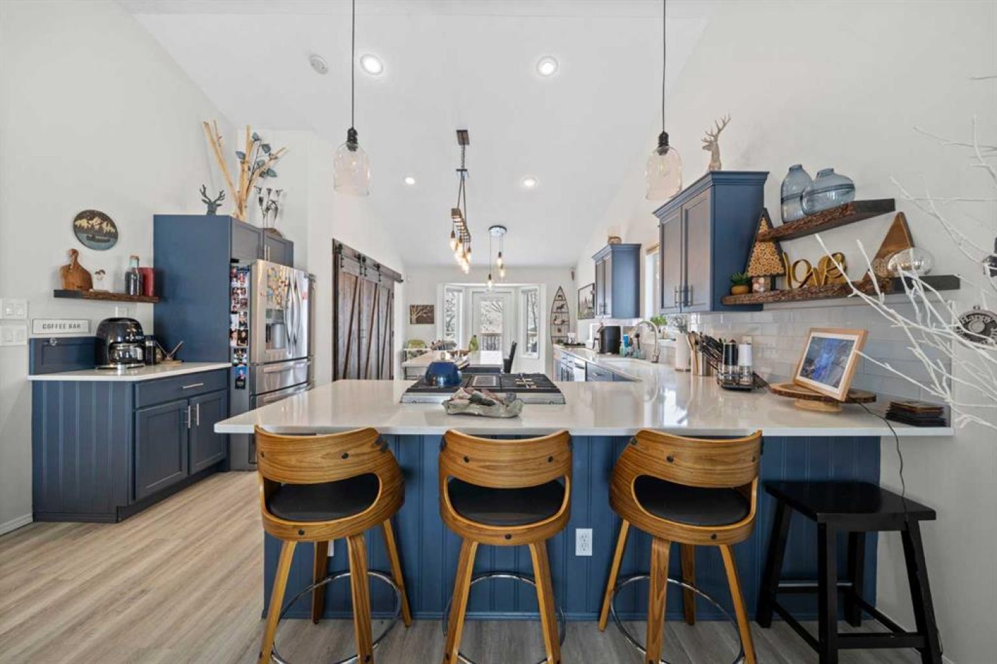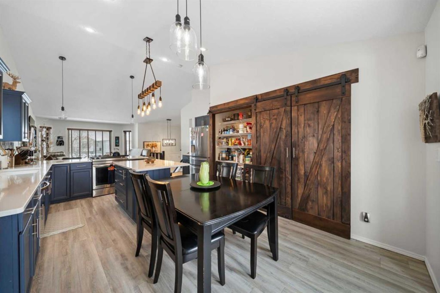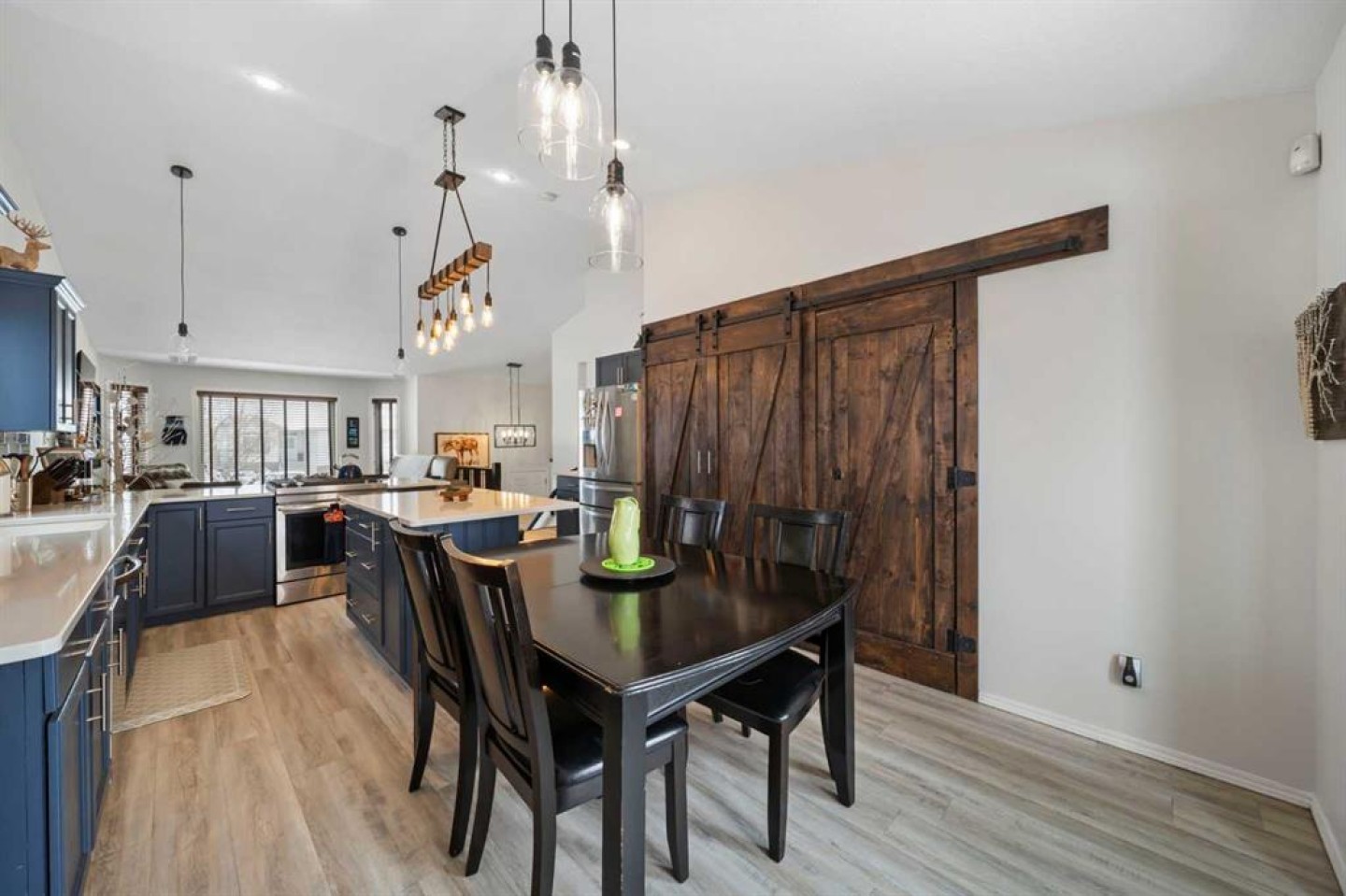 Tucked away in sought after Ander's on the Lake, this spotless 5 bedroom bi level is the total package. Step inside to soaring vaulted ceilings and a bright, open layout that makes everyday living and entertaining effortless. The kitchen and main living area shine with updated hardwood and tile, creating a warm yet modern feel throughout. Off the dining area, garden doors open to a stunning three tier deck overlooking a beautifully landscaped, fully fenced yard with a lower patio and fire pit for unforgettable summer nights. The inviting living room features a cozy gas fireplace, while the primary suite offers a walk in closet and private 3 piece ensuite. Downstairs, you will love the impressive 9 foot ceilings, spacious family room with another gas fireplace, dedicated games area, two additional bedrooms, and a full bath. Space, comfort, and a prime location all come together in one incredible home.