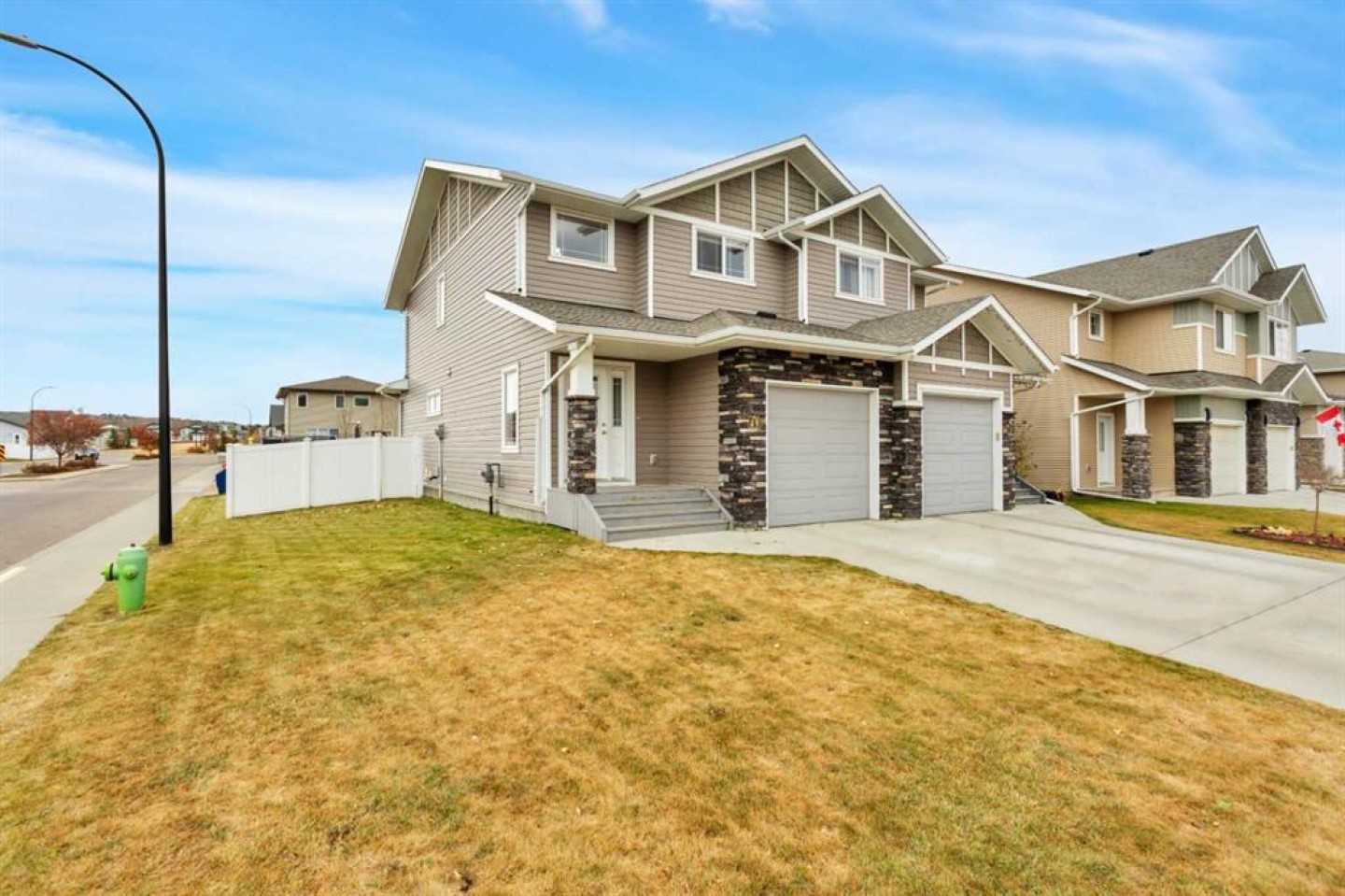 Welcome to this beautifully maintained 1,396 sq. ft. two-storey duplex ideally situated on a corner lot in one of Red Deer’s most sought-after communities — Timberstone. Built within the last 10 years, this home combines modern design, functional layout, and a great location close to parks, trails, and shopping. The main floor offers an open concept layout featuring a bright living area, a spacious dining space, and a well-appointed kitchen with plenty of cabinets, a walk-in pantry and counter space. A convenient 2-piece bathroom completes the main level. Upstairs, you’ll find two spacious primary bedrooms, each complete with its own ensuite & walk-in closet, providing comfort and privacy for every member of the household. The upstairs laundry adds everyday convenience. The fully finished basement extends the living space with a third bedroom, a full bathroom, and a cozy family or recreation area — perfect for guests or extra living flexibility. Outside, the corner lot offers great curb appeal, extra yard space, and additional parking options. Whether you’re a first-time buyer, investor, or simply looking for a modern, low-maintenance home in a desirable area, this Timberstone duplex is an excellent choice.