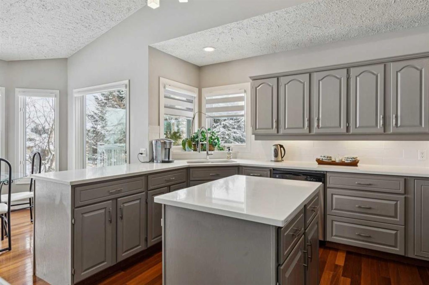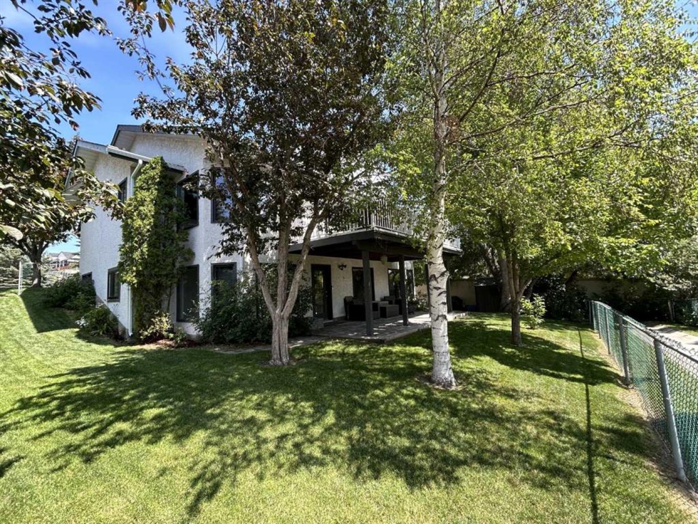 Welcome to the prestigious estate enclave of Scenic Acres, where unobstructed south-facing views stretch across COP, mature treetops, and endless sky what the owners fondly call their “cruise ship view.” From vibrant sunrises to breathtaking sunsets, the colors are extraordinary. Enjoy watching the deer in the neighbor's yard  from the bedroom window. Great for bird watching as birds gather in the trees, and a quiet tree-lined pathway behind the home adds to the peaceful, nature-inspired setting all while being tucked into a desirable cul-de-sac. Offering nearly 4,000 sq ft of beautifully developed living space and Brazilian hardwood, this fully updated walkout bungalow blends warmth and openness. Vaulted ceilings and new triple-pane skylights flood the main level with natural light, enhancing the bright, open design. Expansive windows showcase the majestic south view from nearly every room. The living room is anchored by an elegant gas fireplace, creating the perfect space to unwind on cold evenings. The spacious, well-lit kitchen is designed for gathering and everyday convenience, featuring quartz countertops, premium appliances, generous pantry storage, and seamless flow into the dining and living areas. Whether hosting dinner parties or enjoying quiet mornings, this space delivers. The master bedroom offers a peaceful and private retreat with a luxurious ensuite and two large closets. There is a flex room on the main floor that could function as a bedroom but currently is utilized as a pantry featuring shelving and seasonal storage. The fully developed walkout lower level is just as bright and inviting, offering additional bedrooms, a large recreation and games are perfect for playing pool, ping pong and Wii games. One of the bedrooms is presently functioning as a quiet office providing an ideal environment for working from home and holding zoom meetings. You will appreciate the well-organized laundry room with cabinetry and folding space. An added bonus is the great storage areas in the basement . The rebuilt deck overlooks the private south yard perfect for 3 season barbecues and soaking in the view. The long driveway comfortably accommodates multiple vehicles, complemented by recent concrete improvements and a double garage with an insulated door and epoxy flooring.  Extensive mechanical and structural upgrades have been completed in recent years, including major systems, roofing, skylights, water line, and more - providing exceptional peace of mind for the next owner. This is a rare combination of panoramic views, mature surroundings and walkout design, all in one of NW Calgary’s most sought-after estate communities. Please refer to the detailed upgrades feature sheet for a full list of improvements totaling over $100k.