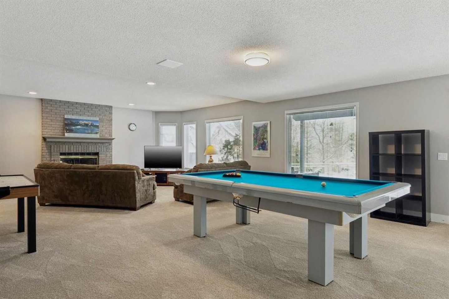 Tools like the leaf rake, shovel-spade, ice chipper, garden wheel barrow, nuts & bolts & screws in boxes. Seller will provide instructions on the door bell camera. Garburator in "as is" condition, blind in bedroom at bottom of stairs "as is". Lower fireplace never used "as is". Shed, snowblower & 100’ extension cord, 50ft extension ladder, patio block & rubber edging for east/back pathway, 2nd fridge, firewood, shelves in furnace room & garage, pool table, games cabinet, forest art at top of stairs included.