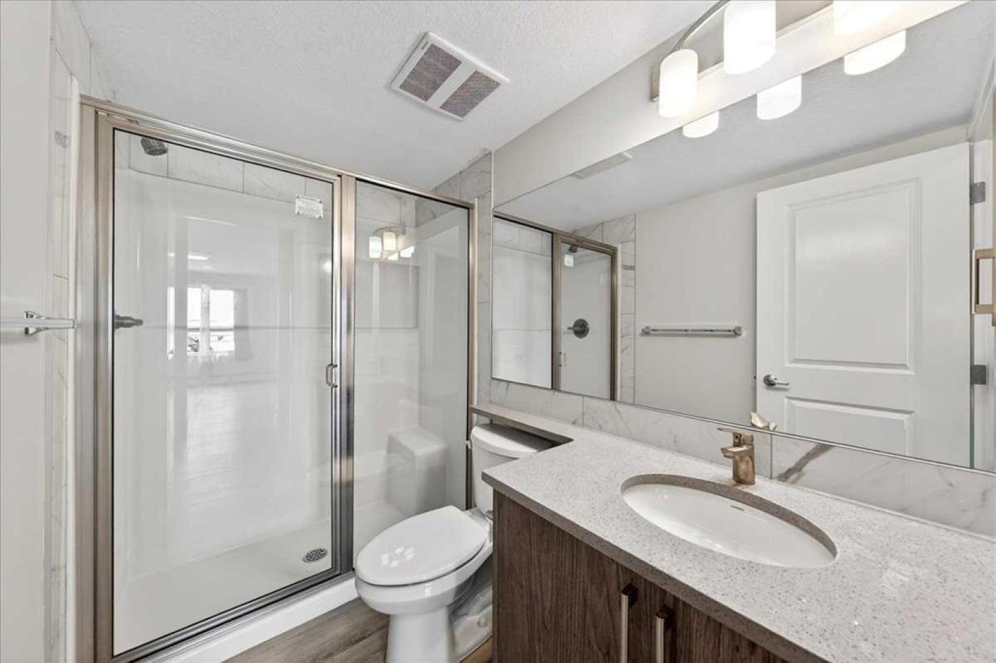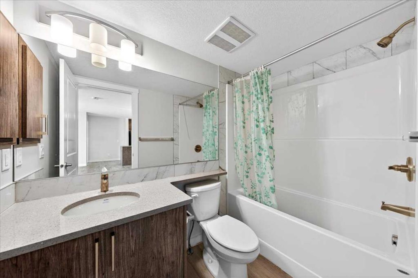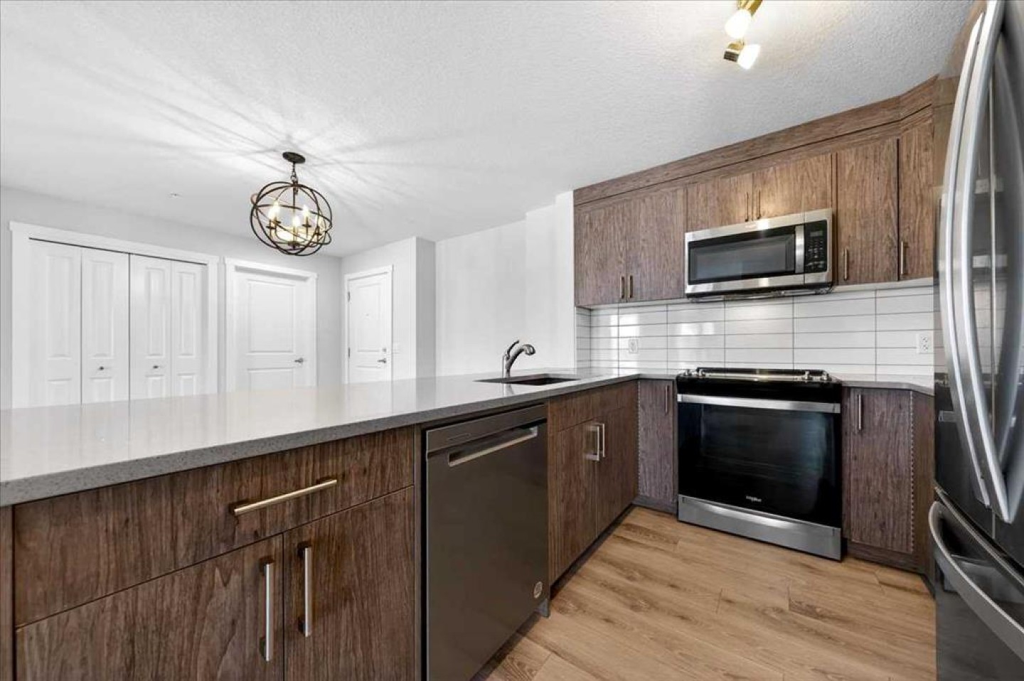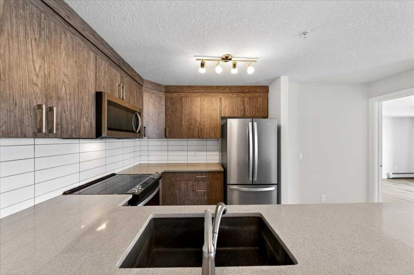 This beautifully designed 2-bedroom, 2-bathroom condo offers the perfect balance of modern style and everyday comfort. The bright open-concept layout is filled with natural light from large windows, creating a warm and inviting atmosphere throughout the spacious living and dining areas—ideal for relaxing or entertaining. The contemporary kitchen features premium appliances, sleek cabinetry, and ample counter space for effortless meal preparation. Step outside to the sunny south-facing balcony and enjoy open views, whether sipping your morning coffee or unwinding in the evening. The primary bedroom includes a private ensuite for added comfort, while the second bedroom provides flexibility for guests, a home office, or additional living space. Enjoy everyday convenience in a prime location close to Saddletowne C-Train Station, major bank branches, restaurants, the Genesis Centre, and the Calgary Public Library. Don’t miss this opportunity—it won’t last long.