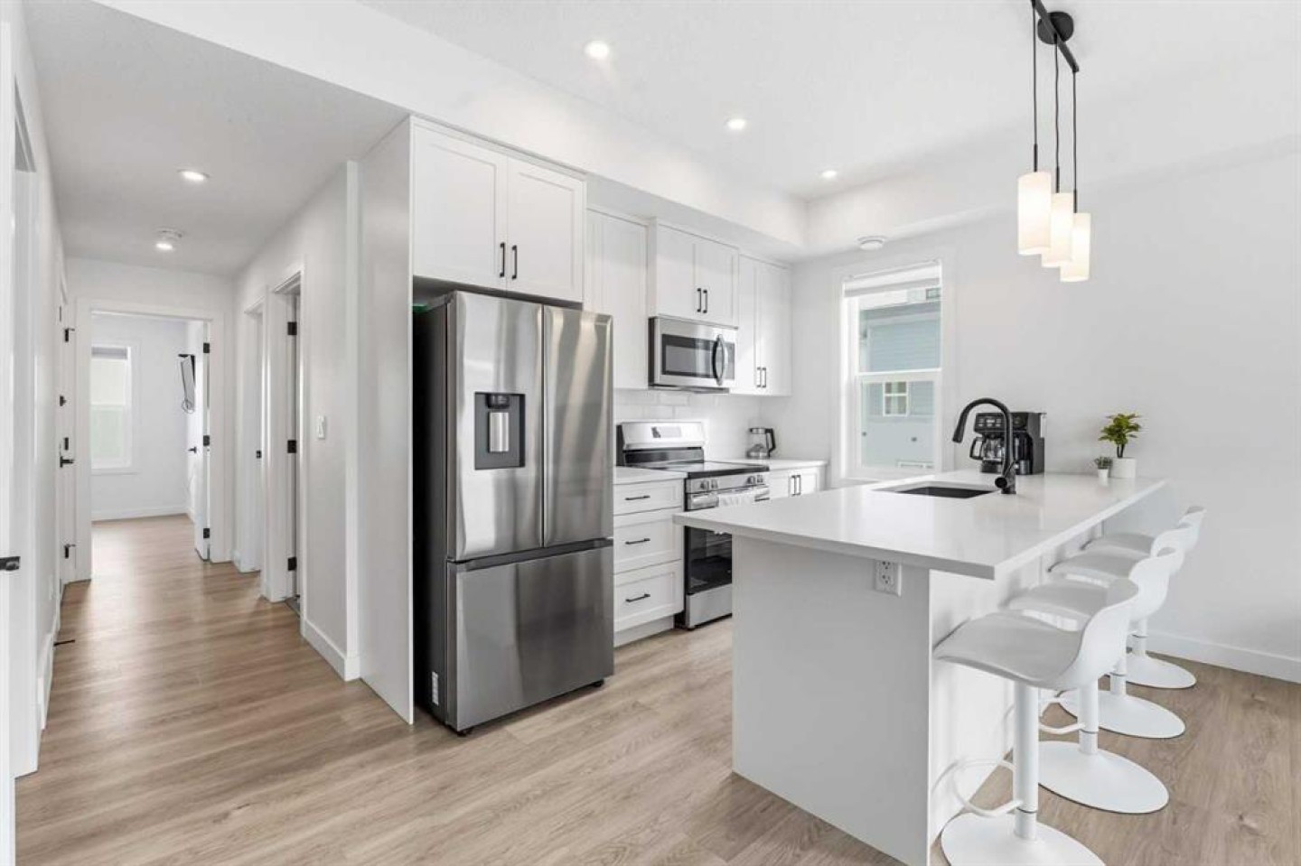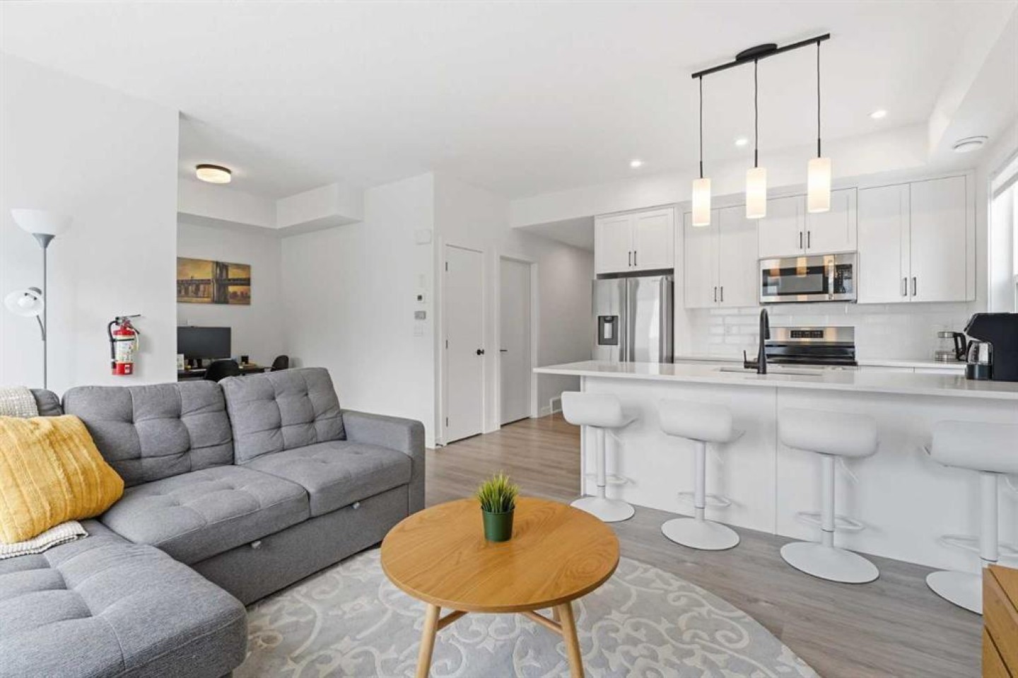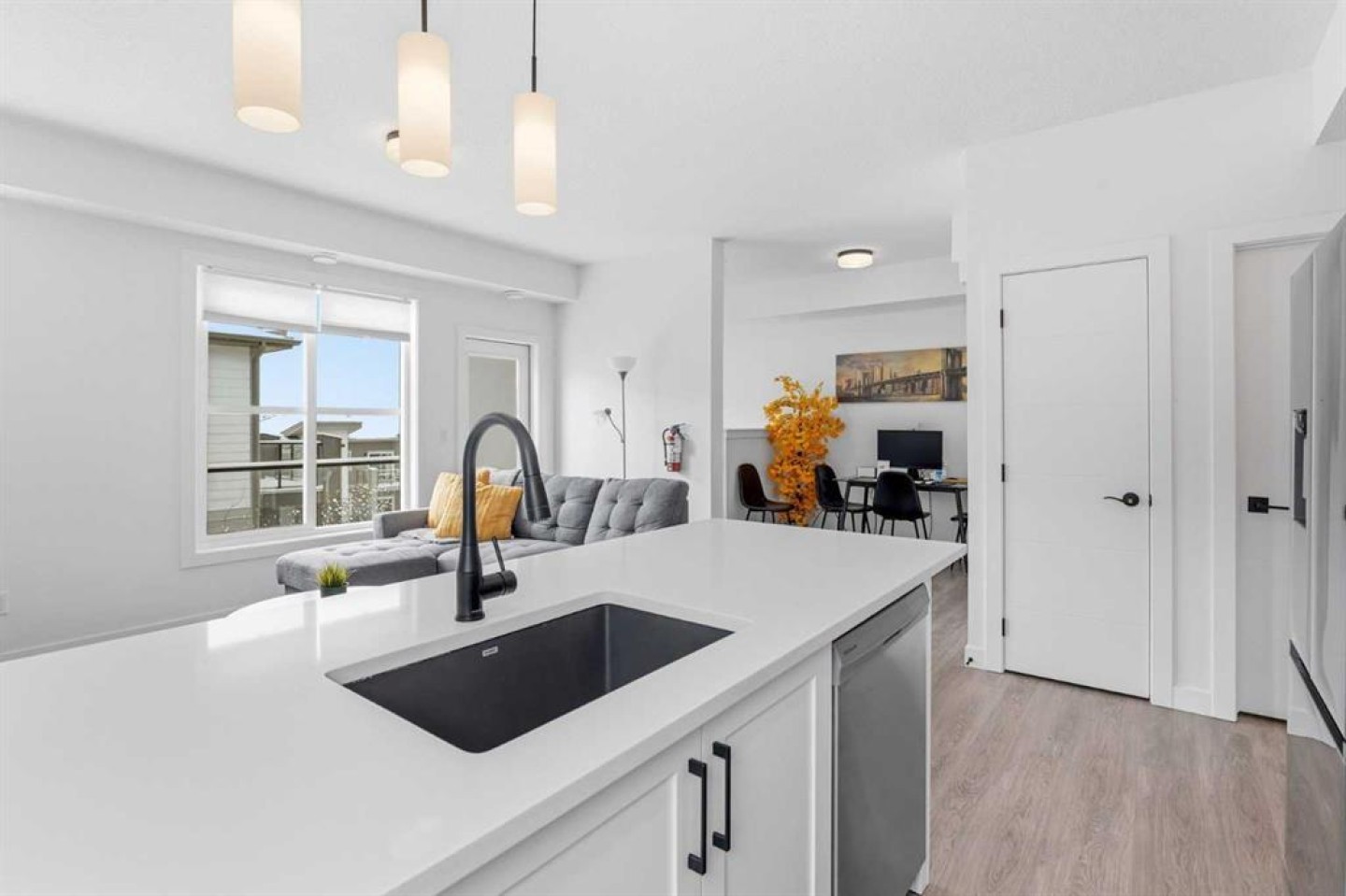 Welcome to this beautifully maintained townhome in the sought-after community of Springbank Hill — offering over 1,300 sq ft of bright, functional living space, low condo fees, and exceptional value for first-time buyers, investors, or those looking to take over a successful Airbnb opportunity. This stylish 2-bedroom, 2-bathroom home features a thoughtfully designed open-concept main floor filled with natural light. The contemporary kitchen is finished to impress with a large central island, sleek cabinetry, and a generous pantry — perfect for everyday living and entertaining. The spacious living room offers plenty of room to relax and unwind, with direct access to a private balcony, ideal for morning coffee or evening BBQs. Both bedrooms are generously sized and can comfortably accommodate king-sized beds — a rare and valuable feature. The layout provides excellent separation of space, making it ideal for roommates, guests, or a home office setup. On the entry level, you’re welcomed by a versatile flex space — perfect for a home workspace, gym area, or additional sitting room — along with extra storage. The attached single garage offers secure parking plus additional storage potential, with room to customize further. The exterior of the building is beautifully maintained by the management company, keeping upkeep simple and stress-free. Constructed with durable Hardie board, stone, and stucco, the complex offers added peace of mind — especially valuable in Calgary’s hail-prone climate. Currently operating as a well-booked Airbnb, this property presents a fantastic turnkey investment opportunity. Continue generating income or make it your own — the flexibility is yours. Location is everything, and this home delivers. You’re just minutes from Aspen Landing Shopping Centre, Westhills Towne Centre, and Signal Hill Centre for groceries, dining, and everyday conveniences. Enjoy quick access to excellent public and private schools, including Webber Academy and Rundle College. Commuting is effortless with nearby transit options, the 69th Street LRT station, and easy access to downtown Calgary and major roadways including Stoney Trail. Surrounded by parks, pathways, and green space, Springbank Hill offers a perfect blend of convenience and natural beauty — making it one of Calgary’s most desirable west-side communities. Whether you’re a first-time buyer looking for modern comfort, a downsizer wanting low-maintenance living, or an investor seeking a proven income property, this townhome checks all the boxes. Exceptional home and Value!