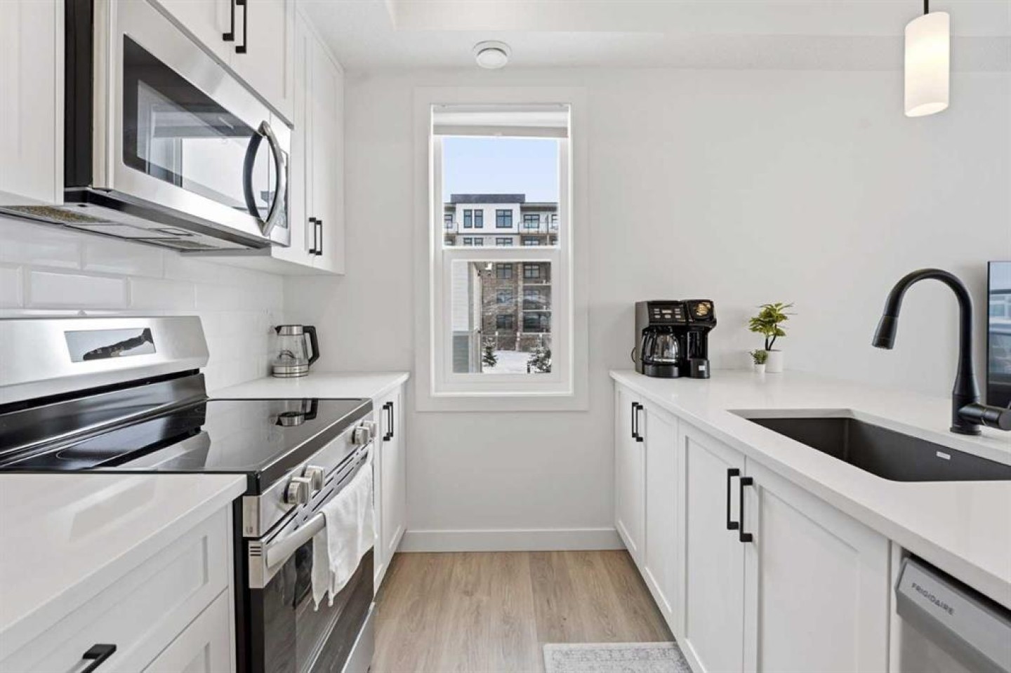Dishwasher, Dryer, Electric Stove, Microwave Hood Fan, Refrigerator, Washer, Window Coverings