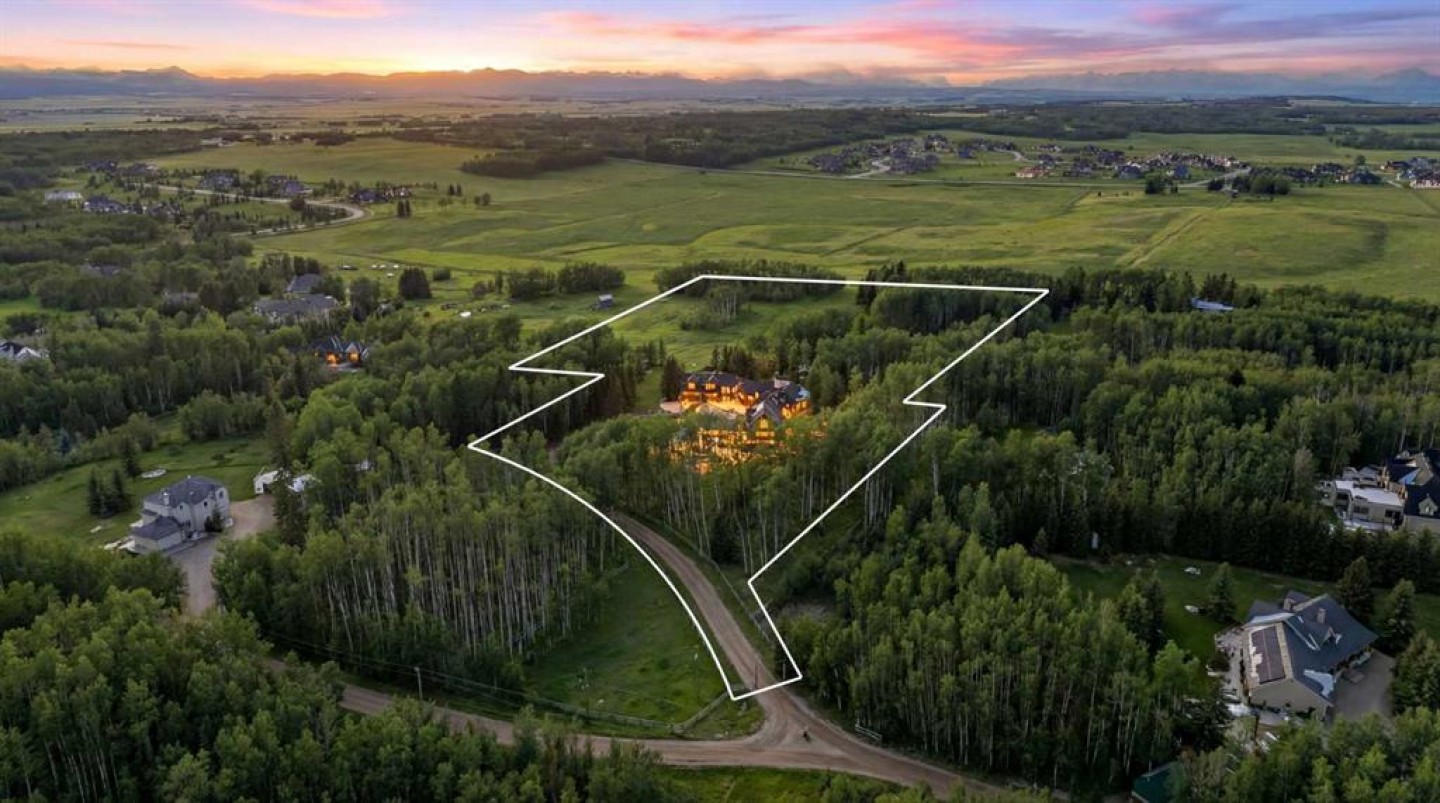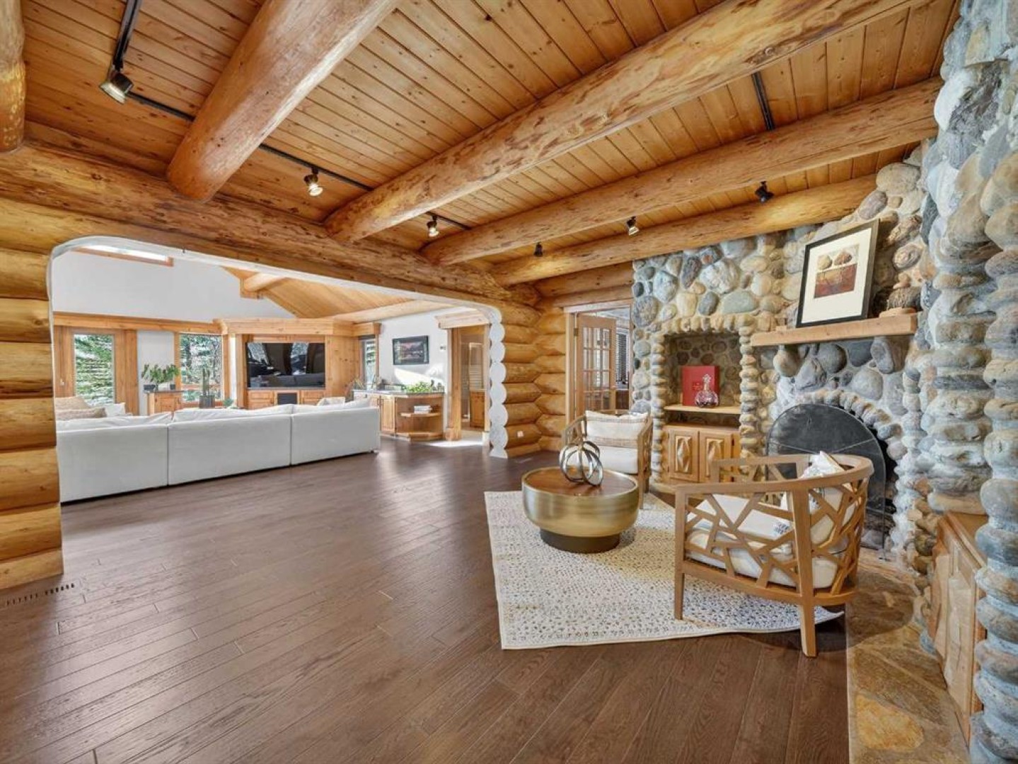 A rare 12.5 acre estate in the heart of Bearspaw. Previously offered on 4.29 acres, this property has been fundamentally transformed through the strategic assembly of an expansive western parcel, now encompassing approximately 12.5 acres of private land in one of Rocky View County’s most prestigious enclaves. For the established family or equestrian buyer seeking meaningful scale, long-term value, and exceptional privacy, this is an entirely elevated opportunity. The 6,000+ sq ft log and stone residence remains a striking blend of mountain architecture and refined modern design. Vaulted ceilings, exposed beams, and expansive windows frame panoramic views, while multiple gathering spaces create seamless flow for both everyday living and large-scale entertaining. The chef’s kitchen, complete with natural-edged island, granite surfaces, farmhouse sink, and premium appliances, anchors the main level. A dramatic great room with heated stamped concrete floors and a commanding stone fireplace offers a sophisticated yet welcoming focal point. Formal and informal dining areas, a private office, and thoughtfully designed secondary spaces provide versatility for a growing family or multi-generational living. Upstairs, the primary retreat features a spa-inspired ensuite with steam shower and air-jet tub, along with two additional bedrooms and curated architectural details that add warmth and character. The fully developed lower level includes a games room, media room with fireplace, wine cellar, and additional bedroom, creating a complete lifestyle environment within the home. What truly distinguishes this offering is the land. Over twelve acres dramatically expands the privacy, usability, and long-term potential of the property. The additional parcel opens the door to future equestrian enhancements, expanded recreation, additional outbuildings, or simple enjoyment of uninterrupted space and mountain views. This is a rare chance to secure acreage of this scale in Bearspaw without sacrificing proximity to Calgary. A heated six-car garage with radiant flooring, workshop capability, and integrated Control4 automation further elevates the estate’s functionality and appeal.