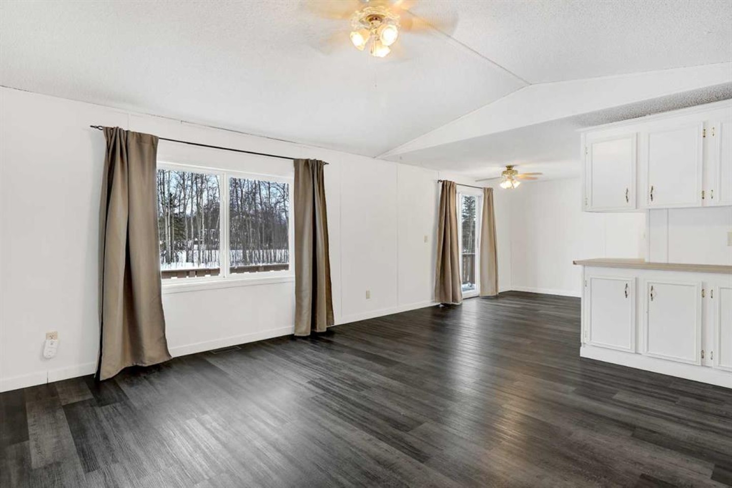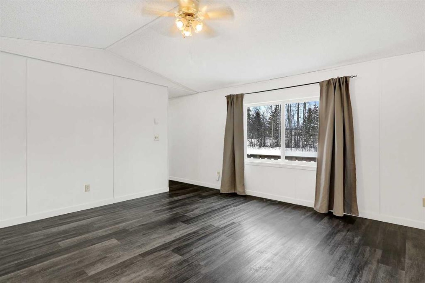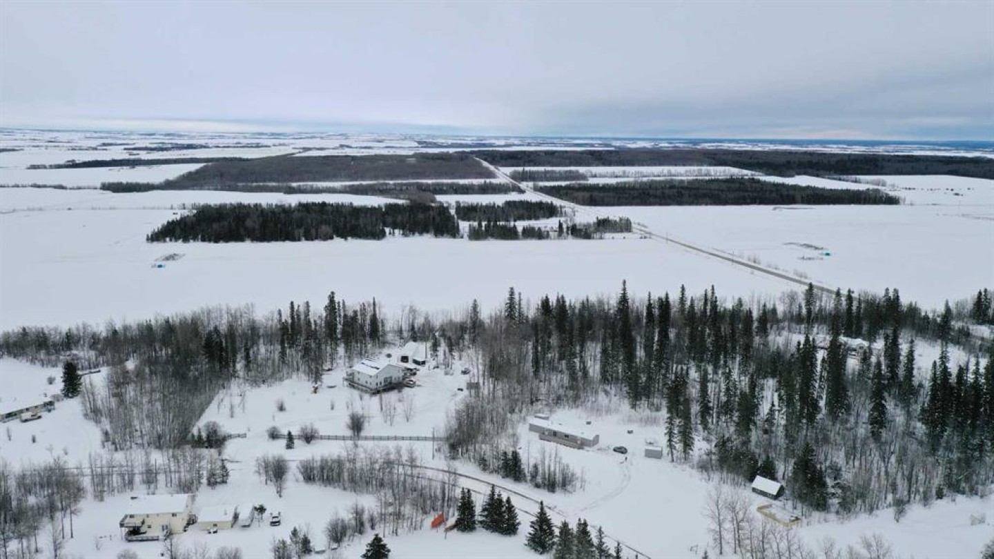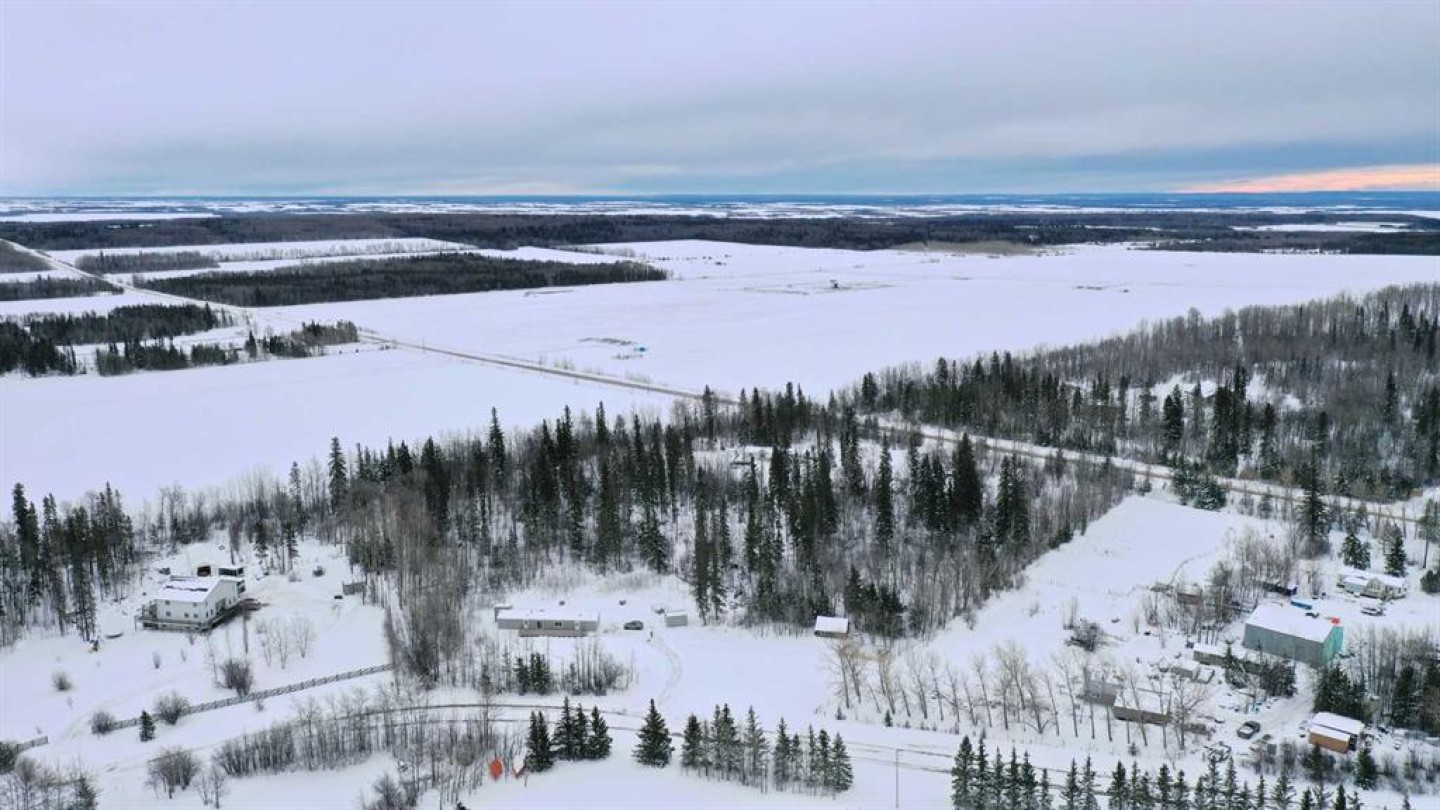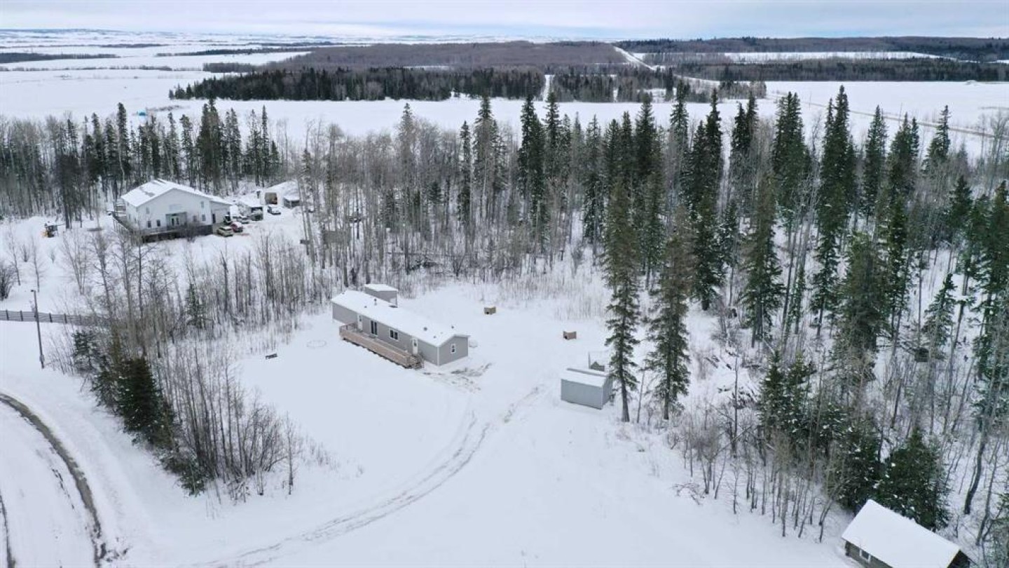 Escape to the peace and privacy of Mountain Side Estates, just 20 minutes west of Grande Prairie. Situated on 5.44 beautifully treed acres, this well-maintained manufactured home offers the perfect blend of country living and modern updates. Featuring 3 bedrooms and 2 full bathrooms, including a private ensuite, this home is thoughtfully laid out for comfortable everyday living. The interior showcases a no-carpet design with newer flooring, fresh paint, updated baseboards, siding, and skirting — creating a clean, move-in-ready feel throughout. The kitchen is equipped with a desirable gas range, ideal for those who love to cook and entertain. Step outside to the massive front deck, built in 2020 — a standout feature perfect for hosting gatherings, summer BBQs, morning coffee, or simply enjoying the surrounding nature and quiet setting. Major infrastructure updates provide peace of mind. The property features a drilled well (2020) that feeds an above-ground 9-cubic-meter cistern housed in an enclosed pump house. A 4-stage septic system (installed in 2020) adds long-term reliability. The home sits on screw pile foundation and includes heat-traced plumbing — an important upgrade for Alberta winters. The dryer was replaced approximately two years ago. The mostly treed lot offers excellent privacy while still providing usable space for recreation, gardening, or future development. A well-built shed with sliding door adds convenient storage for tools, toys, or equipment. If you’ve been looking for an affordable acreage with key mechanical upgrades already completed — all within easy driving distance to Grande Prairie — this property checks the boxes. Lots of room to build a future garage or shop and there is some good flexibility with CR-4 zoning for animals!