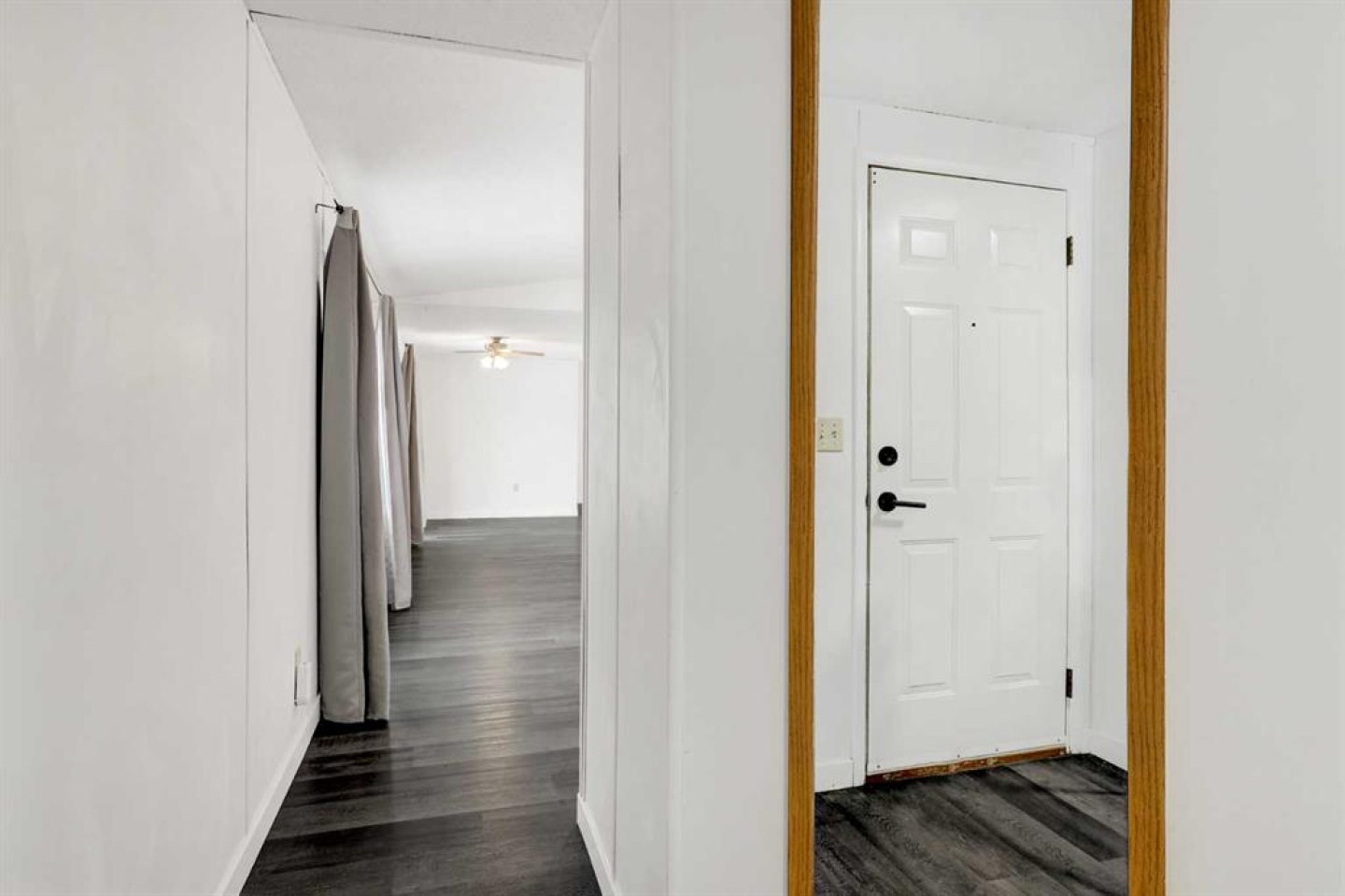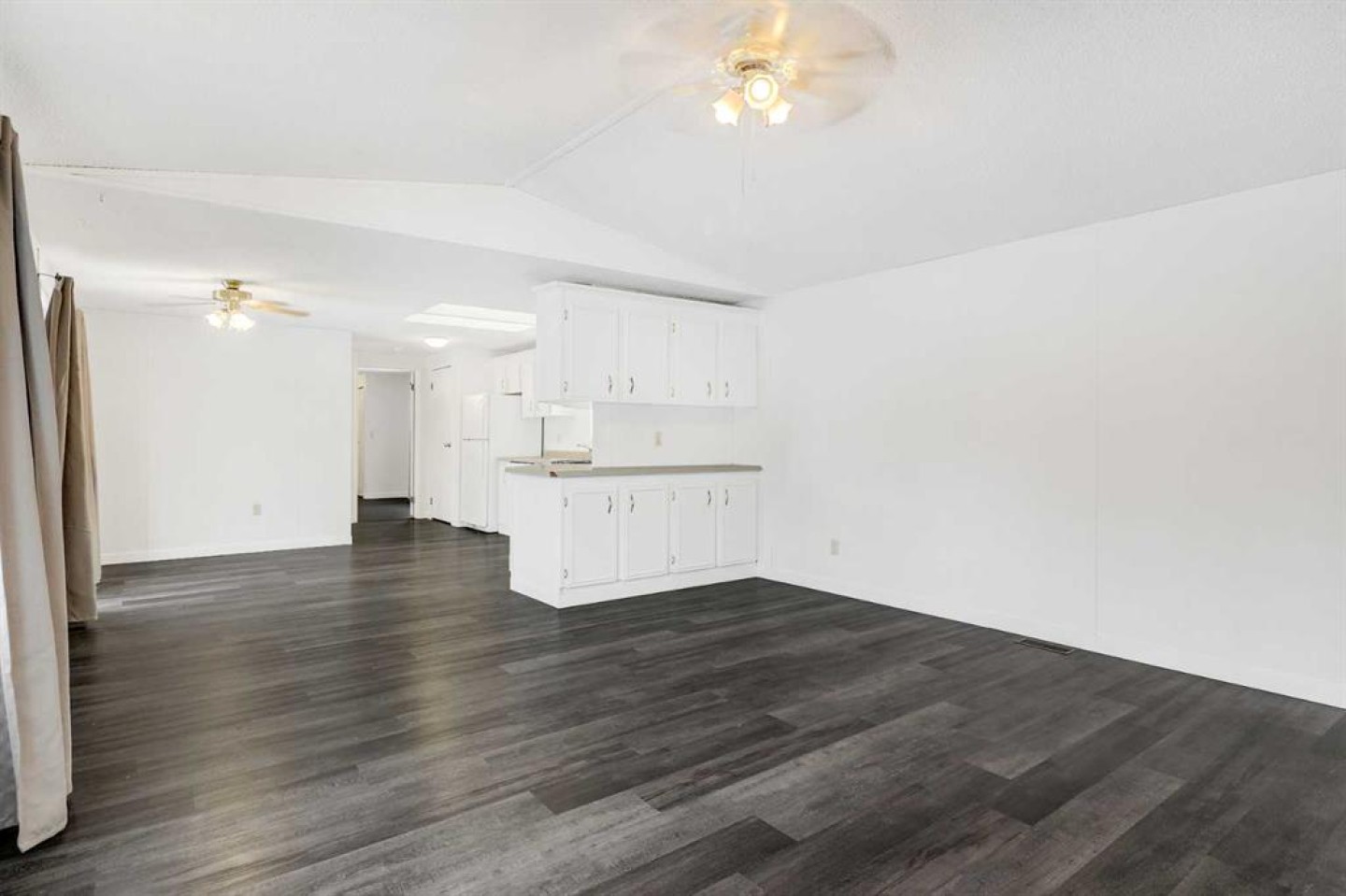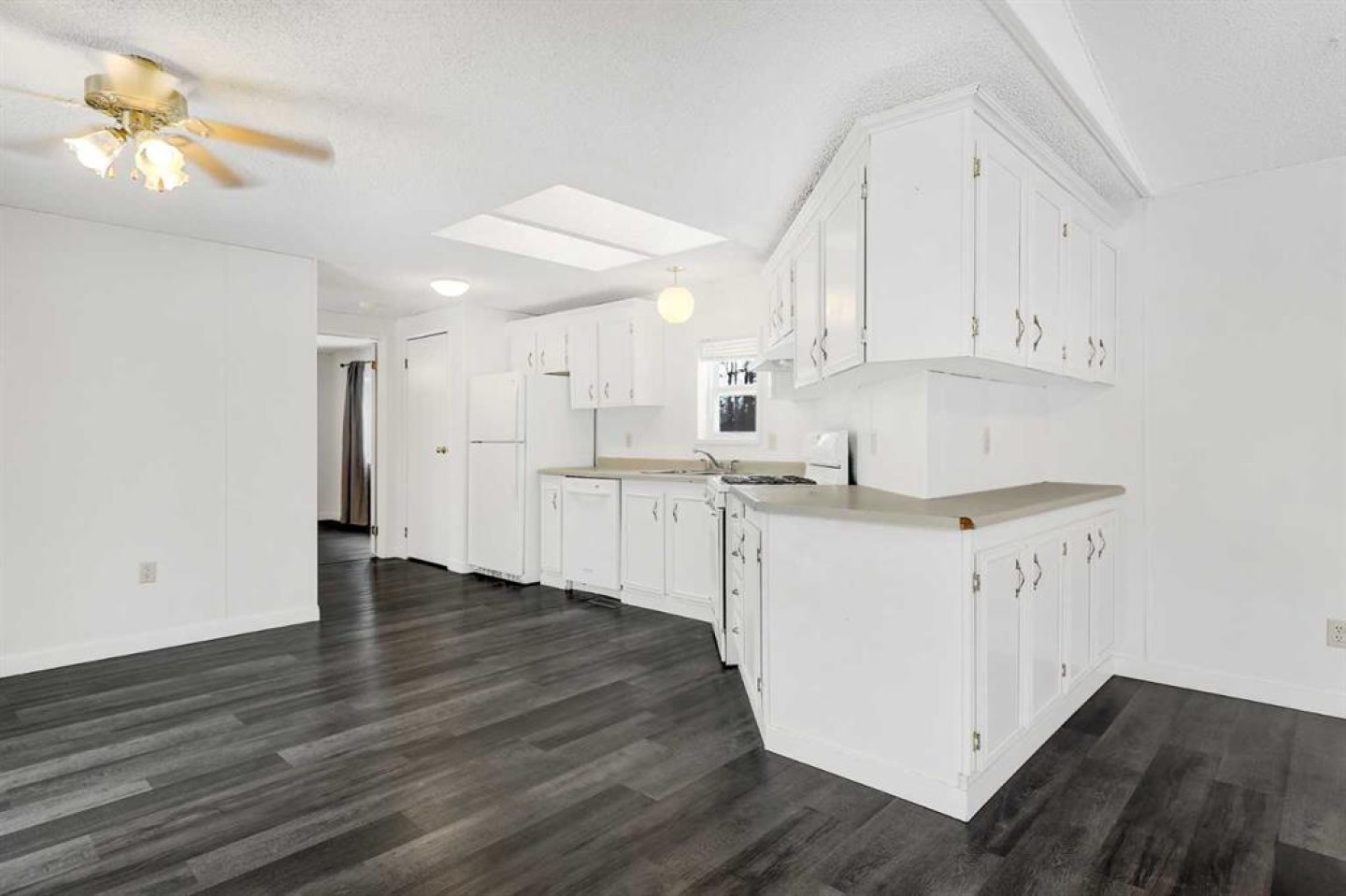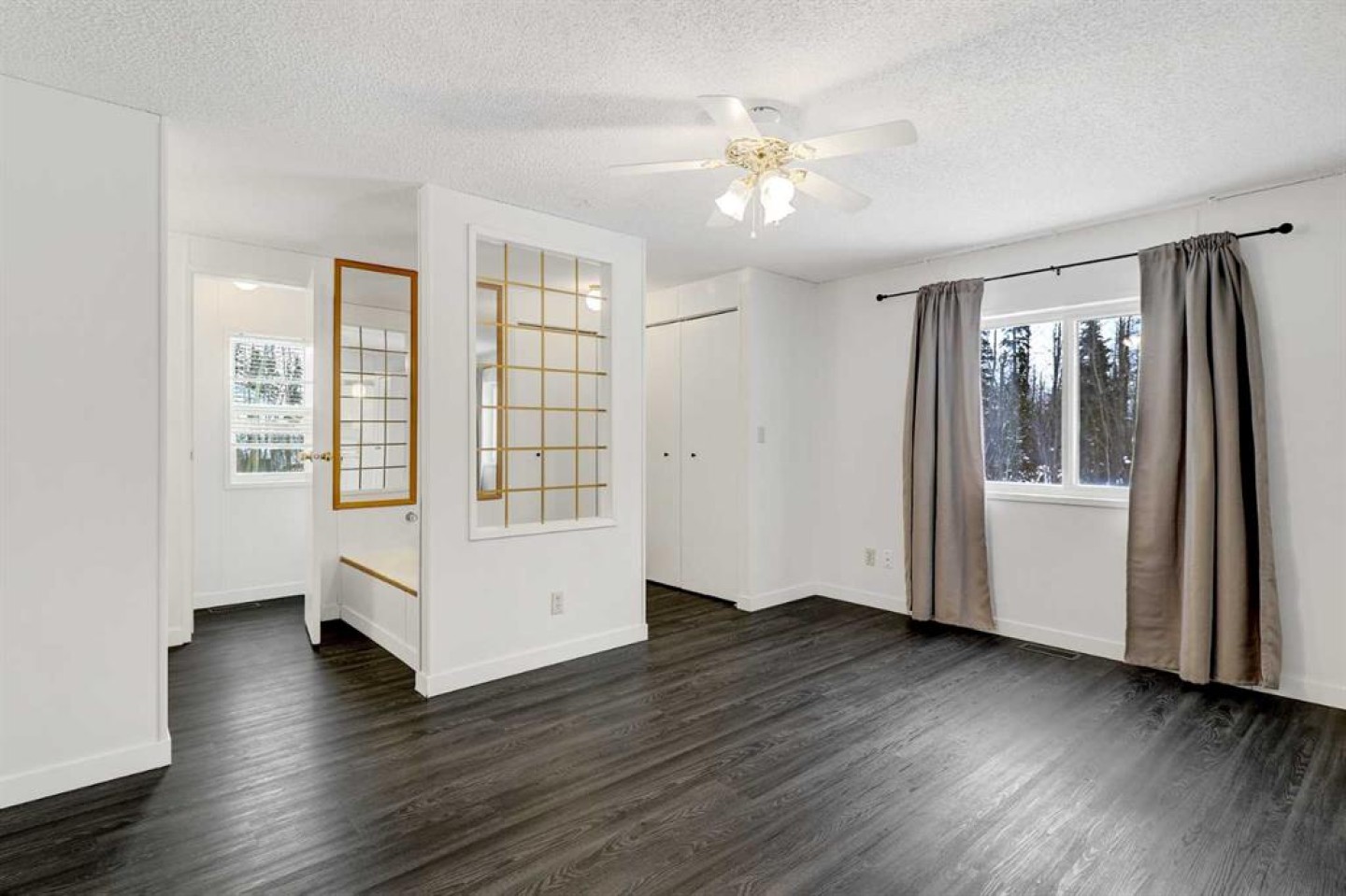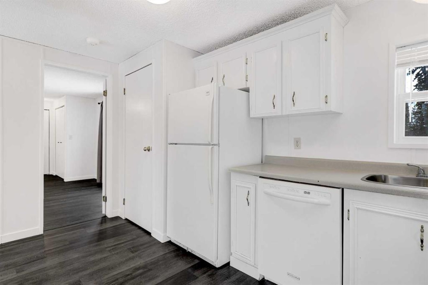 Escape to the peace and privacy of Mountain Side Estates, just 20 minutes west of Grande Prairie. Situated on 5.44 beautifully treed acres, this well-maintained manufactured home offers the perfect blend of country living and modern updates. Featuring 3 bedrooms and 2 full bathrooms, including a private ensuite, this home is thoughtfully laid out for comfortable everyday living. The interior showcases a no-carpet design with newer flooring, fresh paint, updated baseboards, siding, and skirting — creating a clean, move-in-ready feel throughout. The kitchen is equipped with a desirable gas range, ideal for those who love to cook and entertain. Step outside to the massive front deck, built in 2020 — a standout feature perfect for hosting gatherings, summer BBQs, morning coffee, or simply enjoying the surrounding nature and quiet setting. Major infrastructure updates provide peace of mind. The property features a drilled well (2020) that feeds an above-ground 9-cubic-meter cistern housed in an enclosed pump house. A 4-stage septic system (installed in 2020) adds long-term reliability. The home sits on screw pile foundation and includes heat-traced plumbing — an important upgrade for Alberta winters. The dryer was replaced approximately two years ago. The mostly treed lot offers excellent privacy while still providing usable space for recreation, gardening, or future development. A well-built shed with sliding door adds convenient storage for tools, toys, or equipment. If you’ve been looking for an affordable acreage with key mechanical upgrades already completed — all within easy driving distance to Grande Prairie — this property checks the boxes. Lots of room to build a future garage or shop and there is some good flexibility with CR-4 zoning for animals!