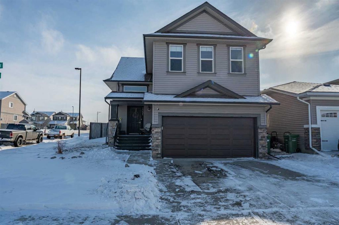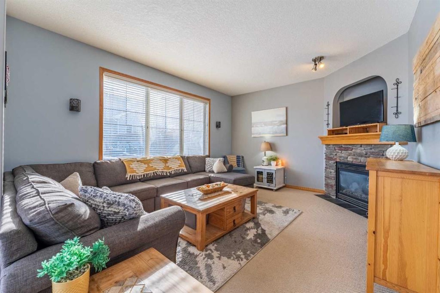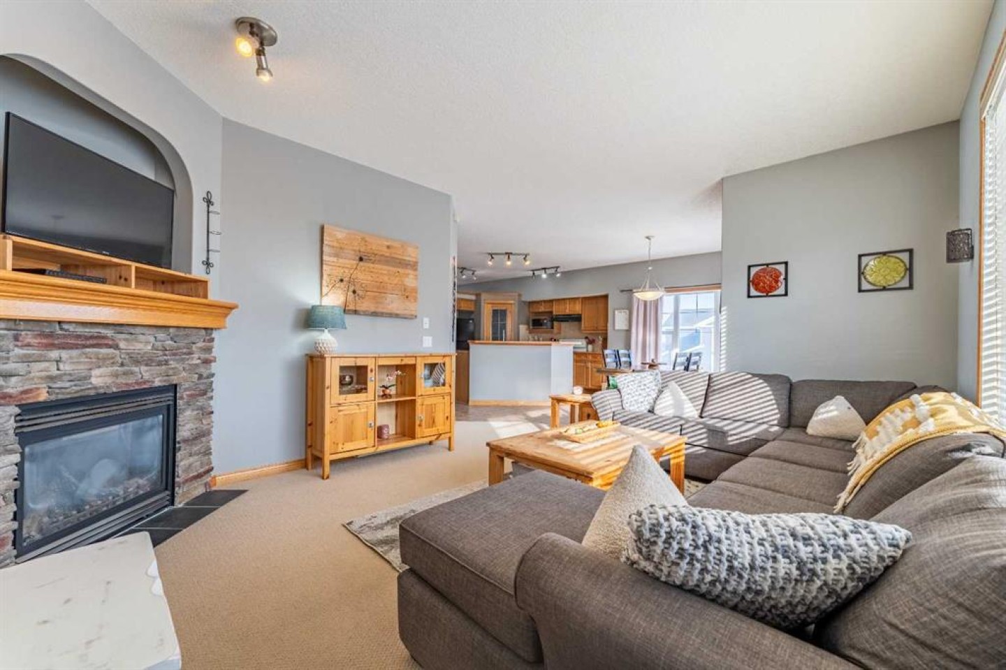 Welcome to this beautiful custom bi-level home located on a desirable corner lot in the family-friendly community of Sagewood in Airdrie. With a sunny south-facing backyard complete with a charming pergola, this home offers the perfect setting for relaxing or entertaining outdoors. The spacious front entrance greets you with soaring ceilings, creating a bright and inviting first impression. The thoughtfully designed main floor features three bedrooms and two full bathrooms, including a generous primary suite that easily accommodates a king-sized bed, along with a walk-in closet and a luxurious 4-piece ensuite showcasing a separate corner soaker tub and standalone shower. Just a few steps down are two well-sized secondary bedrooms and an additional 4-piece bath. The open-concept kitchen, dining, and living areas are ideal for modern family living, highlighted by a large kitchen island with breakfast bar, a corner gas fireplace in the living room, and a dining space spacious enough for everyday meals or hosting guests. Abundant windows throughout the main floor flood the home with natural light. The fully developed basement adds even more functional space with a fourth bedroom, full bathroom, expansive rec room, dedicated games area, laundry room, and ample storage including additional space under the stairs. Completing this exceptional property is a double attached garage. This well-designed home truly offers the right space in all the right places for comfortable family living.