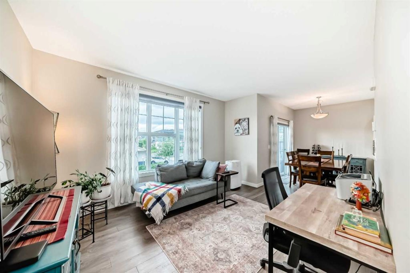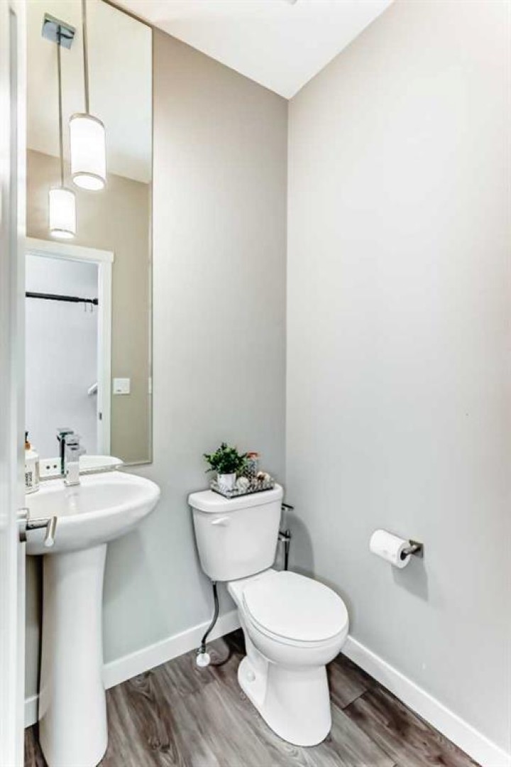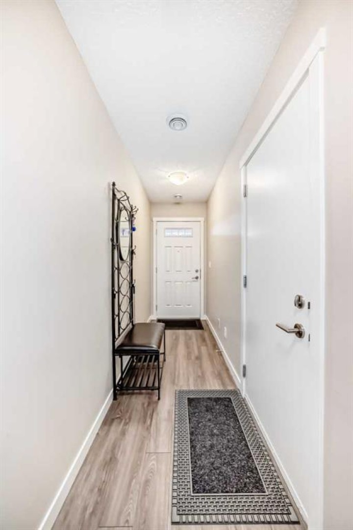 The DEAL in Nolan Hill .... Stylish and Modern Townhouse Condo in the Heart of Nolan Hill. Welcome to this exceptional two-bedroom, 2.5-bathroom townhouse condo nestled in the quiet NW community of Nolan Hill. This beautifully designed home offers the perfect blend of contemporary comfort and everyday convenience, making it ideal for professionals, small families, or savvy investors. Enter this home from your attached garage or the front entry and make your way up to the bright and open main floor featuring durable vinyl plank flooring and soaring ceilings that enhance the sense of space and light. The thoughtfully designed kitchen is a modern chef’s dream, complete with quartz countertops, stainless steel appliances, and a corner pantry that provides ample storage. Whether you're cooking a casual meal or entertaining guests, this kitchen is built to impress. The living and dining areas flow seamlessly onto the spacious south-facing balcony (10.5' x 10.5'), offering a sunny spot for morning coffee or evening relaxation. & DOESN'T STARE INTO YOUR NEIGHBOURS BALCONY. A convenient two-piece powder room rounds out the main level. Upstairs, both bedrooms are generously sized with plush carpet and each features a private four-piece ensuite bathroom and walk-in closet—an ideal layout for roommates, guests, or growing families. With dual primary suites, privacy and comfort are never compromised. The single-car finished garage provides secure parking and additional storage, while the lower level utility room is equipped with a high-efficiency furnace and hot water tank, keeping your home comfortable and energy efficient year-round. Located just minutes from major shopping centers, schools, walking paths, and public transit, this pet-friendly complex delivers on location and lifestyle. And for those looking for a move-in-ready option, furniture is available and negotiable. This Nolan Hill gem checks all the boxes—style, space, and smart design in one of Calgary’s most vibrant and growing communities. Don’t miss your chance to call this townhouse home!