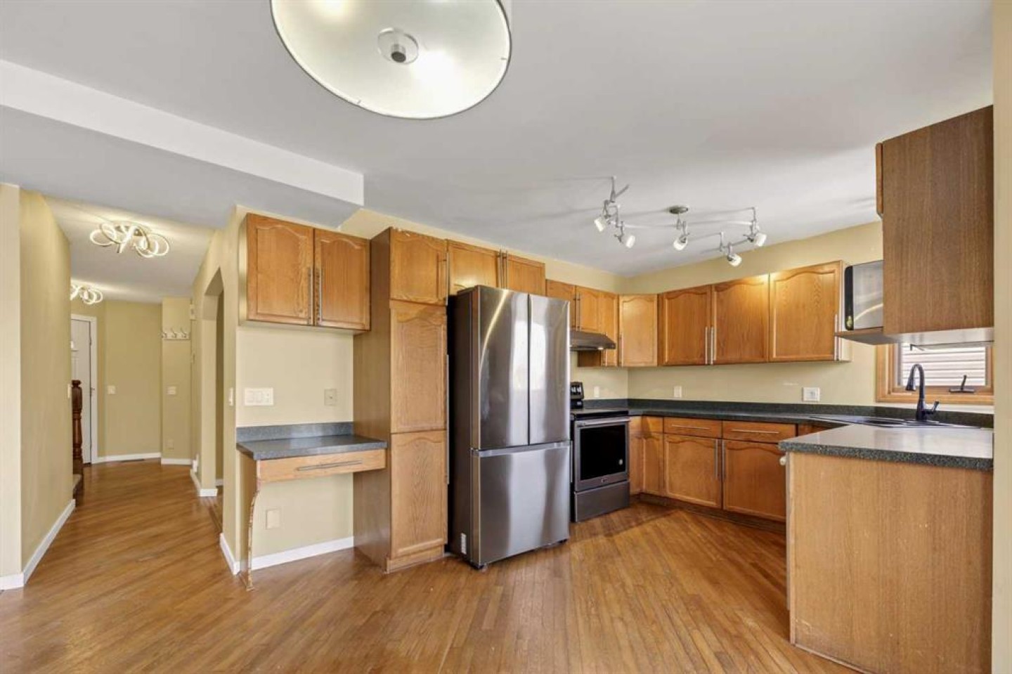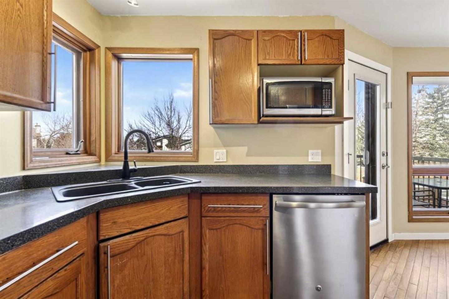 Ready to step into Calgary's serene neighbourhood of Riverbend? Look no further than this stunning home, nestled by green spaces, upgraded for peace of mind, and prepared for your unique touch. Stepping into the home from the upgraded front porch you are greeted by a large entry foyer, living room, and hallway access to your storage closets + laundry room, half bathroom, and side entrance/exit. Passing the separate dining space you enter the heart if the home, with a modern equipped kitchen and family room bolstered with a real wood burning fireplace for those cozy winter evenings! Several large NE facing windows allow natural light to brighten the space further while also inviting you to step out onto your elevated balcony and soak in nature. Moving to the upper level this home is equipped with 2 full bedrooms their corresponding 4 piece bathroom, as well as your primary bedroom and attached walk-in closet + 4 piece ensuite bathroom. All of that combined with a finished walkout basement that includes a storage/utility room, oversized rec room + wet bar, and another 4 piece bathroom... you have access to over 2536 sq/ft of useable living space! Outside the sliding basement doors you have a large backyard plus a fully built separate patio for all your summer hosting needs. The private fence gate allows you to freely walk the green space and walking/bike paths adjacent to your backyard, and connects your property to open parks + playgrounds! Additional features in this home include the large double garage, fenced in dog-run by your side entrance/exit, and of course... NO POLY B PIPING! Not only does this home include modern touches, but it also provides peace of mind through its numerous upgrades that include: an upgraded porch/balcony/patio in 2022, new roof and gutters in 2023, FULL Poly B replacement in 2024, new fridge + washer/dryer in 2025, and a brand new boiler for 2026. Need further peace of mind? The upgrades are logged with receipts and big ticket items include a transferable warranty!! Don't miss out on this amazing home! Schedule a showing today to see it for yourself!