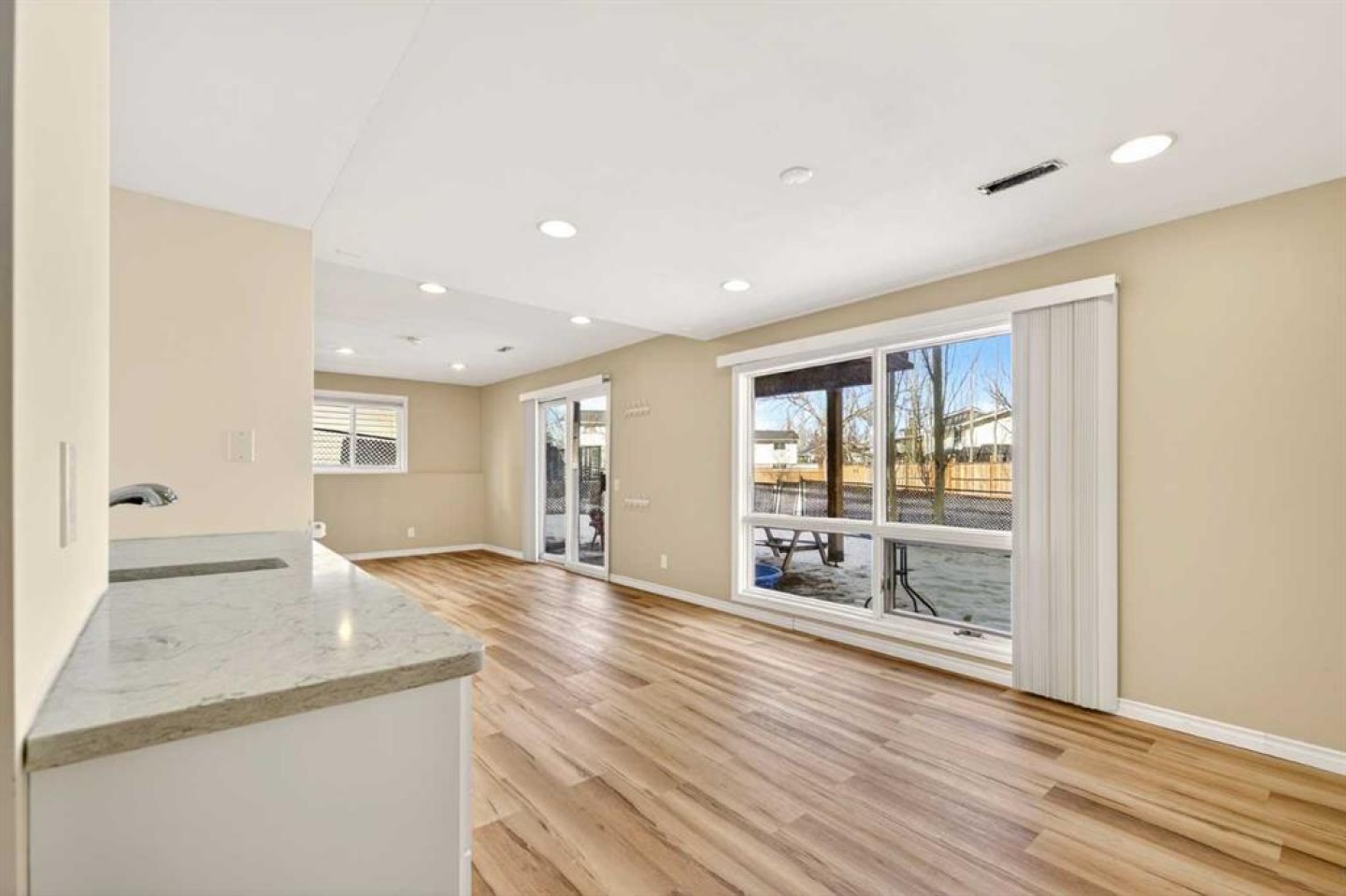 Mini Fridge in the Basement, Shelving, Blinds/Drapes where available, Backyard Custom Patio