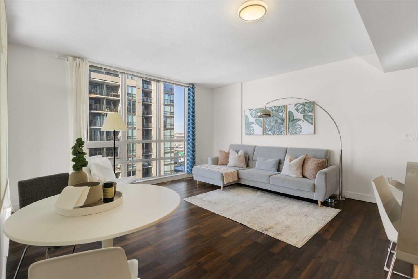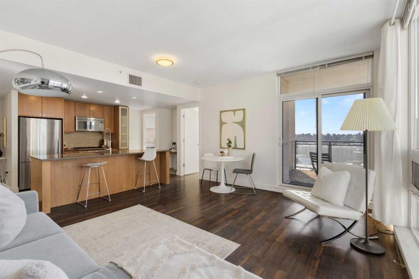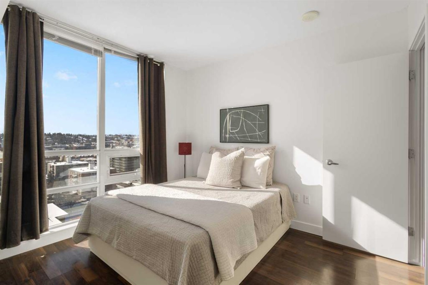 Imagine waking up to golden sunlight pouring through floor-to-ceiling windows, Rocky Mountain sunsets painting your evenings, and everything you love about Calgary just steps from your door. This is THE home. Nestled in the heart of Beltline/Downtown West neighbourhood, this meticulously maintained 2-bedroom, 2-bathroom corner home is move-in ready at the highly sought-after Nova building. Complimentary premium furnitures are included, making it perfect for families and young professionals alike. Offering 864 SF of thoughtfully-designed open-concept living space, this bright and sunny unit is bathed in natural light with stunning southwest-facing views. Concrete construction with excellent soundproofing and a peaceful school-facing orientation mean you'll truly feel at home with calm and quiet. The warm neutral colour tones, rich laminate wood flooring, tall 9-foot ceilings, and an abundance of natural light create a space that feels elegant and effortlessly livable. The year-round central heating and cooling keeps you perfectly comfortable in every season. The spacious living and dining areas flow seamlessly into a premium gourmet kitchen featuring a large quartz island, Bosch gas stove and oven, dishwasher, and Fisher & Paykel refrigerator—ideal for weeknight dinners or weekend entertaining. The master bedroom is a private retreat with a walk-through closet and spa-inspired bathroom, while a well-sized second bedroom offers the flexibility to grow—guest room, home office, or space for the people you love. Central air conditioning keeps the home cool and comfortable during Calgary’s summer days As a resident of the highly sought-after Nova building, you'll enjoy a fully equipped fitness centre, resident lounge, guest suites, and 24/7 concierge service. The location shows off city convenience with neighbourhood soul—just a 2-minute walk to Co-op, 7 minutes to C-Train, steps from the vibrant 17th Ave, and a short walk to the Bow River pathway and Prince's Island Park. Modern comfort, unbeatable location, and outstanding amenities, all in one. This is more than a condo — it's urban living at its finest, the lifestyle you deserve. Come see it for yourself!