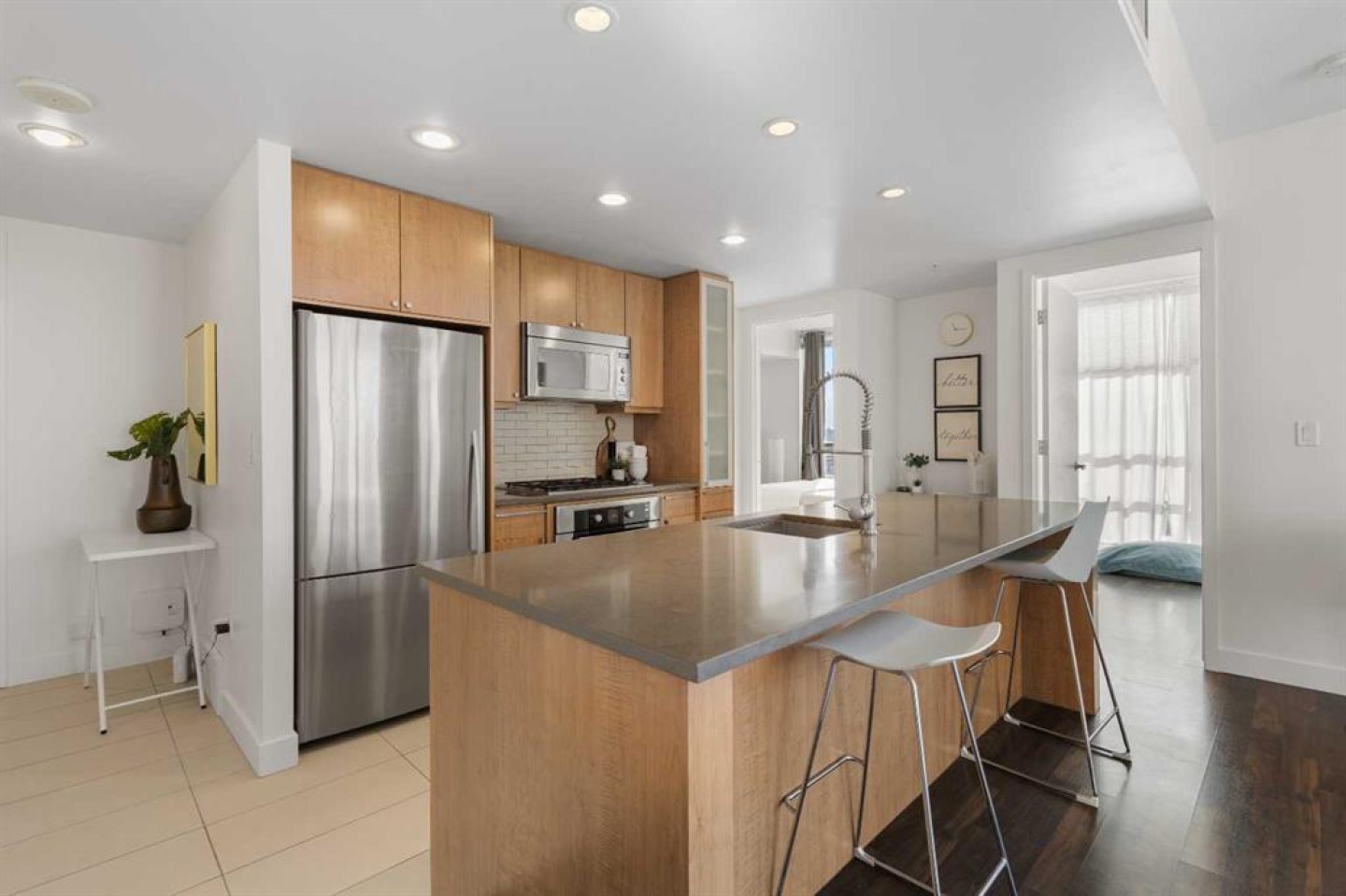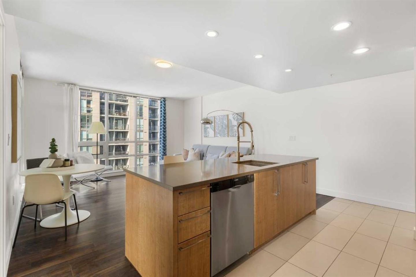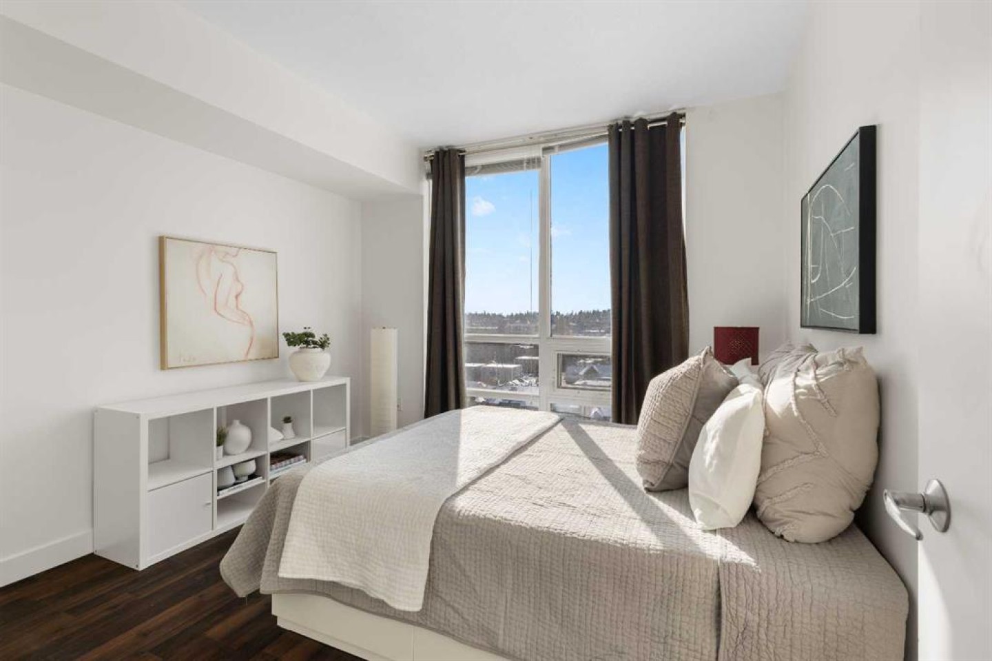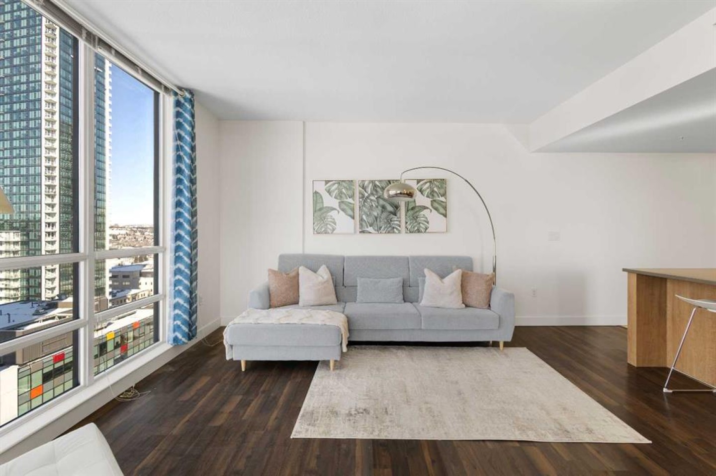 Imagine waking up to golden sunlight pouring through floor-to-ceiling windows, Rocky Mountain sunsets painting your evenings, and everything you love about Calgary just steps from your door. This is THE home. Nestled in the heart of Beltline/Downtown West neighbourhood, this meticulously maintained 2-bedroom, 2-bathroom corner home is move-in ready at the highly sought-after Nova building. Complimentary premium furnitures are included, making it perfect for families and young professionals alike. Offering 864 SF of thoughtfully-designed open-concept living space, this bright and sunny unit is bathed in natural light with stunning southwest-facing views. Concrete construction with excellent soundproofing and a peaceful school-facing orientation mean you'll truly feel at home with calm and quiet. The warm neutral colour tones, rich laminate wood flooring, tall 9-foot ceilings, and an abundance of natural light create a space that feels elegant and effortlessly livable. The year-round central heating and cooling keeps you perfectly comfortable in every season. The spacious living and dining areas flow seamlessly into a premium gourmet kitchen featuring a large quartz island, Bosch gas stove and oven, dishwasher, and Fisher & Paykel refrigerator—ideal for weeknight dinners or weekend entertaining. The master bedroom is a private retreat with a walk-through closet and spa-inspired bathroom, while a well-sized second bedroom offers the flexibility to grow—guest room, home office, or space for the people you love. Central air conditioning keeps the home cool and comfortable during Calgary’s summer days As a resident of the highly sought-after Nova building, you'll enjoy a fully equipped fitness centre, resident lounge, guest suites, and 24/7 concierge service. The location shows off city convenience with neighbourhood soul—just a 2-minute walk to Co-op, 7 minutes to C-Train, steps from the vibrant 17th Ave, and a short walk to the Bow River pathway and Prince's Island Park. Modern comfort, unbeatable location, and outstanding amenities, all in one. This is more than a condo — it's urban living at its finest, the lifestyle you deserve. Come see it for yourself!