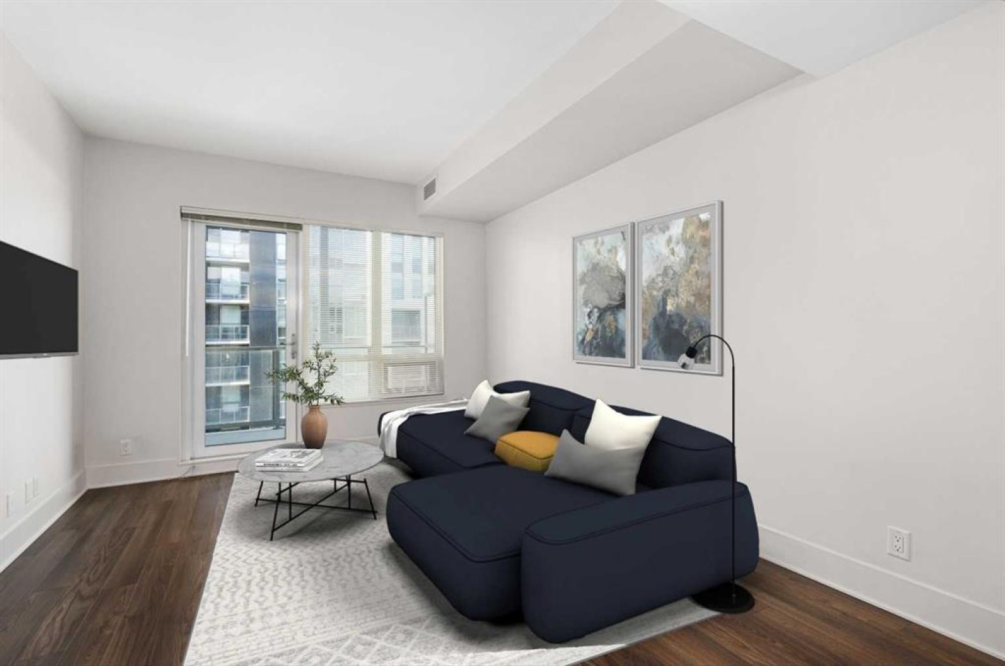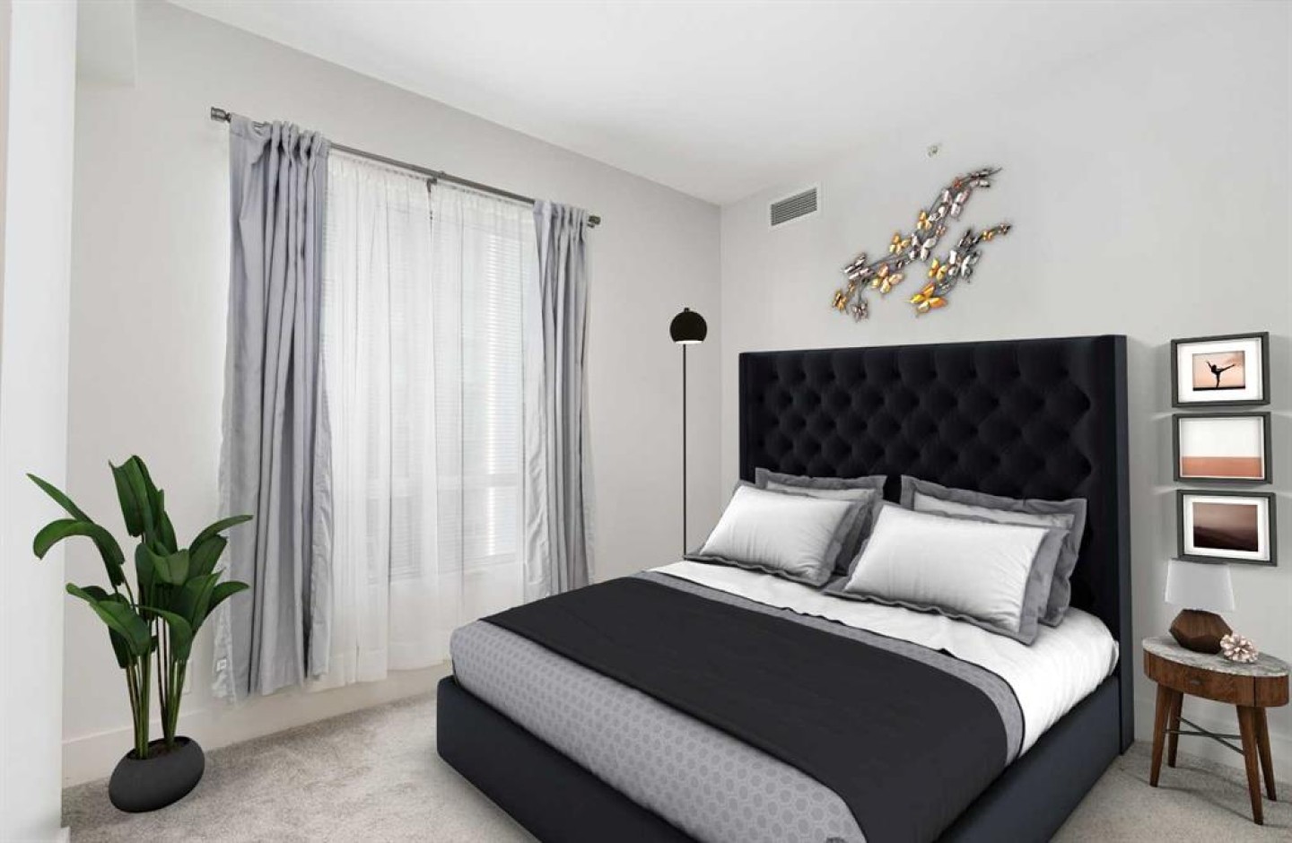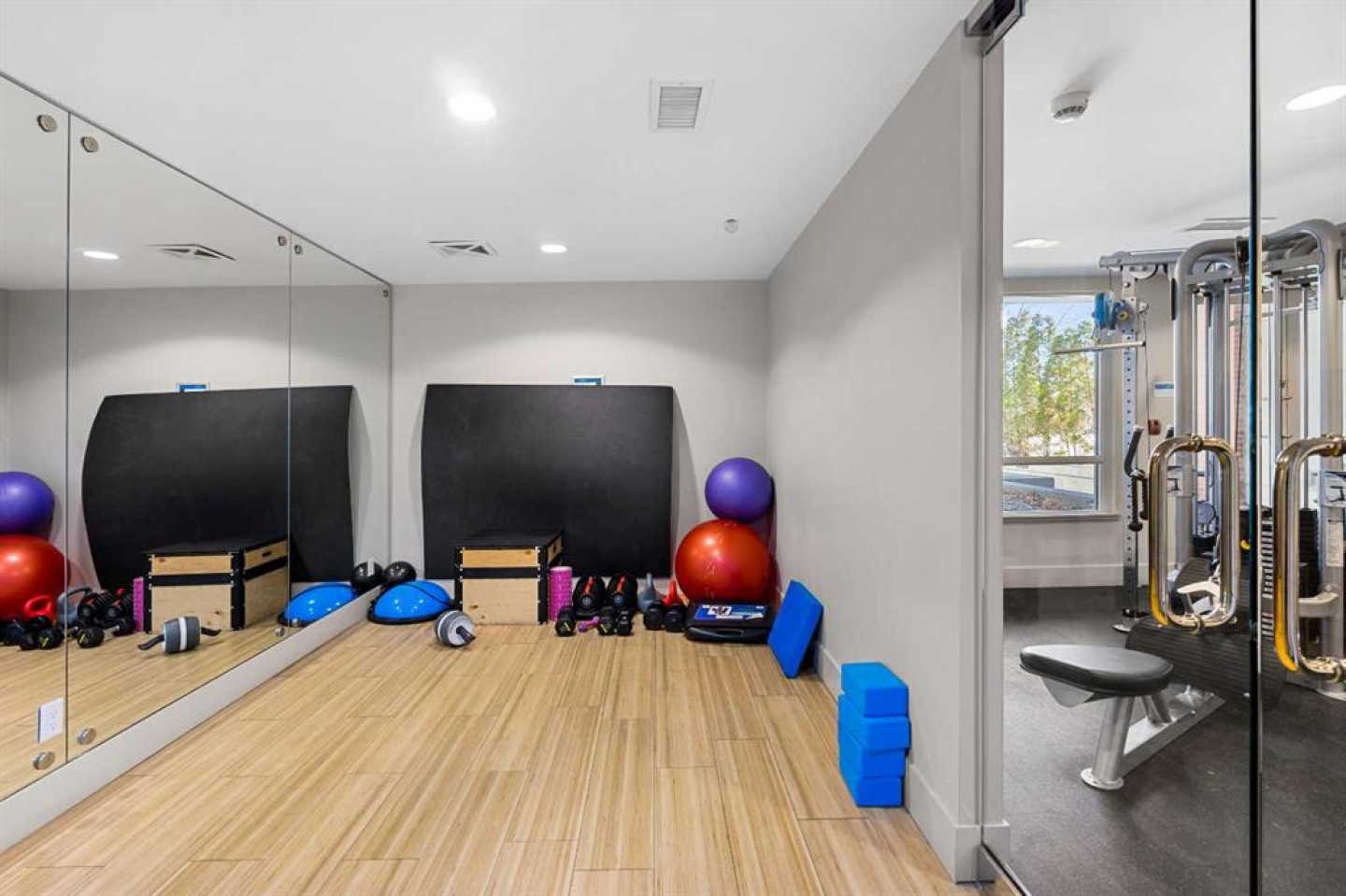 2 bed and 2 baths is a rare find at this price in the Crossings in the heart of Bridgeland. See floor plan in pictures and you will agree it is well laid out with no wasted space and good sized rooms. An ideal set up for a family or a room mate. Features a fresh coat of paint this unit is vacant and ready for you. Carpets upgraded in 2020 and professionally shampooed last weekend there is nothing left for you to do but move in and enjoy the views from this 7th floor west facing unit. There is even glimpses of the Saddledome and new arena as well. With some custom shelving and cabinetry, in unit laundry and a secure storage down the hall this unit has it all. Titled underground parking, a secure courtyard with pergolas and bbqs as well as 2 different fitness centres and the list keeps on going. Located very close to the river pathways, downtown Calgary and the Zoo LRT platform not to mention one of Calgary's most vibraant neighborhoods with so much to offer. Clean, freshly painted, 2 beds and 2 baths, and vacant ready for a new family.