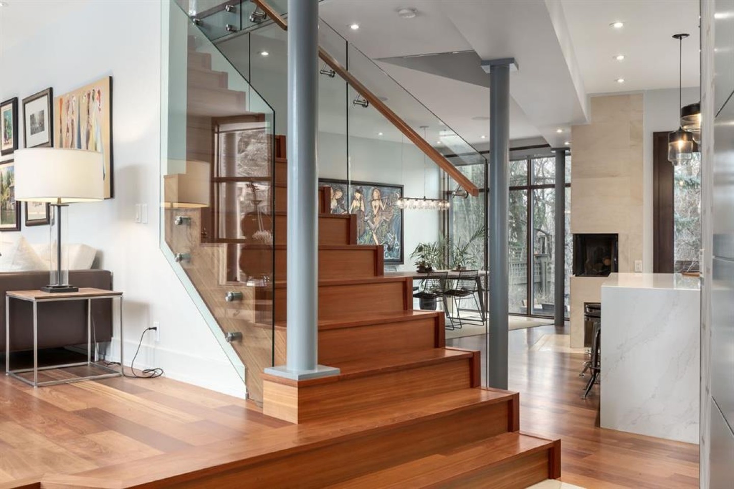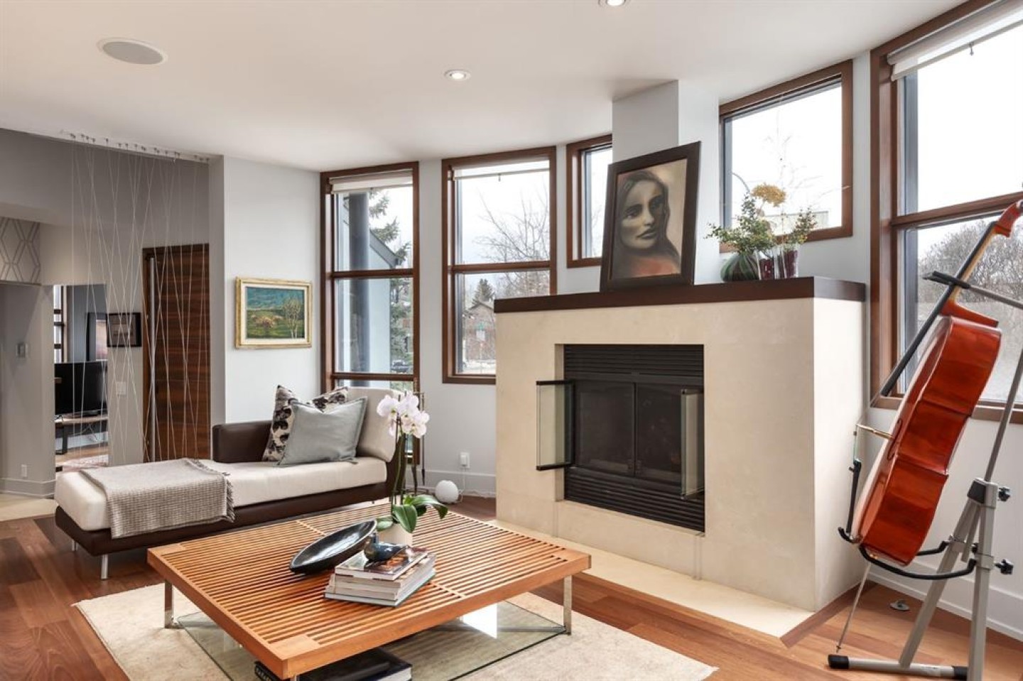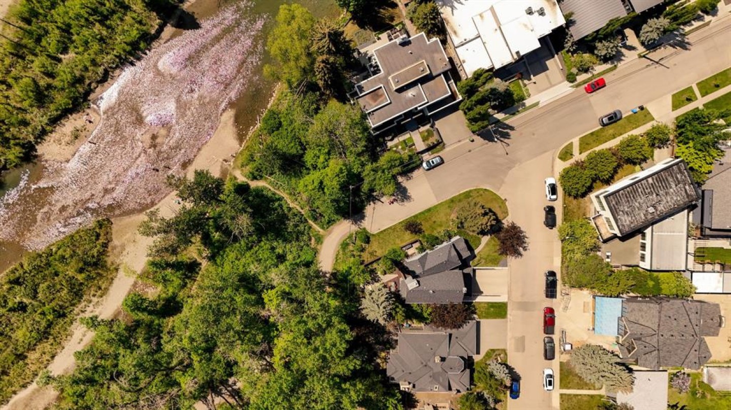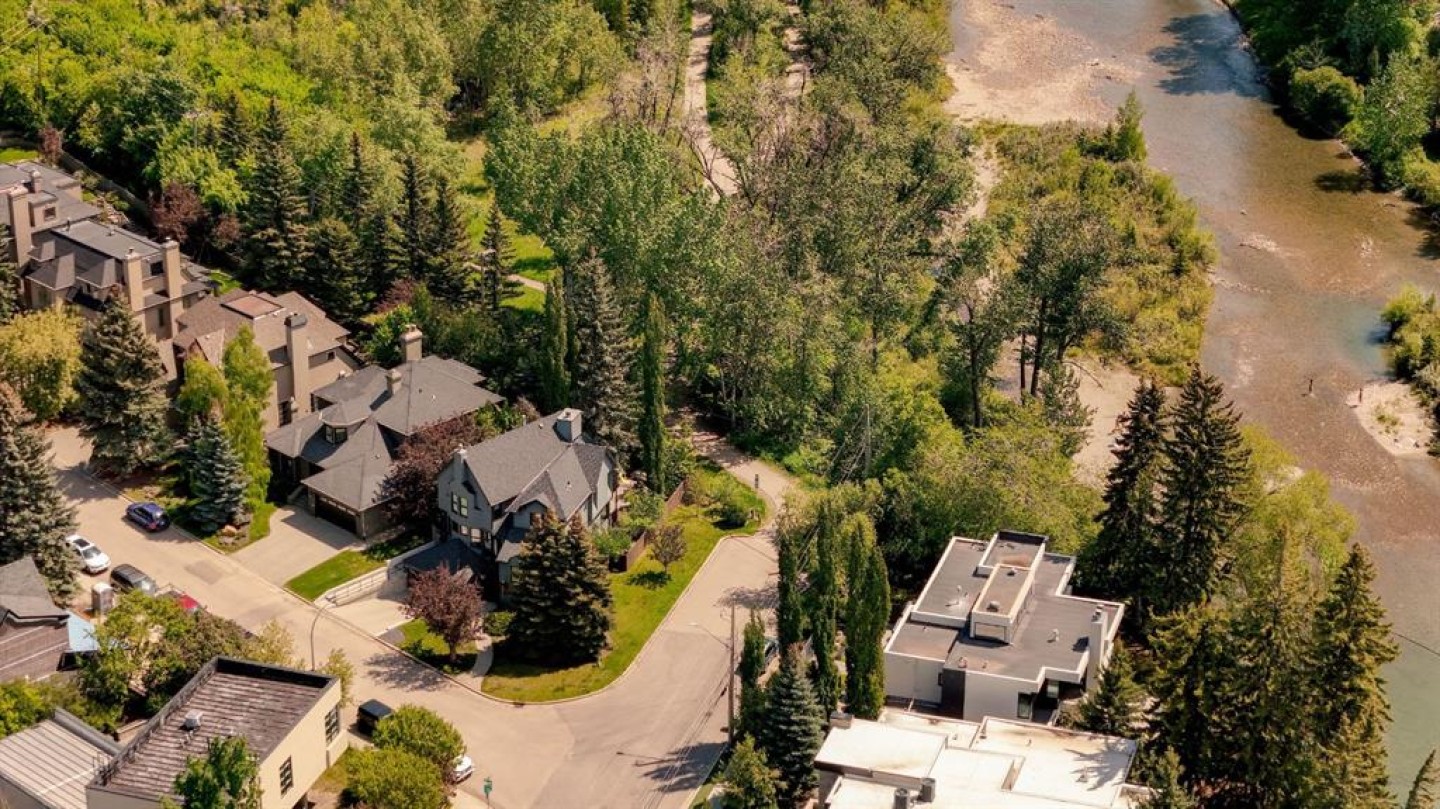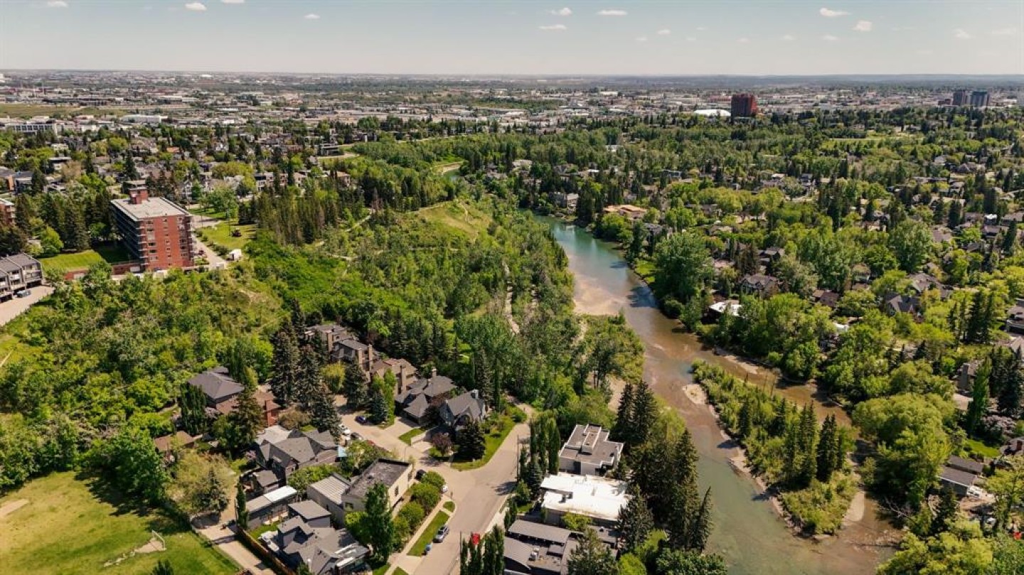A rare offering nestled along Rideau Road - combining history, nature, and modern luxury— a prized river & park adjacent location. Opportunities like this in Rideau Park are few and far between, making this home a truly one-of-a-kind find. Inside, Brazilian cherry hardwood floors set the tone for timeless elegance. The main floor is designed for both connection and privacy, with a central glass staircase anchoring the layout. Enjoy the front library/den, an elegant living room, or dining with a view of the trees. The Porcelanosa kitchen is a showpiece—flooded with natural light and overlooking the park and river. Outfitted with a full Miele appliance package, induction cooktop with hidden hood, beverage center, walk-in pantry, and Porcelanosa finishes, it’s both functional and striking. A floor-to-ceiling window and wood-burning fireplace create a warm dining atmosphere. Upstairs, the southwest-facing primary retreat offers vaulted ceilings, a private balcony with river views, spa-like ensuite with natural stone, walnut cabinetry, heated floors, soaker tub, walk-in shower, and custom wardrobe system. Two additional bedrooms complete this level—one with cheater ensuite and steam shower, the other with rare river views. The finished basement includes a gym, rec room, 4th bedroom, full bath, laundry with sink, storage, and access to the front attached garage. The backyard flows seamlessly into one of Calgary’s most scenic parks, with the Elbow River Pathway just outside your door. Whether for morning jogs or evening strolls, this location is unmatched for lifestyle and connection to nature. Rooted in legacy, Rideau Park is one of Calgary’s most prestigious communities, once home to CHCT-TV’s first studios. Rarely do homes of this caliber on Rideau Road come to market—this is more than a home, it’s a once-in-a-generation opportunity to own a piece of Calgary’s history in an irreplaceable location.