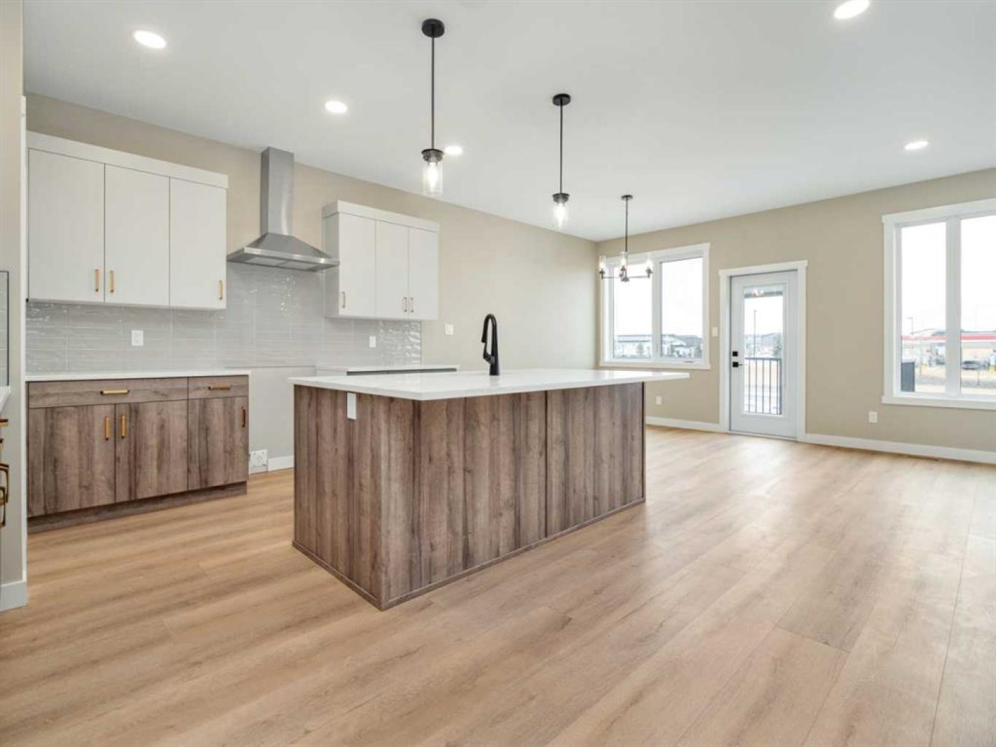 Welcome to this stunning brand-new home by Kalegaric Homes, offering 1,706 sq. ft. of thoughtfully designed living space that perfectly balances modern style and everyday functionality. This 3-bedroom, 2.5-bathroom layout is strategically designed with the primary suite on the main floor, creating a private retreat, while two spacious upper-level bedrooms provide separation ideal for family or guests. The show-stopping Adora two-tone kitchen is the heart of the home — featuring quartz countertops, a large island built for entertaining, a corner pantry, and seamless walkout access to the deck. The inviting living room is anchored by a striking feature fireplace, delivering both warmth and architectural character. Waterproof laminate flooring flows throughout the main living areas, complemented by plush carpeting in the bedrooms for added comfort. Additional upgrades include central A/C, enhanced doors and trim, and an oversized double garage. The unfinished walkout basement offers outstanding future potential — with room for two additional bedrooms and a bathroom — making this home as smart an investment as it is beautiful. Complete with modern finishes throughout and backed by new home warranty coverage, this property delivers exceptional value and long-term peace of mind.
