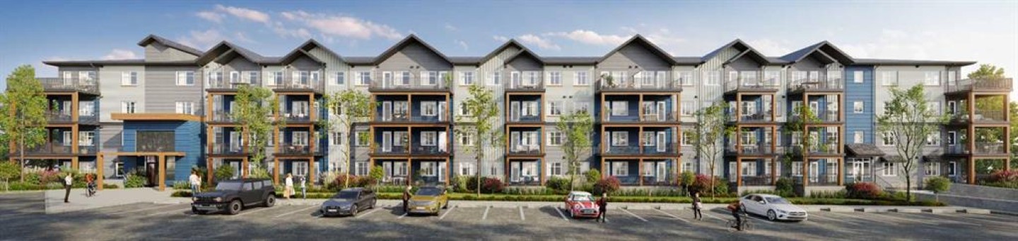 Welcome to modern, low-maintenance living in the vibrant community of Redstone — one of northeast Calgary’s fastest-growing neighborhoods, known for its accessibility, everyday convenience, and strong long-term value potential. This contemporary apartment condominium development by StreetSide Developments is thoughtfully designed for first-time buyers, professionals, downsizers, and investors seeking stylish comfort, functional layouts, and peace of mind ownership. Homes are made for everyday living, featuring open-concept designs, large windows for natural light, and private outdoor spaces. Interiors are finished with durable luxury vinyl plank flooring in main living areas, warm carpet with thick underlay in bedrooms, knockdown ceilings, and a professionally curated contemporary lighting package. Kitchens showcase modern slab-style cabinetry with 39” uppers, soft-close drawers, polished white quartz countertops, tiled backsplash, stainless steel appliances, and polished chrome fixtures with pull-down sprayers. Bathrooms continue the elevated feel with matching cabinetry, quartz counters, chrome fixtures, high-efficiency toilets, and thoughtful layouts designed for comfort and style. Built with long-term livability in mind, each home includes energy-efficient systems, digital thermostats, rough-in air conditioning, USB-C outlets in kitchen and primary bedroom, smoke and carbon monoxide detectors, and in-suite laundry. Gypcrete floor construction helps minimize sound transfer between units, while durable exterior cladding provides both curb appeal and lasting performance. Parking options include underground or surface stalls depending on the unit. The Redstone community itself is designed around daily life and connection, offering wide streets, pathways, green spaces, and playgrounds that encourage outdoor living and neighborhood interaction. Shopping, dining, and essential services are close at hand, with major retail destinations just minutes away, and planned future schools, shops, and transit enhancements continuing to strengthen the area’s long-term appeal. 88 units range from 564sqft 1 bedroom / 1 bathroom with titled surface or underground parking, 2 bedroom /1 or 2 bathroom units, all the way up to 906sqft 3 bedroom / 2 bathroom units with titled surface or underground parking. This unit is a Top Floor 1 Bedroom, 1 Bathroom with a titled surface stall. Whether you’re entering the market, simplifying your lifestyle, or securing a smart investment, these homes offer exceptional value through modern construction, quality finishes, and a location positioned for continued growth and convenience. Please note that photos are renderings as unit is not yet built.