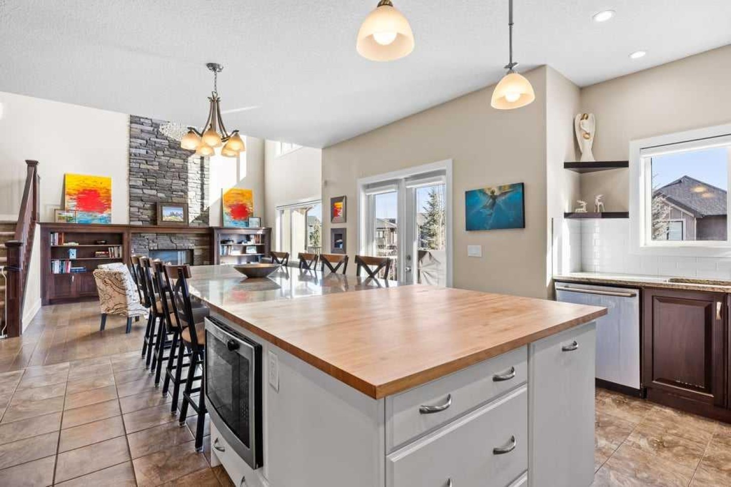**OPEN HOUSE - Sat 1-3pm** In the heart of Aspen Summit, this fully developed walkout two-storey offers nearly 3,000 sq ft of above-grade living space plus a beautifully finished lower level designed for today’s busy families. With generous room sizes, a thoughtful layout, and flexibility on every level, this home blends presence with everyday practicality. What immediately stands out is the sense of space. Homes with this open great-room design often feel significantly larger than their measured square footage, creating bright, connected living areas that feel both expansive and welcoming. The main floor is both functional and refined. A dedicated front office provides the ideal work-from-home setup, while the spacious dining area flows seamlessly into the open living room anchored by a striking stone fireplace. The kitchen is truly the centrepiece of the home. A dramatic island stretching nearly 14 feet creates a natural gathering place, comfortably seating up to ten while offering exceptional prep and entertaining space. Warm butcher block blends beautifully with granite countertops, while rich wood cabinetry extends to the ceiling for abundant storage. Pendant lighting adds warmth overhead, and the adjacent eating area opens directly onto the deck, creating effortless indoor-outdoor living for summer evenings and weekend gatherings. Practical touches make everyday living easy, including a well-designed mudroom off the oversized double attached heated garage, main floor laundry, and thoughtful storage throughout. The garage also features approximately 200 sq ft of overhead shelving for excellent organization. Upstairs, four well-sized bedrooms are complemented by a central bonus room with vaulted ceilings, creating an airy space ideal for family time or relaxing at the end of the day. One of the secondary bedrooms also features a vaulted ceiling, adding extra character and openness. The primary suite offers a large walk-in closet and a spacious ensuite featuring a soaking tub, separate shower, and extended vanity with a dedicated makeup station. One secondary bedroom includes its own ensuite and walk-in closet, while the remaining two share easy access to a full bath. The fully finished walkout basement adds incredible versatility with a large recreation room, two spacious bedrooms, a full bathroom, and a secondary kitchen area ideal for extended family, guests, or multi-generational living. Additional features include Gemstone exterior lighting, dual furnaces, a radon mitigation system, and a full irrigation system. Located in one of Calgary’s most desirable Westside communities, Aspen Woods offers close proximity to top-rated schools, Aspen Landing, parks, pathways, and convenient access to downtown or a quick escape west to the mountains. A new middle school is also planned nearby with a projected opening around 2029–2030. If you’ve been waiting for a spacious, move-in-ready Aspen home with room to live, work, and entertain, this is one you won’t want to miss.