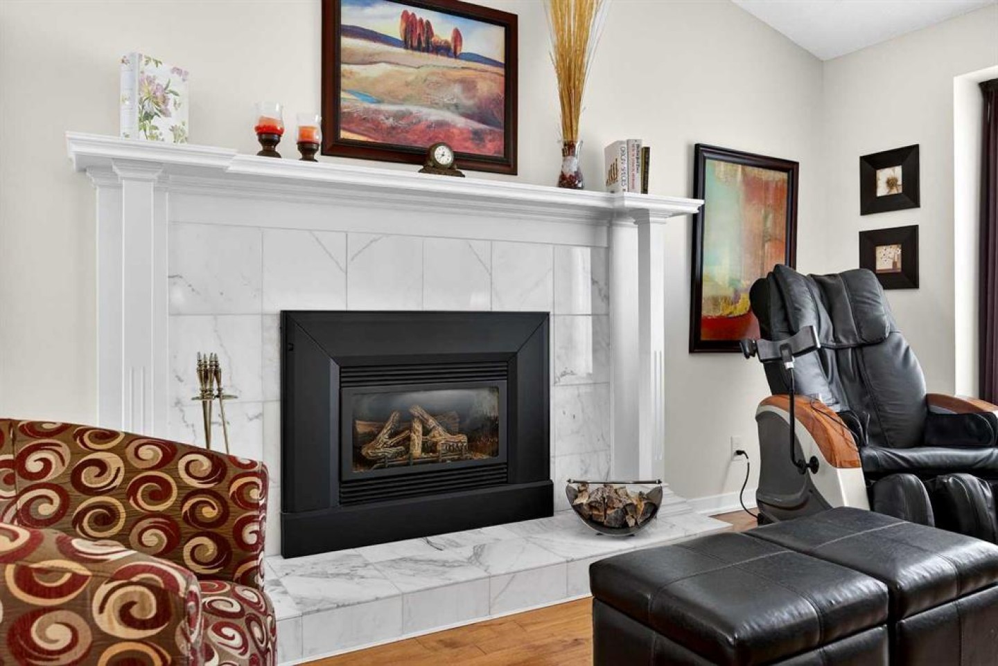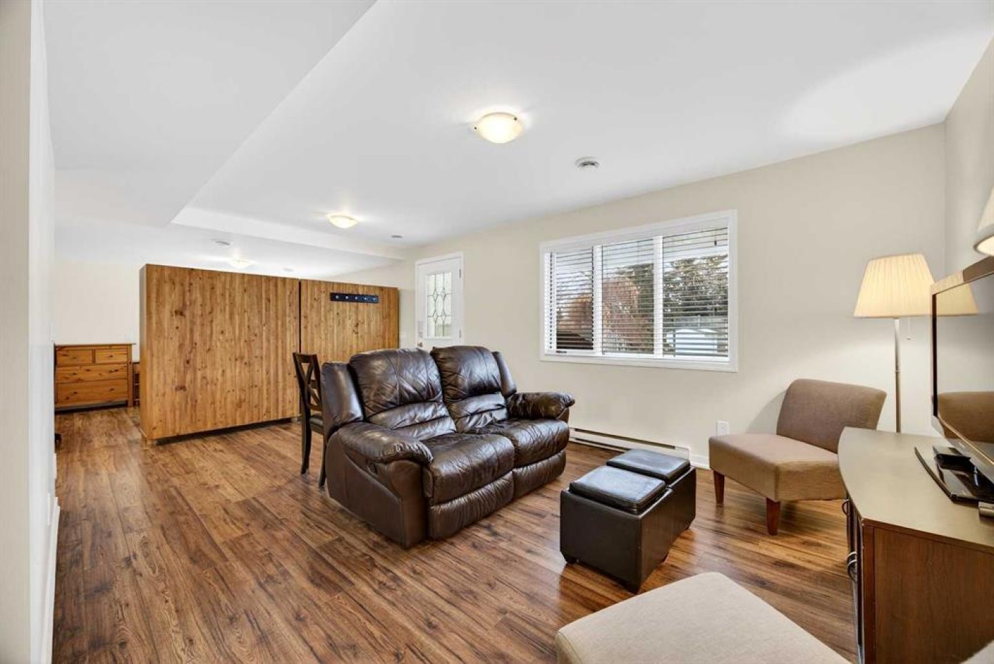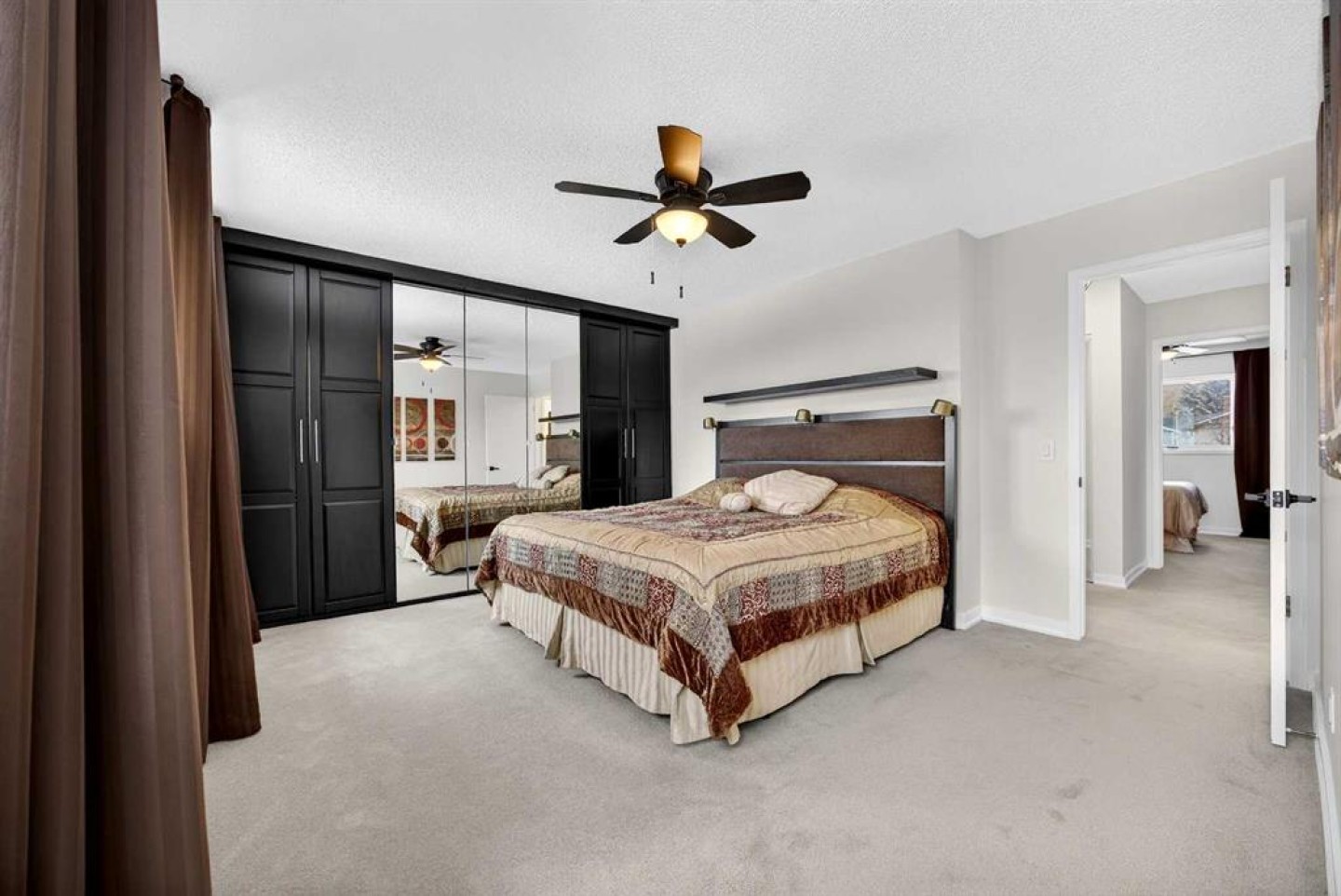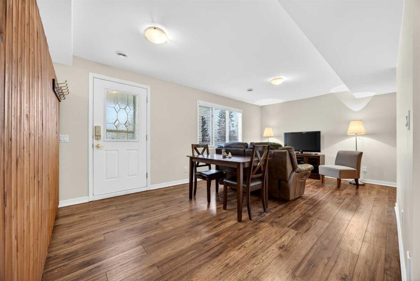 Experience the ultimate live-in, live-out lifestyle with this rare opportunity to own a quarter-acre estate right in the city. This meticulously cared-for two-storey home offers over 3,000 square feet of total developed living space, designed with the elegance of a country vacation home and functional flow perfect for a growing family. Backing onto private green space, the property boasts 180-degree views of the Bow Valley, the Rocky Mountains, and COP. The open and bright main floor features 9-foot ceilings and rich maple hardwood flooring throughout. A true heart of the home, the renovated kitchen is outfitted with custom 42-inch soft-close cabinetry, granite countertops, and a massive 4x8 foot island. Two upgraded patio doors lead directly to the elevated south-facing deck, featuring a manual retractable awning and a natural gas BBQ hookup—ideal for summer entertaining while taking in the mountain views. The main level also includes a spacious living room with a gas-insert fireplace, a formal dining area, and a functional laundry/mudroom with custom storage. Upstairs, the family retreat consists of three generous bedrooms, all wired for high-speed internet. The primary sanctuary features south-facing windows, a full-wall closet organizer, and a 5pc, spa-inspired ensuite, featuring heated ceramic floors, dual sinks, and a double-head walk-in shower. Two additional bedrooms share a well-appointed five-piece main bath that also features tiled floors, as well as in-floor heating. The walkout basement has been completely reimagined as a versatile studio suite (illegal) or massive entertainment hub. Featuring high ceilings, sound-proofing insulation, and durable wood-grain engineered flooring, this level includes a large family room, a second galley-style kitchenette with dishwasher, microwave and fridge, a flex room that can easily convert to a fourth bedroom, and a full bathroom with a second laundry set. With two huge south-facing windows and a separate keypad entrance, it is perfectly suited for multi-generational living or a home business. Outdoor living is truly exceptional on this oversized property. The south-facing backyard is your private orchard and garden paradise, featuring maturing apple trees, blueberry bushes, strawberries, rhubarb, and five raised garden beds. The massive fully fenced yard also includes a water pond feature, a large concrete patio, and an open gazebo with a swing. Practical upgrades include a newer (2024) hail-guard asphalt shingle roof with a 25-year warranty, newer eavestroughs, a built-in central vacuum system, and a double attached garage with a sharp epoxy floor coating and workbench. The large concrete driveway easily accommodates four vehicles. Located in a quiet, mature community with no city sidewalks to clear, you’ll love being just minutes from paved walking and biking trails, off-leash parks, and the Bow River. Enjoy easy access to the C-Train, University of Calgary, SAIT, and premium shopping at Crowfoot Circle.