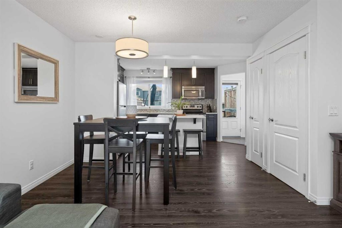 Welcome to this impeccably maintained home in the heart of Auburn Bay, one of Calgary’s premier lake communities. This bright and airy residence features an open-concept main floor designed for seamless entertaining, highlighted by 9’ ceilings, durable laminate flooring, and stylish finishes. The gorgeous kitchen is a standout, boasting espresso cabinetry, sleek quartz countertops, a central island, and stainless steel appliances. A functional mudroom with built-in storage lockers and a half-bath completes the main level. Upstairs, you will find a dual-primary layout. Both oversized bedrooms easily accommodate king-sized furniture and offer private walk-in closets and 4-piece ensuites, providing ultimate comfort and privacy. The living space extends into the developed basement, featuring a versatile multi-use area perfect for a second living room, home office, or guest retreat. The laundry and utility room offers substantial extra storage to keep your home organized. Enjoy summer evenings on your west-facing rear deck, complete with a natural gas BBQ line and a fully fenced yard. The rear double parking pad offers ample space for vehicles, an RV, or a future garage. Modern comforts include central air conditioning and a central vacuum rough-in. Perfectly situated on a quiet street, you are just steps from parks, schools, and the amenities of Auburn Station and Mahogany Village. With the South Calgary Health Campus, Seton, and the world’s largest YMCA within walking distance, this home offers an unparalleled lifestyle in SE Calgary.