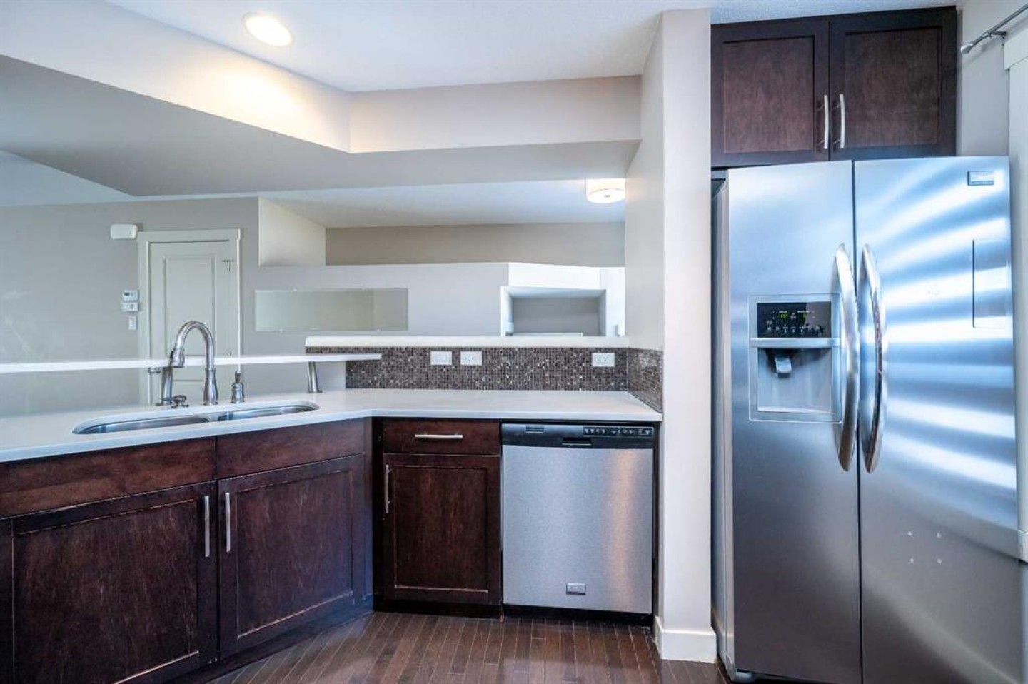 Fantastic Townhome in Aspen Woods Don’t miss this one! Mosaic of Aspen Woods .. This Immaculate Home Has Been Meticulously Maintained. Many Upgrades Make This Home Luxurious. high ceiling in the Living Room with Huge Window create lots of natural lights. Good size Dining Area Overlooking the Living Room. Dream Kitchen with Maple Cabinets & Quartz Counters, features Stainless Steel appliances. Balcony For BBQ Off the Kitchen. Hardwood Floors & Ceramic Tiles. 2 Master Suites Upstairs Both with Walk-In Closets & Ensuite Baths with Granite Counters. Master with stand up Shower and tub. Upstairs Laundry for convenience. Along with Plenty of Storage at the bottom near the garage. Attached Double Garage For storage or to keep your car warm for the winter. Perfect Location in a Private Setting With a South Exposure Front Yard Far From the Busy Street. Tons of amenities close by with easy access to the mountains in the West. 17th Ave LRT is nice and close as well for those who may work downtown. Call to book your showing today!!