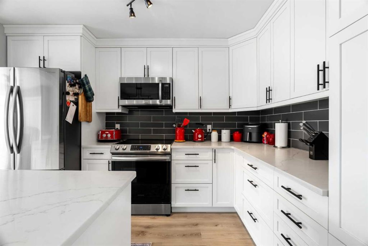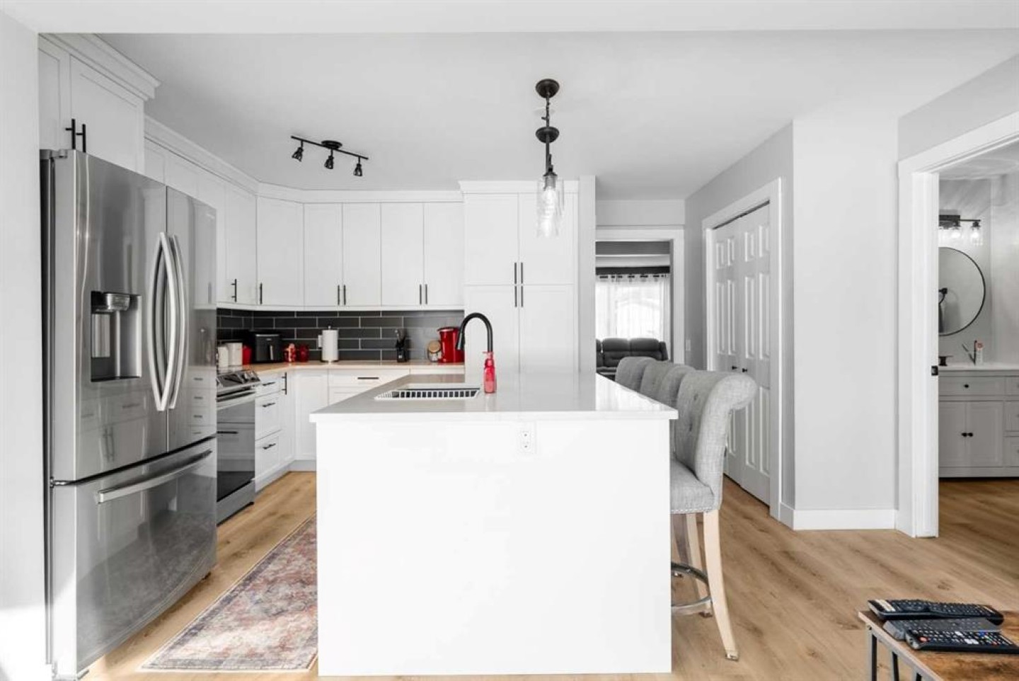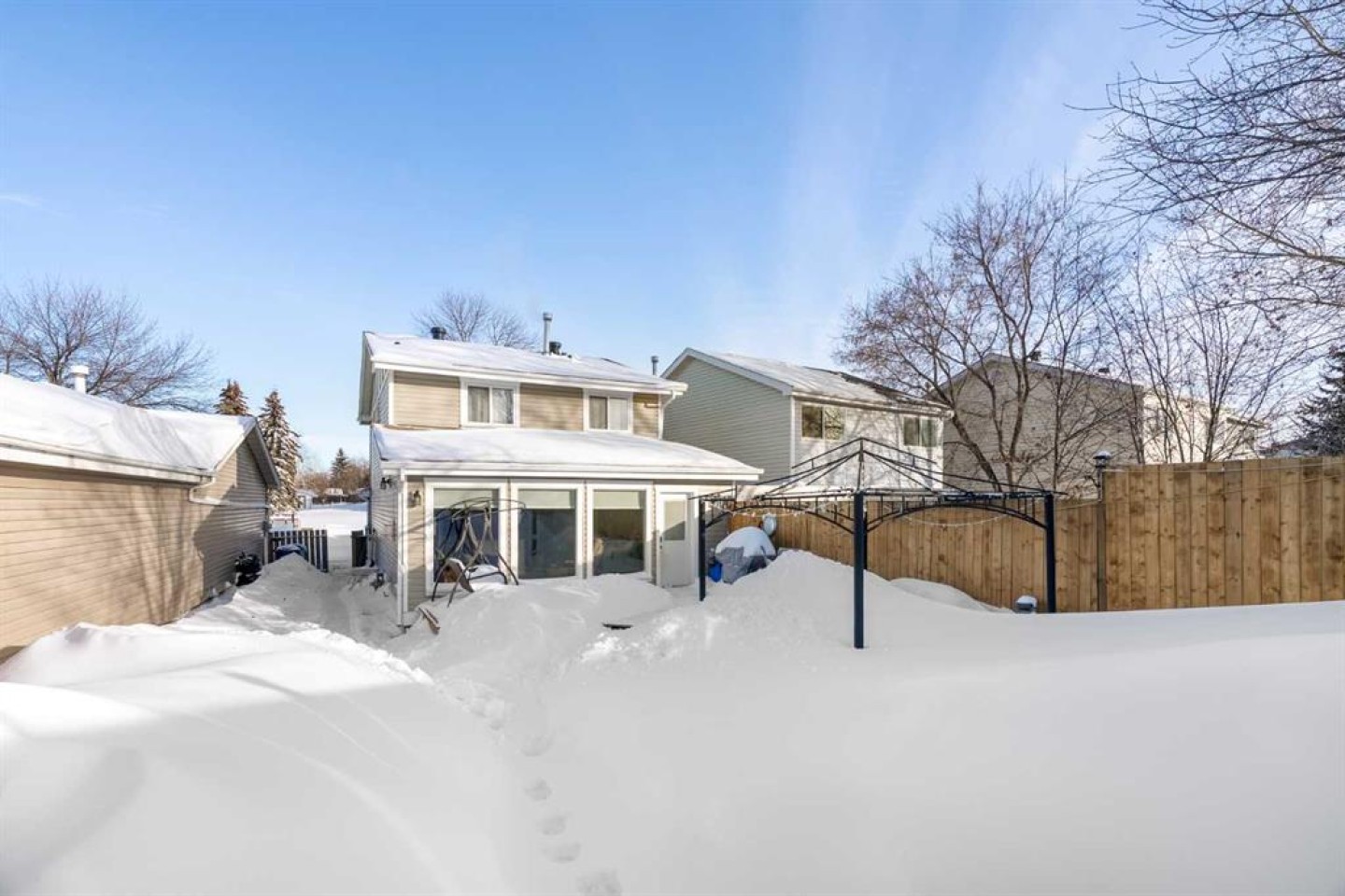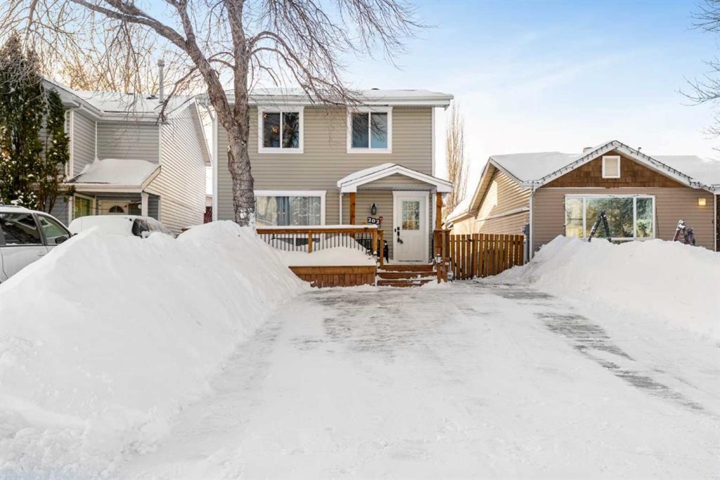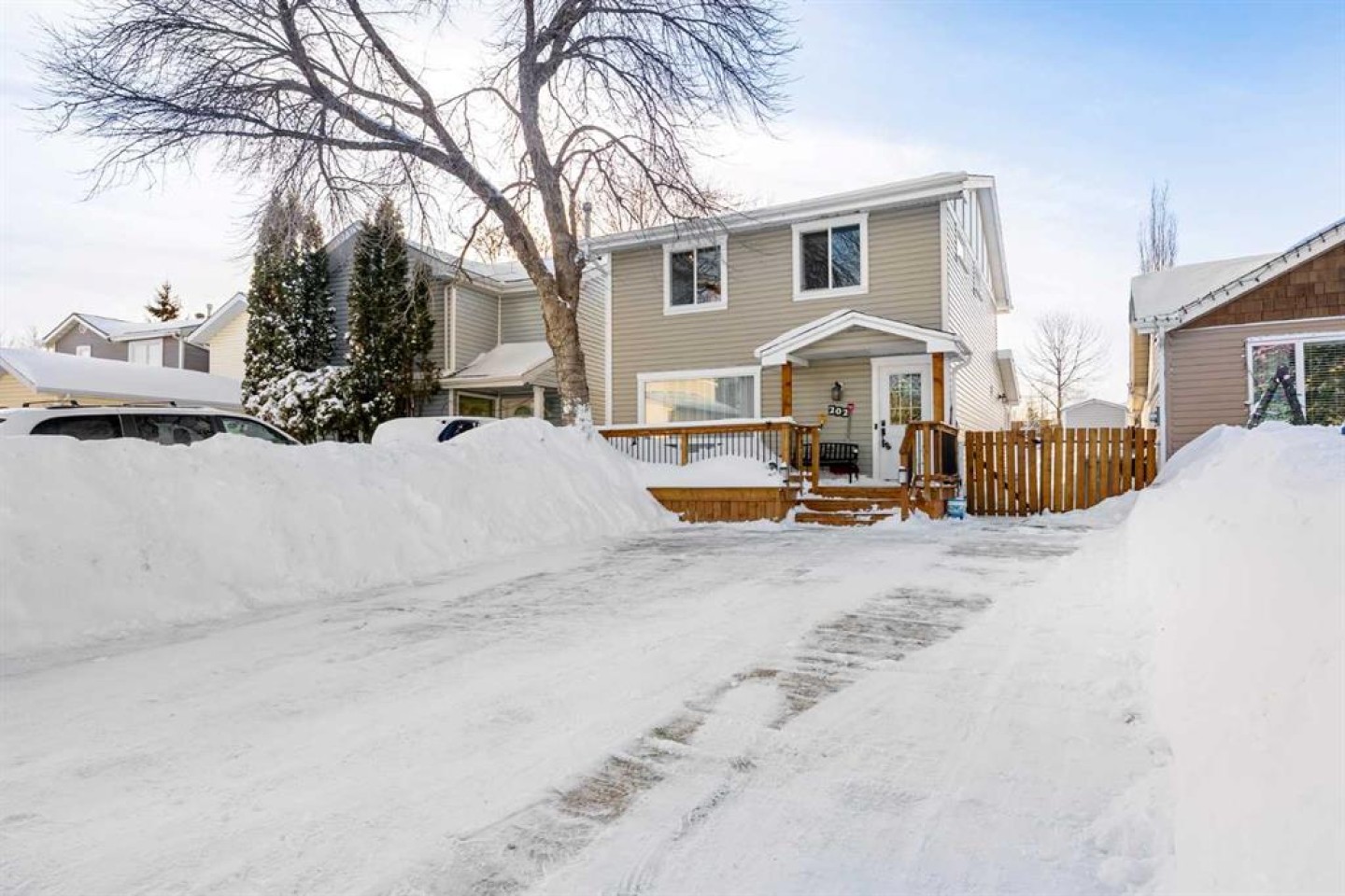 Welcome to this hidden gem tucked away on a quiet street in Thickwood, just minutes from schools, shopping, and scenic trails! From the moment you arrive, you’ll appreciate the inviting curb appeal and charming front porch that set the tone for what’s inside. Step through the spacious foyer into a thoughtfully updated home featuring extensive renovations and upgrades completed in recent years. The main level offers a bright and spacious living and dining area, flowing seamlessly into a stunning kitchen that opens to the cozy family room. With an abundance of windows overlooking the backyard, natural light pours into this beautiful gathering space. Two separate living areas on the main floor ensure there’s plenty of room for everyone to relax and unwind. The kitchen is truly a chef’s dream! Showcasing an oversized island perfect for cooking and baking, endless quartz countertop space, and exceptional storage including two generous pantry areas, this space was designed for both function and style. A beautifully finished 4-piece bathroom and durable vinyl plank flooring throughout complete the main level. Upstairs you’ll find three comfortable bedrooms, including a bright primary retreat with extra windows for added natural light. The walk-in closet is impressively large - offering all the space you could possibly need! The fully developed basement features a spacious rec room, a den, laundry area, and a designated space ready for a future third bathroom — providing flexibility for growing families or guests. Outside, the fully fenced backyard offers privacy and a safe space for kids and pets. The wide side gate allows easy access for ATVs, motorcycles, or snowmobiles, and 220V power is already in place for a future hot tub. Enjoy the convenience of permanent exterior holiday lighting that can be customized year-round with multiple colors and remote control. The low-maintenance artificial turf in the front yard ensures you’ll have green grass early in the season - without the upkeep. Move-in ready and packed with value, this beautifully maintained home is waiting for its new owners. Don’t miss your opportunity - schedule your private showing today!