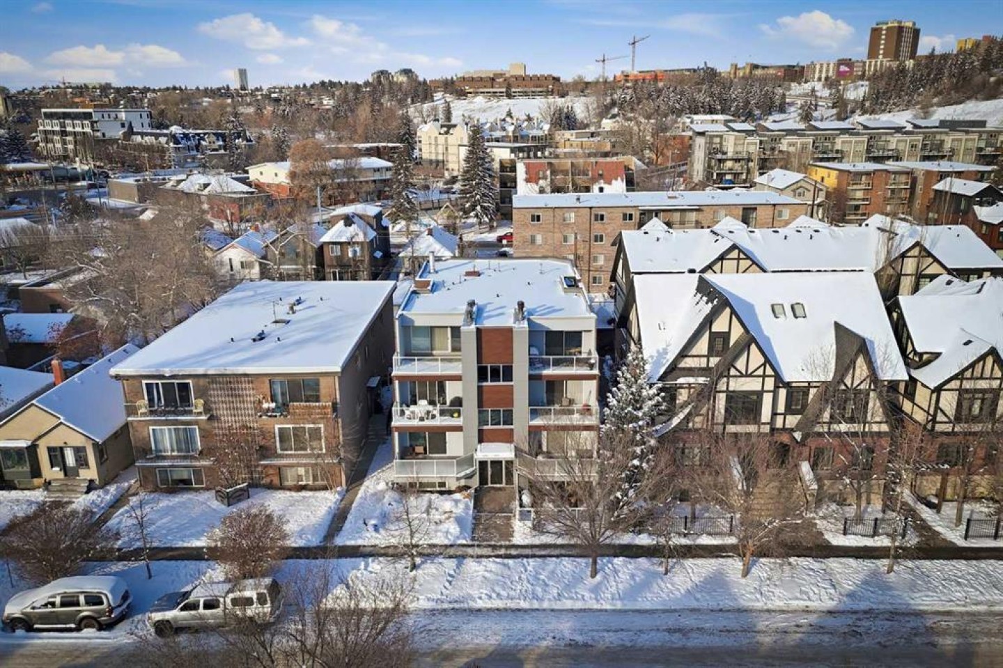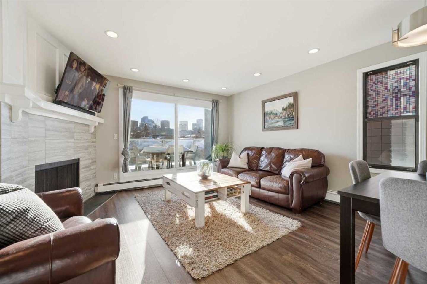 Unique opportunity in the heart of Sunnyside, just steps to the LRT, Safeway, the shops and restaurants of Kensington, Bow River pathways, and a quick walk into Downtown! This rare three-bedroom condo offers the perfect blend of inner-city convenience and comfortable living, all in a beautifully renovated, move-in-ready package. Flooded with natural light, the unit features a newly updated south-facing balcony where you can soak up the sun while enjoying spectacular downtown skyline views: the ideal spot for your morning coffee or evening unwind. Inside, the inviting living room is anchored by a real wood-burning fireplace with gas log lighter, creating a warm and cozy atmosphere that’s hard to find in condo living. The modern kitchen overlooks the spacious dining and living areas, making it perfect for entertaining or everyday living. Thoughtfully designed, the private rear wing of the unit offers three generous bedrooms, including a primary retreat complete with a convenient two-piece ensuite. Additional highlights include in-suite laundry, dedicated in-suite storage, and an exceptional layout that maximizes both function and flow. Whether you're walking to work, biking along the river, or enjoying everything Kensington has to offer, this is truly inner-city living at its best. Nothing to do but move in and enjoy; don’t miss this rare opportunity!