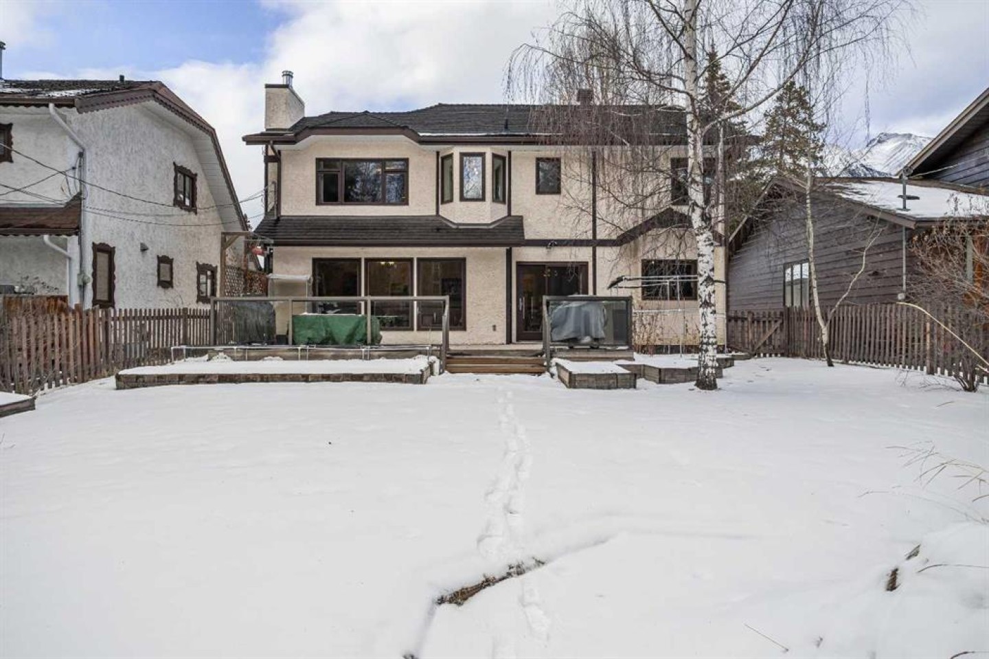 Welcome to 933 15th Street – come home to this sunny location in coveted Lions Park in Canmore. This 4 bedroom, 4 bathroom home has the perfect floorplan for your family and guests. Boasting a generous kitchen, two dining areas, and two large living rooms on the main level this very flexible floorplan has space for everyone. The bright living level extends outdoors onto the huge 370 sqft south-facing deck to enjoy the plentiful sun. Two large primary bedrooms with mountain views and ensuites occupy the upper level, along with 2 more bedrooms, a 5 piece family bathroom and a home office. Keep your cars and mountain toys safe in the heated double garage, with parking for up to 4 more (or your RV/ trailer) on the driveway. The back yard also benefits from rear lane access. All this within walking distance of the Bow River trails, Canmore High School, Arts Place, Elevation Place, and the heart of Canmore on Main Street. This delightful home has seen many quality upgrades and additions over the years including the addition of the 2nd primary bedroom and ensuite, replacement windows, rubber roof, on-demand hot water, high efficiency furnace, additional insulation, and beautiful timberwork at the front of the home. A truly unique and fantastic opportunity in one of Canmore’s most sought-after neighborhoods. (Note: Short term rentals are not permitted at this property.)