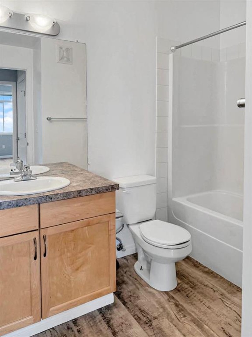 Front-facing and fully refreshed, this stunning Eagle Rock Condo is practically brand new. Featuring seamless vinyl plank flooring throughout, fresh paint, updated light fixtures, modern countertops, and new tile, every detail has been thoughtfully upgraded. With over 1,050 sq ft of living space, these units offer generous room to entertain and a layout that flows effortlessly from one space to the next. Enjoy breathtaking mountain views from every window, bringing natural beauty into your everyday living. This unit also offers the convenience of in-suite laundry and comes with two titled parking stalls — one underground and one above ground. Immediate possession is available. Make your offer and step into low-maintenance condo living — your new lifestyle awaits.