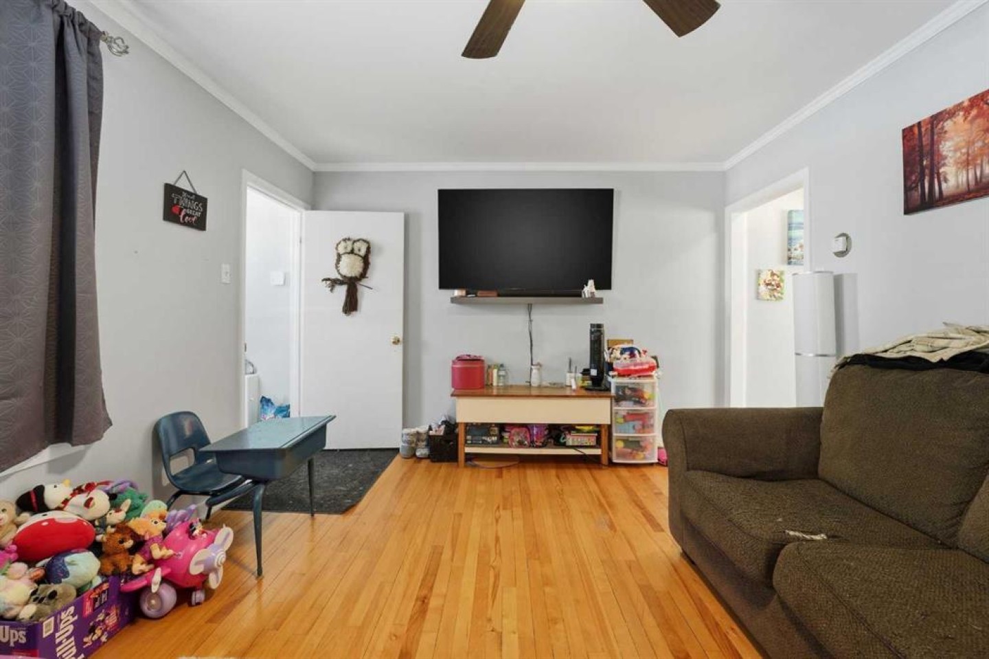 Affordable Living in Springbrook! Condo fees include HEAT, water, common area maintenance, & snow removal making this a smart and budget-friendly opportunity. This well-maintained townhouse offers a spacious, sun-filled front living room and a functional kitchen with island, ample cupboard and counter space, and updated countertops. Step outside to your private deck and fenced yard. Upstairs features an oversized primary bedroom, second bedroom — both with hardwood flooring — and a full bathroom. The lower level includes a family room with laminate flooring plus laundry and storage space. Recent updates include crown moulding, appliances, countertops, and updated electrical (2025). Includes one designated parking stall. A great option for first-time buyers, downsizers, or investors!