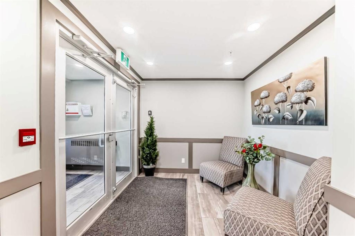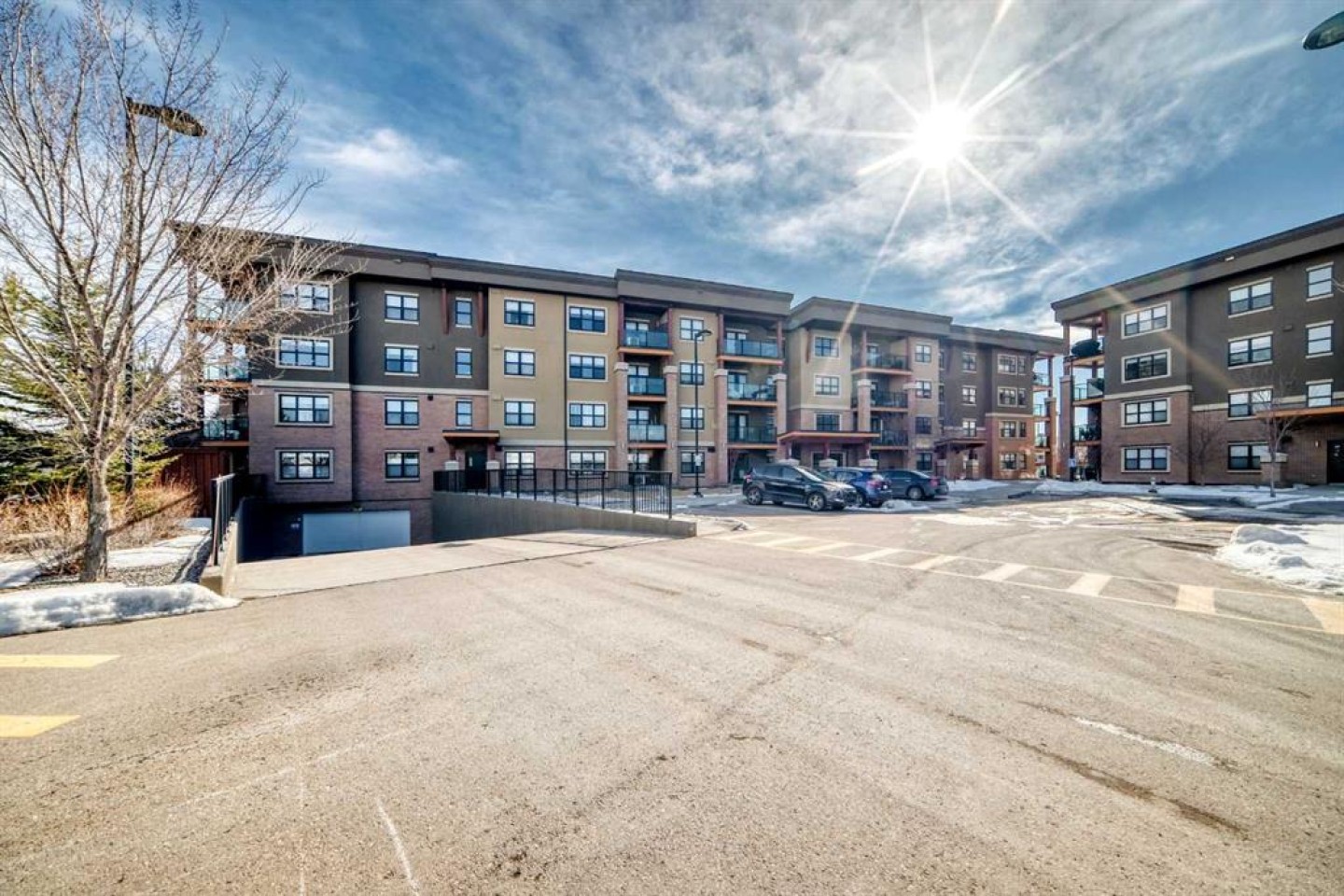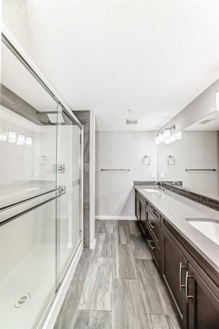 Welcome to The Chateaux at 10 Market Boulevard – Airdrie’s premier 55+ condominium community where luxury and convenience meet. This beautifully appointed ground-floor unit offers 2 spacious bedrooms, each featuring walk-in closets with custom organizers, providing exceptional storage. The primary ensuite showcases dual sinks and a walk-in shower, while the main bathroom features a relaxing soaker tub—perfect for unwinding. The thoughtfully designed kitchen and living areas feature quartz countertops, durable vinyl flooring, ample cabinetry, a pantry, and a convenient broom closet. High-end top-down/bottom-up blinds allow natural light to fill the space while maintaining privacy. Step outside to your private ground-floor deck with glass railing and gas BBQ hookup, offering easy access directly into your home. Additional highlights include: • Titled underground parking stall, conveniently located near the elevator entrance • Storage unit on the wall of this parking spot that you can lock up • Large walk-in closets with built-in organizers • Ample visitor parking Residents of The Chateaux enjoy exceptional amenities including a beautifully landscaped courtyard with a gas fireplace, a bookable amenity room for private gatherings, and a secure workshop located in the underground parkade. Ideally situated close to shopping, banking, restaurants, and medical offices, this home offers comfort, convenience, and community living. Simply book your showing and discover the lifestyle waiting for you at The Chateaux.