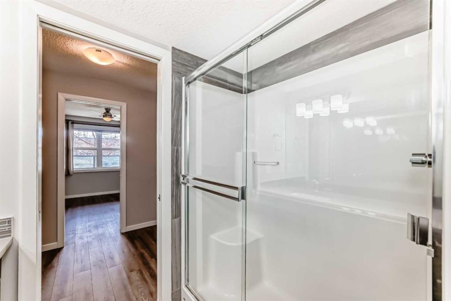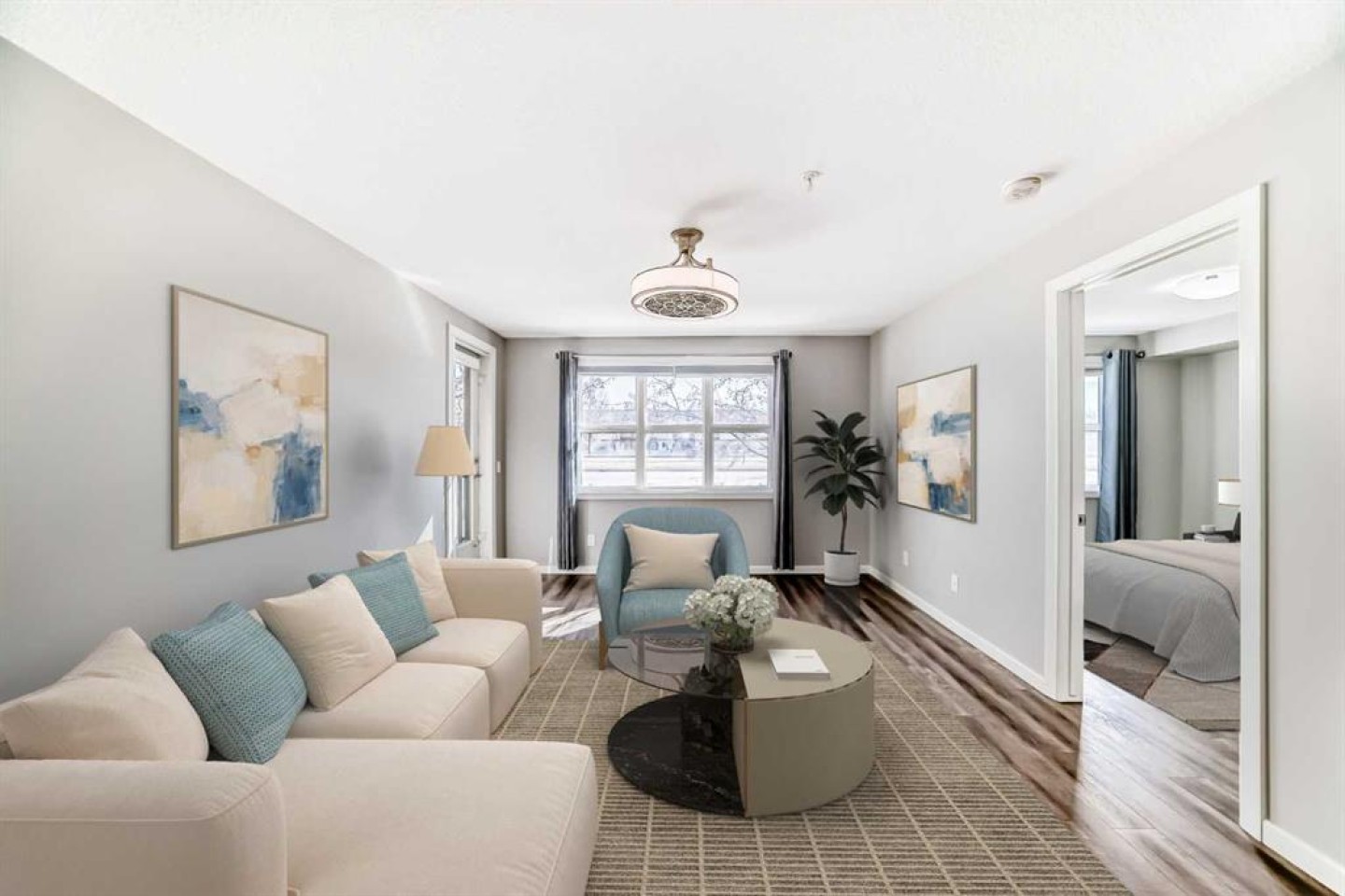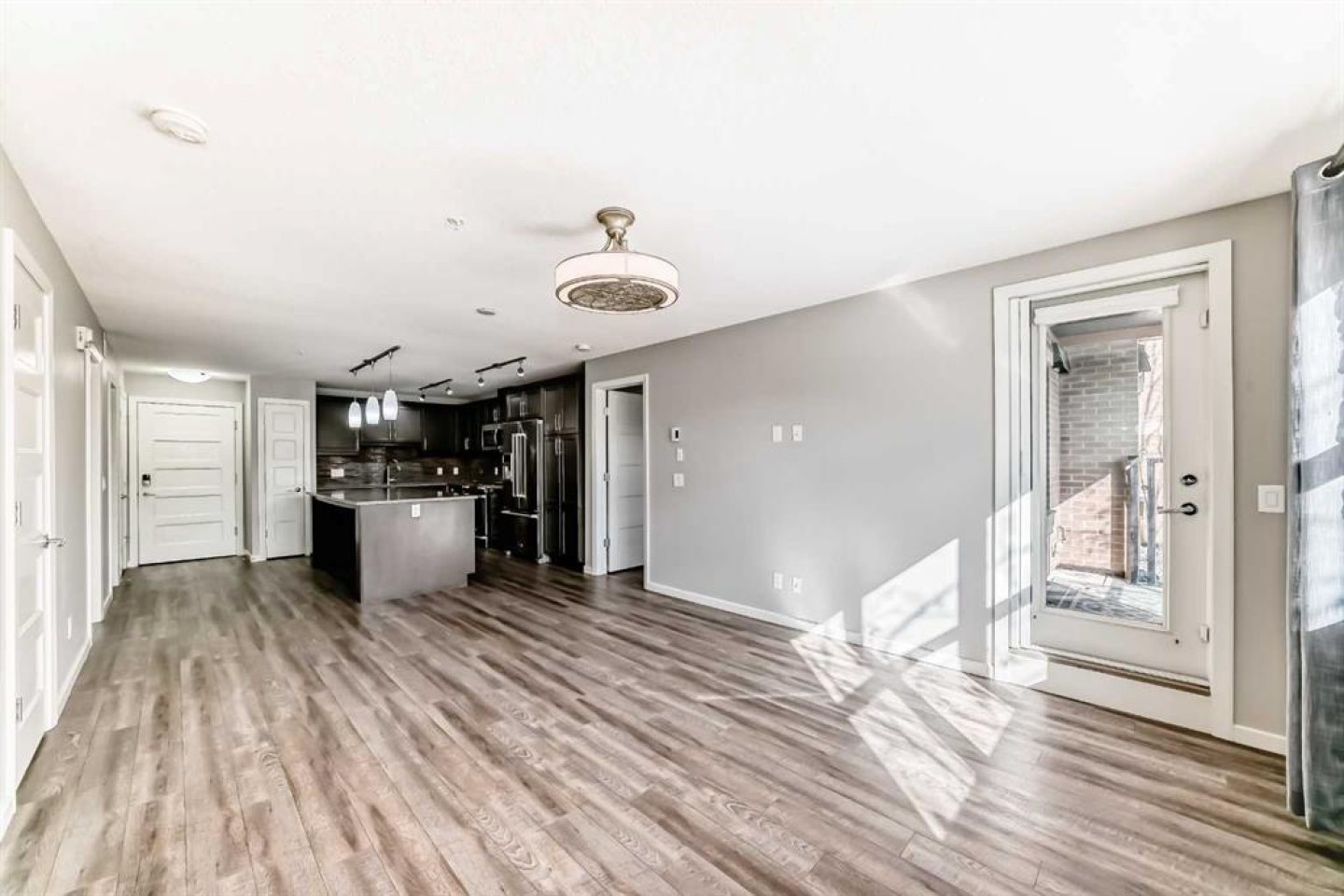 Welcome to The Chateaux at 10 Market Boulevard – Airdrie’s premier 55+ condominium community where luxury and convenience meet. This beautifully appointed ground-floor unit offers 2 spacious bedrooms, each featuring walk-in closets with custom organizers, providing exceptional storage. The primary ensuite showcases dual sinks and a walk-in shower, while the main bathroom features a relaxing soaker tub—perfect for unwinding. The thoughtfully designed kitchen and living areas feature quartz countertops, durable vinyl flooring, ample cabinetry, a pantry, and a convenient broom closet. High-end top-down/bottom-up blinds allow natural light to fill the space while maintaining privacy. Step outside to your private ground-floor deck with glass railing and gas BBQ hookup, offering easy access directly into your home. Additional highlights include: • Titled underground parking stall, conveniently located near the elevator entrance • Storage unit on the wall of this parking spot that you can lock up • Large walk-in closets with built-in organizers • Ample visitor parking Residents of The Chateaux enjoy exceptional amenities including a beautifully landscaped courtyard with a gas fireplace, a bookable amenity room for private gatherings, and a secure workshop located in the underground parkade. Ideally situated close to shopping, banking, restaurants, and medical offices, this home offers comfort, convenience, and community living. Simply book your showing and discover the lifestyle waiting for you at The Chateaux.