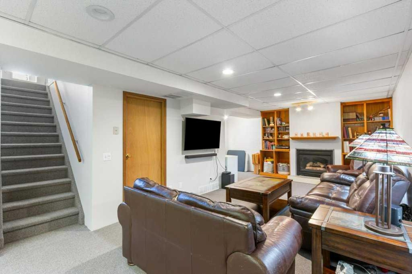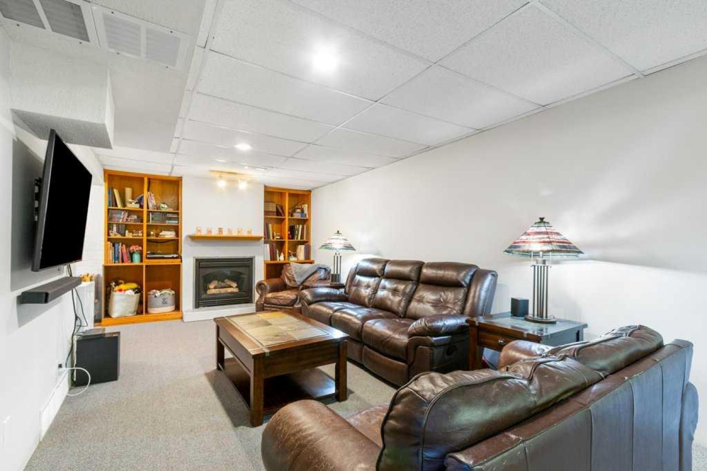Welcome to this fully finished BUNGALOW located on a mature street in Carstairs. Offering 4 bedrooms (3 up and 1 down) and 2.5 bathrooms. You are greeting by a spacious living room that is filled with natural light, which flows effortlessly to the dining area open to the U-Shaped kitchen with CORNER PANTRY, STAINLESS STEEL appliances, and desk for added convenience and your weekly meal planning. The Primary suite is complete with a 2-piece ENSUITE and the added convenience of MAIN FLOOR LAUNDRY. There are two other generous sized bedrooms, with IKEA built-in Wardrobe systems that includes drawers. And, 4-piece bathroom on this floor makes one-level living easy. The basement offers a LARGE REC/FAMILY SPACE complete with a wet bar area, GAS FIREPLACE with flanking shelves, and a 3-piece bathroom. A massive bedroom / office with double doors completes this floor. Several rooms have seen FRESH PAINT & the Furnace & Hot Water Tank have both been replaced in the last 10 years. Outside in the SOUTH FACING BACKYARD you will find a two-tiered deck, raised garden beds, MATURE TREES/SHRUBS and loads of space to enjoy the outdoors. Features a 24x24 DOUBLE DETACHED HEATED GARAGE with RV parking potential (2 gates: 1 at the front & 1 at the back off the alley). This property is situated in an excellent location close to schools, shopping, parks & recreation. Do not miss your opportunity to own this great property located on a sought after street in this great community. Engineers Report is available upon request.