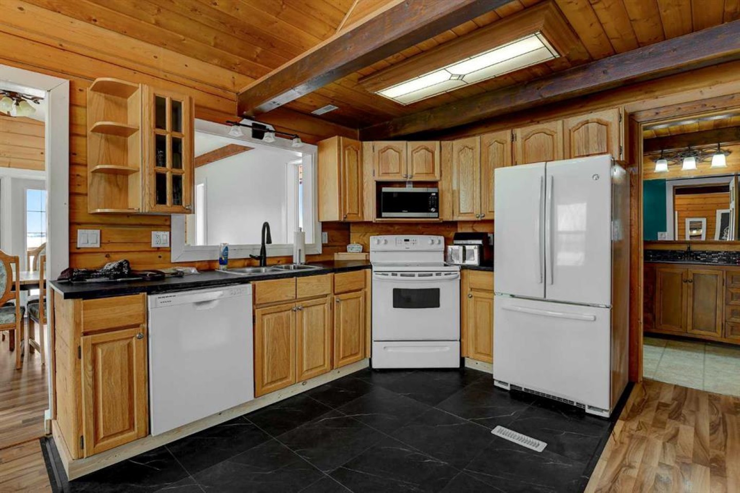 Have you been searching for your dream acreage? This beautifully crafted log home on a concrete foundation is CR-5 zoned and set on 10.08 acres just east of Grande Prairie, offering incredible flexibility and the ultimate outdoor lifestyle. Located just steps from the Smoky River and surrounded by crown land, this property is a rare opportunity for those who value space, privacy, and year-round adventure. From the moment you arrive, the full-length covered front porch invites you to picture slow mornings with coffee and evenings watching the kids play. Inside, you’ll appreciate the warmth and rustic charm throughout, with a functional main floor featuring a kitchen, living and dining area, bedroom, bathroom, and a cozy wood stove perfect for winter nights. Off the dining area, step onto the massive back deck designed for BBQs, entertaining, and soaking in long summer evenings. Upstairs offers a picture-perfect loft that works beautifully as a bedroom or additional living space, while the fully developed basement includes two more bedrooms, a bathroom, storage, and a family room. The home is finished with a durable metal roof, offering long-term peace of mind and minimal maintenance so you can focus on enjoying acreage living rather than worrying about upkeep. The property also includes a shed, lean-to, and is fenced while being set up for horses, making it ideal for hobby farming or equestrian enthusiasts. Only 10 minutes from the Teepee indoor arena! Acreages in this location with this level of charm and zoning flexibility rarely come available—book your showing today.