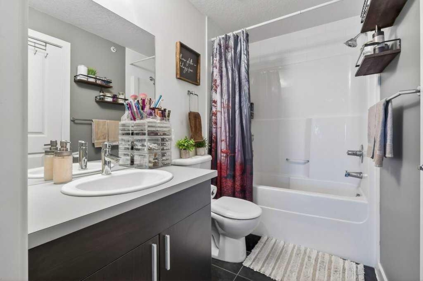 Welcome to Canvas at Millrise. This top-floor, courtyard-facing 1 bedroom, 1 bathroom unit offers over 600 sq ft of well-designed living space with 9-foot ceilings and a quiet setting away from the street. Ideally located close to the elevator with direct access to nearby pathways leading to shopping and restaurants. The functional layout features a welcoming entry with large front closet, a modern kitchen with an island topped with stone countertops, stainless steel appliances, and a built-in desk area perfect for working from home. The living room opens to a private balcony with a BBQ gas line overlooking the courtyard. The spacious bedroom includes a walk-through closet and 4-piece cheater ensuite accessible from both the bedroom and main living area. In-suite laundry adds convenience. This unit includes titled underground parking and an assigned storage locker. The well-managed, pet-friendly complex offers a fitness centre, recreation room, media room, bike storage, and visitor parking. Condo fees include heat and electricity. Steps to Millrise Plaza with Sobeys, Shoppers Drug Mart, Kinjo, Rockwell, and more, plus quick access to the C-Train and Macleod Trail, this is an excellent opportunity for first-time buyers, downsizers, or investors.