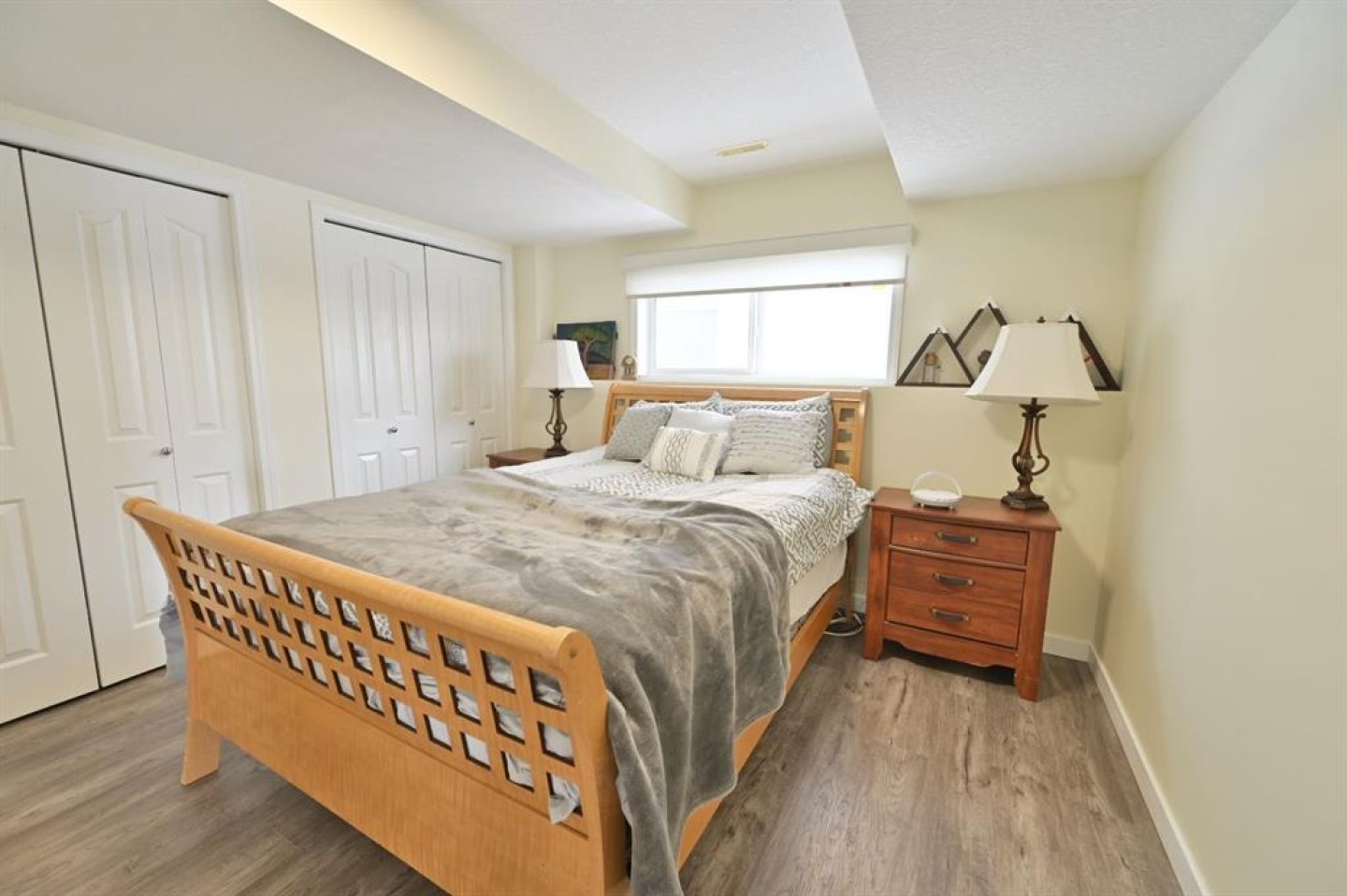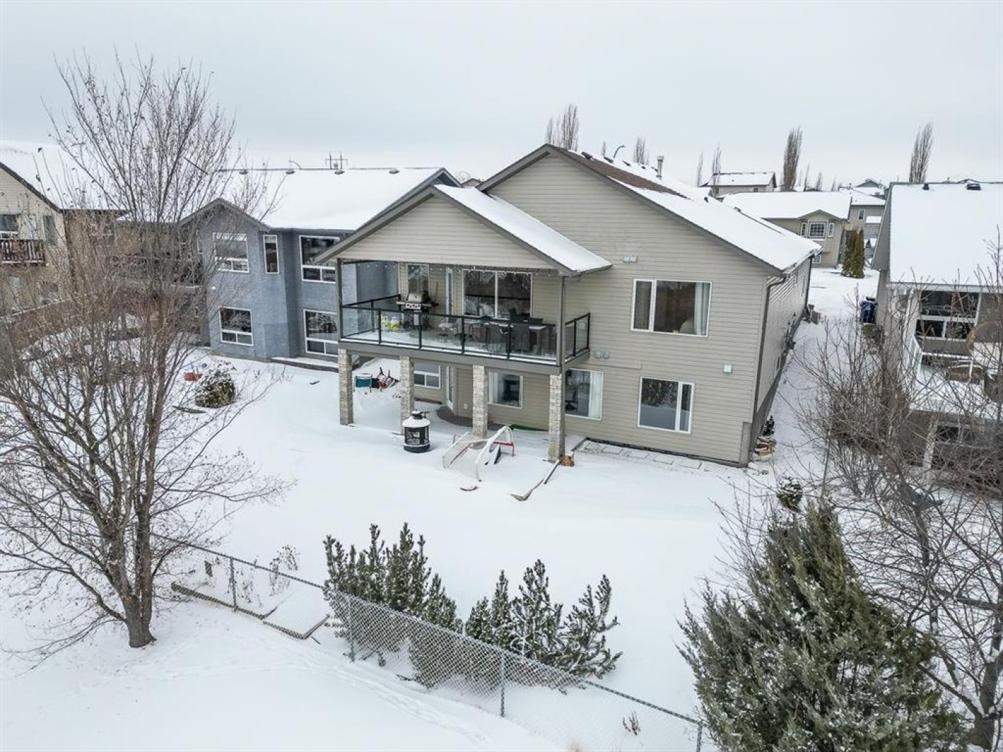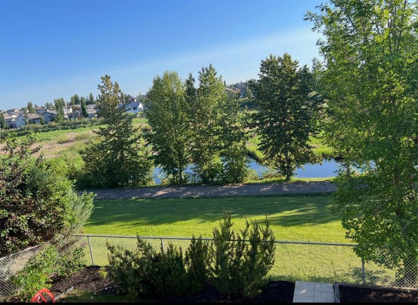 MASSIVE WALKOUT BUNGALOW BACKING ONTO A POND! If size matters, then make sure you add this home to your list! A bright foyer welcomes you into the home and brings you past the front-facing office and into the spacious main living area. A corner fireplace welcomes you into the space, and a large centre island accents the well-appointed kitchen. Patio doors welcome you to a breathtaking view overlooking paths and a natural pond! Main floor laundry leads you to your front attached double garage, while the Primary Bedroom offers a breathtaking view of the back yard and natural landscape. In the primary you will also find a walk-in closet, large ensuite with separate shower and corner tub, sink and makeup area. The massive walkout basement features a rec area with two-sided fireplace separating the full kitchenette. Two more bedrooms plus a full bath, and another huge storage area, complete this space. Your private backyard offers full landscaping and unencumbered views of walking trail and a natural pond - perfect for bird watching and enjoying the wildlife it attracts! Blackfalds is a great family community, with all amenities nearby including parks, playgrounds, skatepark as well as a short distance to the Community Bike Park and the Abbey Centre!