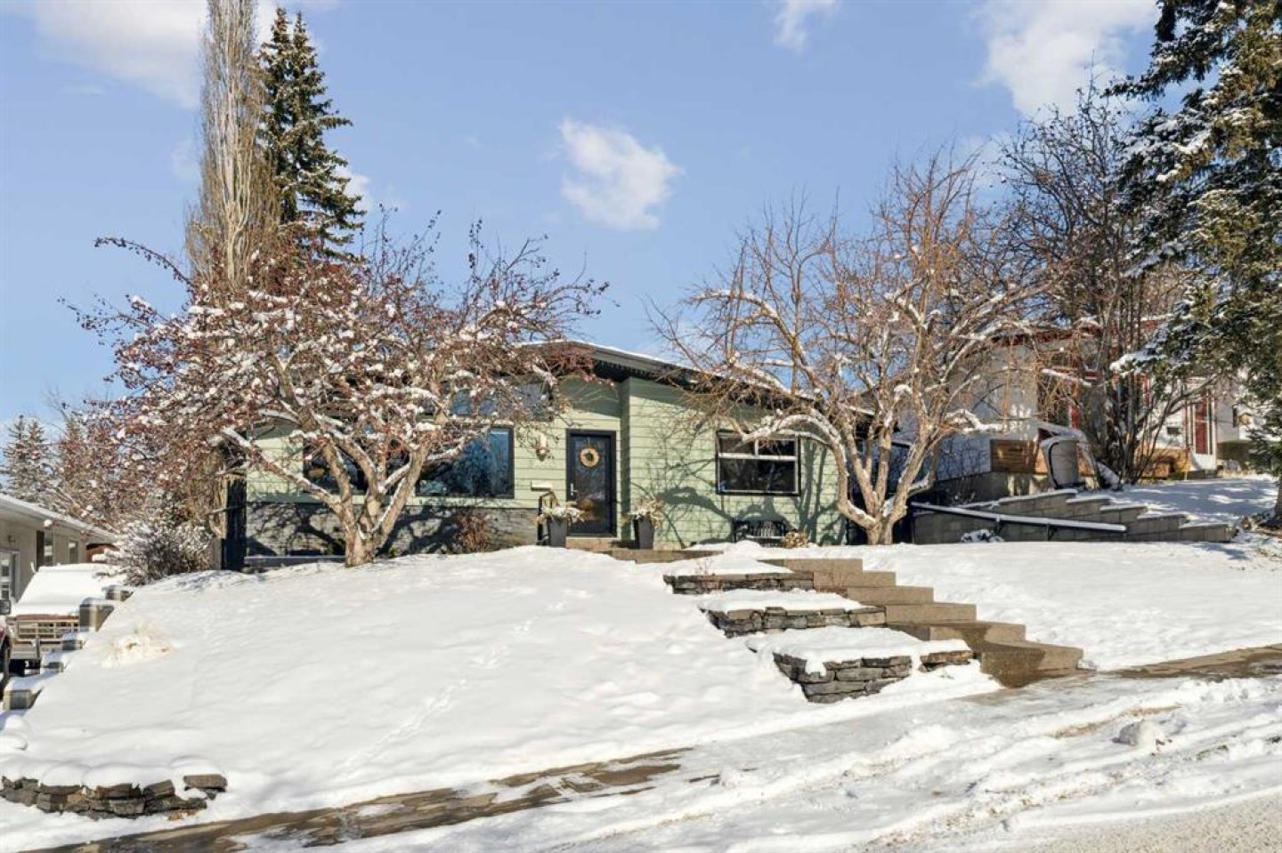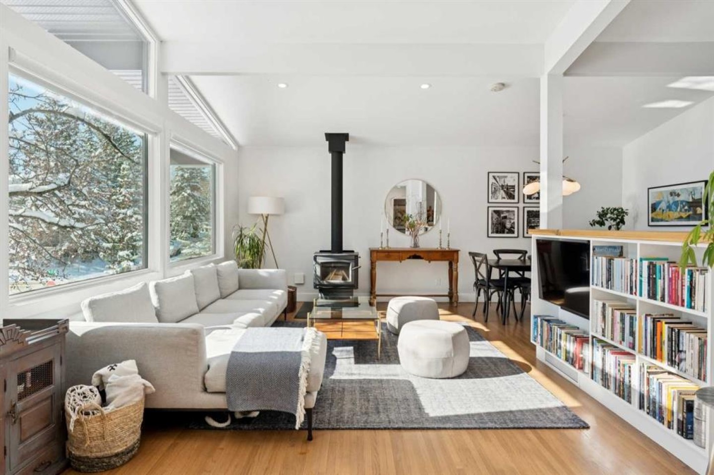 Nestled in sought-after Charleswood, this fully renovated South-facing four-bedroom bungalow offers exceptional walkability for families, professionals, or downsizers. Completed in 2021 by Harrison Pierce Homes, the comprehensive renovation blends quality craftsmanship with thoughtful, modern design. The bright layout features a vaulted ceiling in the living room and kitchen, 4 bedrooms, 2 full bathrooms, and a powder room, offering flexibility for growing families, guests, or a dedicated home office. The bungalow design provides easy, functional living with generous space across both levels. Upgrades include triple-pane windows, window dressings, added insulation for enhanced energy efficiency, a new hot water tank, water softener, new kitchen appliances and cabinets, oak hardwood flooring on the main level, and luxury vinyl plank downstairs. Layered lighting includes extensive pot-lights throughout and pendant lights. From the street, the house boasts excellent curb appeal, with wide composite stairs leading to the entrance, framed by two beautiful mature trees. Outside is a well-sized, landscaped backyard offering plenty of room for children, pets, or entertaining, complete with a spacious deck. The single detached garage provides secure parking and additional storage. This charming home is close to Alberta’s top-ranked public schools, including Banff Trail Elementary School, Branton Middle School, and William Aberhart High School (French immersion), Collingwood Elementary School, Senator Patrick Burns Middle School (Spanish bilingual) and the University of Calgary. Just steps from the C-Train Station, Brentwood Village, and Triwood Community Association, you’ll enjoy seamless access to transit, recreation, and amenities. Outdoor enthusiasts will love being within walking distance to Confederation Park and Nose Hill Park, offering year-round recreation just minutes from your door. A rare opportunity to own an immaculate, move-in-ready home in one of Calgary’s most established and connected inner-city communities.