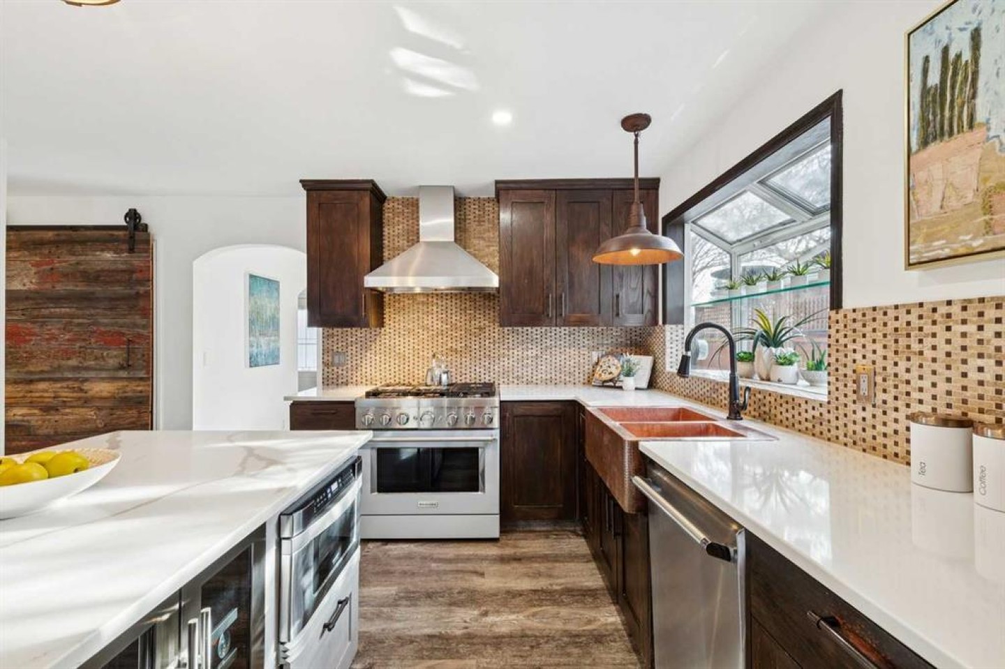 MIDNAPORE LAKE ACCESS | 4 BEDROOMS | 2 PRIMARY SUITES | STEPS TO LAKE | Looking for a character home with something truly special? Just ONE BLOCK FROM MIDNAPORE LAKE, this unique property blends charm, flexibility, and lifestyle in one of Calgary’s most loved lake communities. The living room is filled with NATURAL LIGHT from large windows, creating a warm and welcoming space to relax. The dining area flows seamlessly from the kitchen and features FRENCH DOORS that open directly to the backyard, making indoor-outdoor entertaining easy. The updated kitchen features STONE COUNTERTOPS, a 6-BURNER GAS RANGE, built-in microwave, beverage cooler, COPPER SINK, and custom cabinetry that makes storage easy and accessible. The PANTRY showcases one of the home’s most distinctive features — a repurposed barn door crafted from wood from the historic Burns & Co. grain elevator near High River. The family room sits just off the kitchen and features a classic BRICK GAS FIREPLACE, creating a comfortable space for everyone. The main level also offers a 2nd PRIMARY BEDROOM WITH ITS OWN ENSUITE, providing flexibility for guests, multi-generational living, or a convenient main-floor retreat. An additional bedroom offers an adjoining FLEX ROOM, creating a versatile kids’ space for any age, that’s also perfect as a home office. Upstairs, the ENTIRE SECOND LEVEL IS A PRIVATE PRIMARY RETREAT. This spacious escape features a large bedroom, WALK-IN CLOSET, and 4-PIECE ENSUITE, along with its own private exterior entrance, making it ideal for guests, extended family, or a quiet personal sanctuary. The FULLY DEVELOPED BASEMENT expands the living space with the 4th BEDROOM, a large recreation room, gym/workshop area, laundry and storage — plus a SAUNA. Step outside and discover a BACKYARD DESIGNED FOR ENTERTAINING. Enjoy the large deck with pergola, built-in BBQ, and multiple patio areas, creating a private outdoor space perfect for summer gatherings or quiet evenings. OVERSIZED DOUBLE DETACHED GARAGE . Living in MIDNAPORE means enjoying YEAR-ROUND LAKE ACCESS with swimming, paddleboarding, skating, fishing, tennis courts, and community events — all just minutes from your door. If you’ve been searching for a HOME WITH CHARACTER, SPACE, AND LAKE COMMUNITY LIVING, this Midnapore property offers something truly unique.