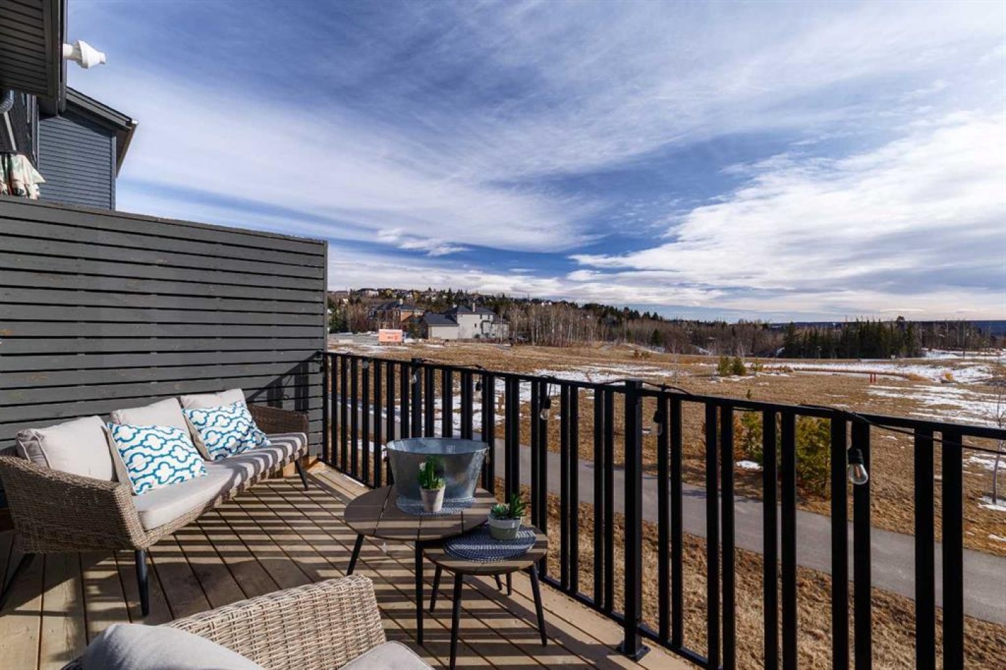 SOUTH FACING WITH STUNNING VIEWS | PARK & POND BACKDROP | MOUNTAIN VIEWS | CENTRAL A/C | 2 BED / 2.5 BATH / 1429 SQ FT | DOUBLE ATTACHED TANDEM GARAGE + DRIVEWAY PARKING | LOW CONDO FEES Welcome to this beautifully upgraded and move-in ready townhome in the highly sought-after community of Springbank Hill. Perfectly positioned with a south-facing exposure overlooking the park, pond, and distant mountain views, this home offers a rare combination of privacy, scenery, and natural light. Lovingly maintained by the original owners, this home was thoughtfully upgraded throughout during construction and features luxury vinyl plank flooring throughout the entire home along with numerous high-quality finishes that elevate both style and functionality. The main floor showcases a bright and airy open-concept design, where large windows capture incredible natural light and frame the stunning views beyond. At the center of the home is the beautifully appointed kitchen, featuring quartz countertops, soft-close cabinetry, stainless steel appliances, a stylish backsplash, and a large island with breakfast bar, making it the perfect space for cooking, gathering, and entertaining. Just off the kitchen, step onto the south-facing balcony, where you can enjoy peaceful views over the park and pond with the mountains visible in the distance. Whether it's morning coffee, summer barbecues, or relaxing at sunset, this outdoor space truly extends the living experience. Flowing seamlessly from the kitchen, the dining area offers a welcoming space to host family dinners or entertain friends. The adjoining living room provides a comfortable setting to unwind, filled with natural light and designed for both relaxation and conversation. A pantry and convenient powder room are thoughtfully tucked away on the main floor, adding everyday functionality while maintaining the open layout. Upstairs, you'll find two spacious primary bedrooms, each designed for comfort and privacy. The first features dual closets and a private 4-piece ensuite with walk-in shower, while the second offers a walk-in closet and its own 4-piece ensuite with tub/shower combination, making it ideal for guests, roommates, or a home office setup. The laundry area is conveniently located on the upper level, just steps from both bedrooms. The lower level welcomes you with a bright and spacious foyer, providing direct access to the double attached tandem garage. The driveway also allows parking for a third vehicle, offering additional convenience for guests or multi-vehicle households. Located close to top-rated public and private schools, Westside Recreation Centre, 69th Street LRT, shopping, restaurants, and beautiful walking pathways, this home offers an exceptional lifestyle in one of Calgary’s most desirable southwest communities. With quick access to the mountains, weekend escapes are always within reach.