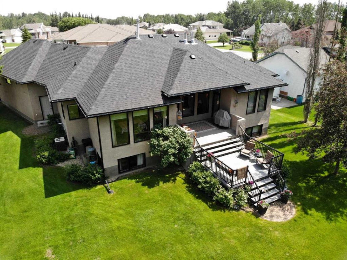 Imagine a life where the golf course is your backyard neighbor and the city is just minutes away in this stunning, freshly updated raised bungalow within the gated Dunes on 17 community. Built for those who love the outdoors without sacrificing luxury, this executive home features a chef’s kitchen with a Reverse Osmosis water system, dual pantries, and premium appliances purchased in late 2024. High-end comfort is found throughout with a central vacuum system and cozy in-floor heating integrated into the kitchen, the primary ensuite, and the entire lower level. The primary suite serves as a true sanctuary with one of the home's three gas fireplaces and direct access to a deck already equipped with a natural gas line for effortless entertaining. The basement offers a four-piece bathroom with a jetted tub, a dedicated home gym, and two large bedrooms, while a brand-new, fully-paid solar system installed in 2024 ensures long-term efficiency. The exterior is equally impressive, boasting a full irrigation system, an invisible dog fence, an insulated shed, and a triple heated garage. Every detail, from the exposed aggregate driveway to the serene, tree-lined backyard with a private firepit, exudes quality—don’t just read about this lifestyle, experience it in person before it’s gone!