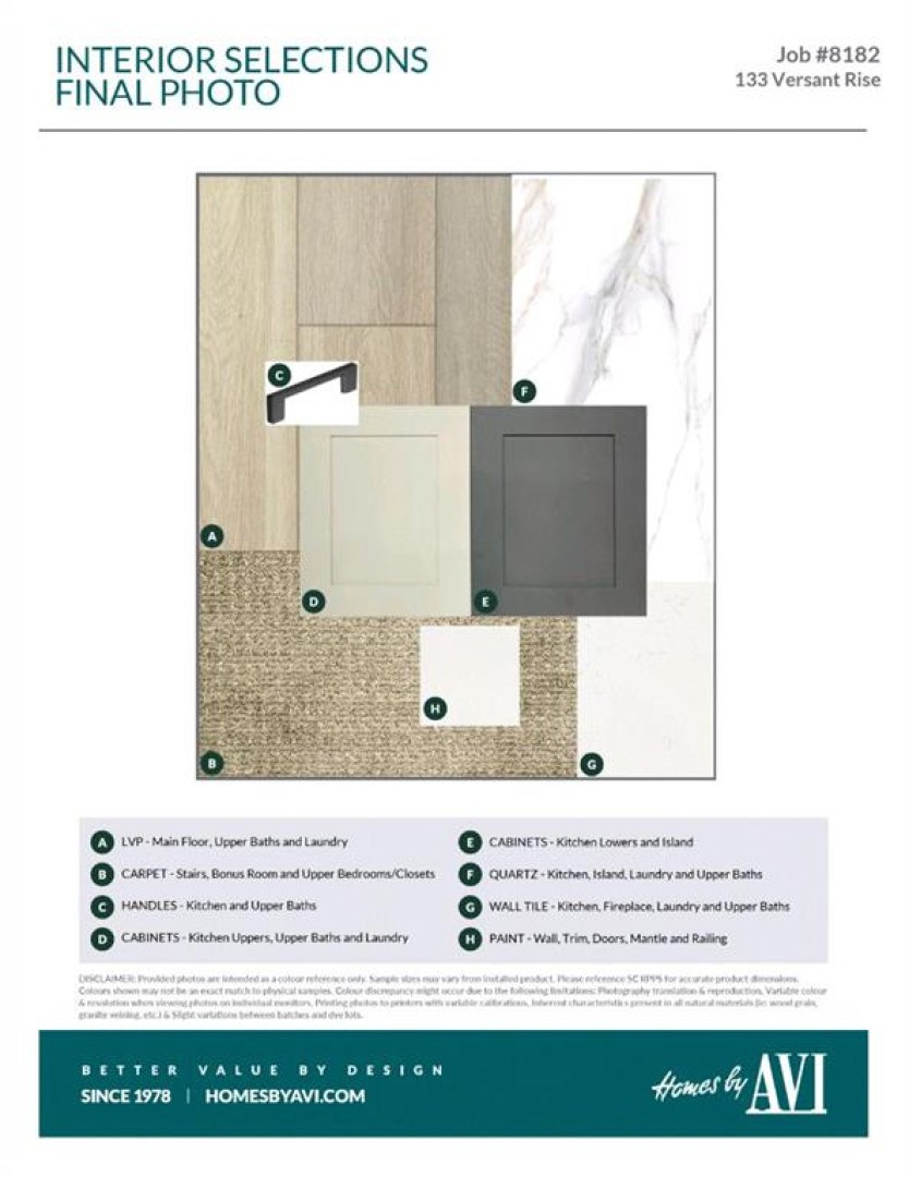 YOU’VE DONE ENOUGH MAKING-DO. IT’S TIME FOR A HOME THAT FINALLY MEETS YOU AT YOUR LEVEL. This Gabriel model from Homes by Avi was built for people who are done compromising—on storage, flow, and the way a home should support real life. The main floor begins with a mudroom that connects directly to a WALK-THROUGH PANTRY, because groceries shouldn’t require a logistics plan. The kitchen delivers: 50" UPPERS, a chimney hoodfan, a BUILT-IN WALL OVEN, a GAS COOKTOP with griddle, and a flush island with a BREAKFAST BAR that actually seats people. QUARTZ COUNTERTOPS with a soft white marble look and subtle veining pair with creamy light wall tile and matte-black hardware for a finish that feels elevated without trying too hard. The dining area is built for loud holidays and full tables, while the great room anchors the space with a FIREPLACE FRAMED IN TILE WITH A CLASSIC MANTLE and full-height presence. With QUICK POSSESSION available, this could be the year you stop squeezing celebrations into a home that’s outgrown you. Upstairs, a CENTRAL BONUS ROOM creates breathing room between the primary and secondary bedrooms. Both secondary bedrooms include walk-in closets—a small detail that makes everyday life easier. The primary offers a generous WALK-IN CLOSET and a five-piece ensuite with a SOAKER TUB and TILE-AND-GLASS SHOWER. There’s also a true UPSTAIRS OFFICE with a door you can close, plus a WALK-IN LAUNDRY ROOM with space to sort, fold, and keep life from spilling into the hallway. Downstairs, the WALKOUT BASEMENT gives you room to grow, with a LOWER-LEVEL ENTRY stepping directly out to the backyard beneath the raised deck above. And that RAISED DECK? It extends your dining space outward and lifts you high enough for BETTER VIEWS and clear sightlines across the yard—perfect for summer evenings, morning coffee, or keeping an eye on what’s happening below. Located in Vermilion Hill at Alpine Park, this community is shaped by natural elevation, pathways, and long south and west views. It’s connected, forward-thinking, and designed to grow beautifully over time. If this already feels like a better fit than where you are now, COME SEE IT IN PERSON. • PLEASE NOTE: Photos are of a finished Showhome of the same model – fit and finish may differ on finished spec home. Interior selections and floorplans shown in photos.