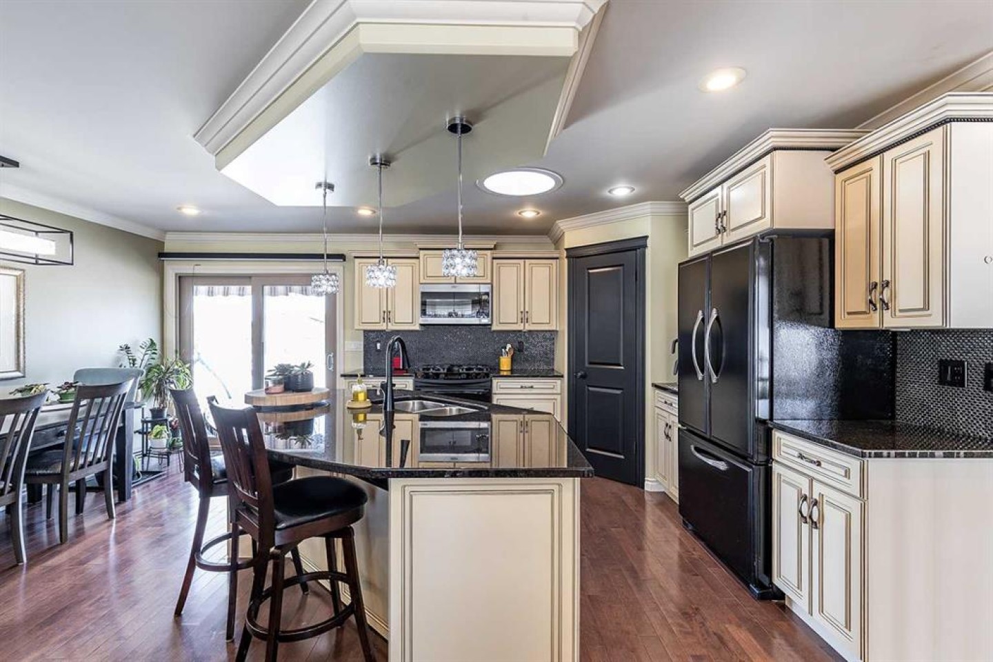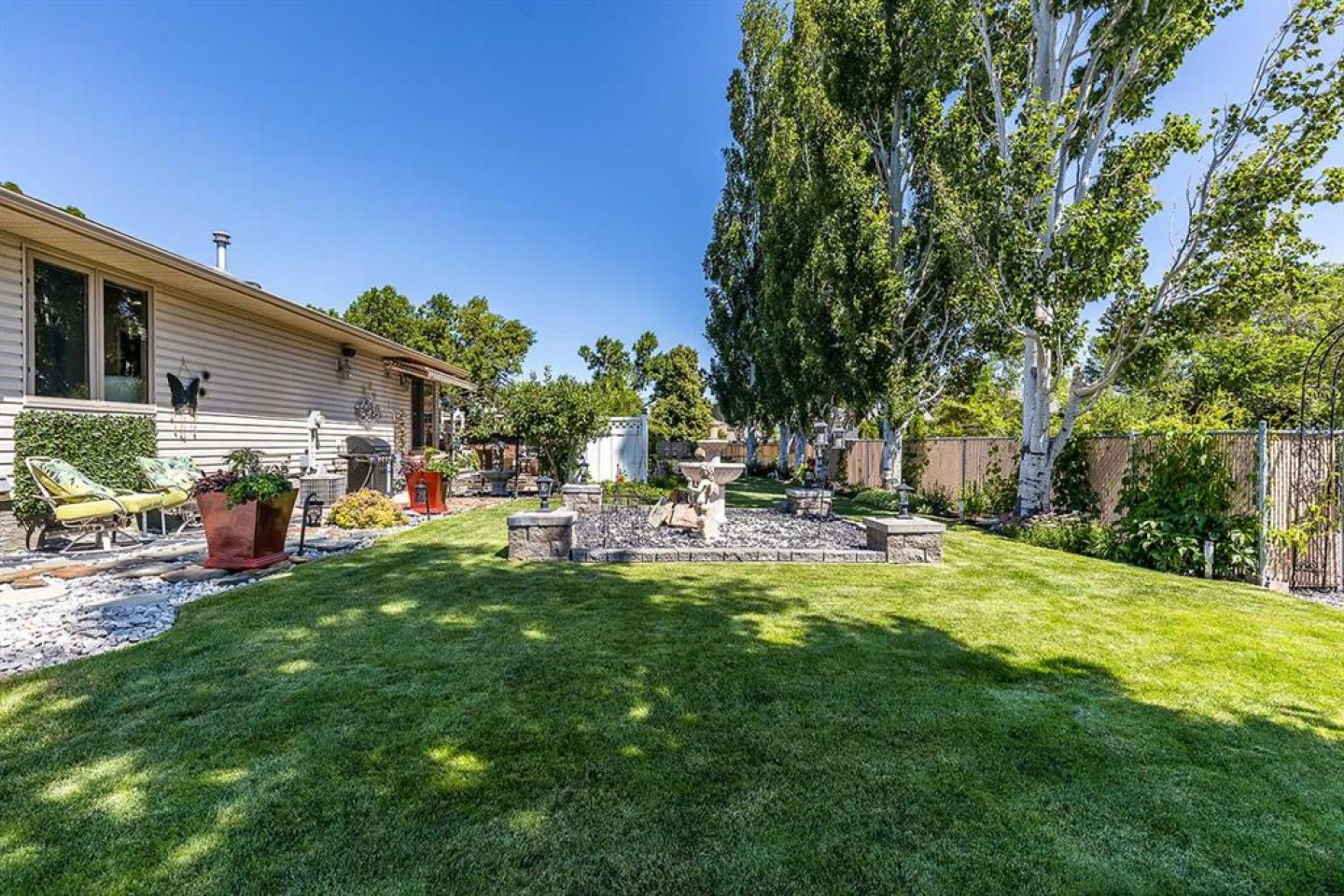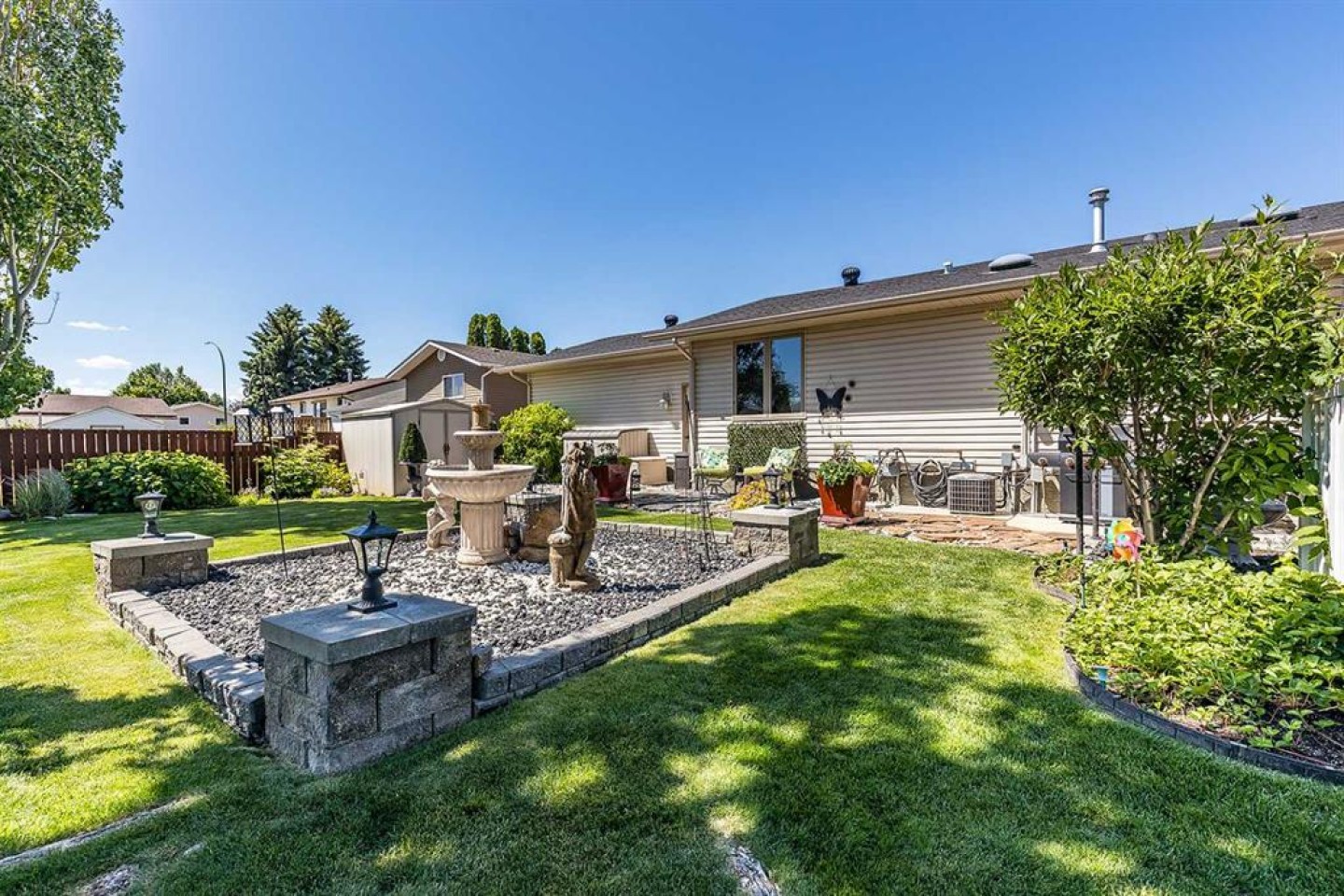Some homes are beautiful inside. This one is beautiful inside and out. Beautifully Updated Ross Glen Bungalow with an Incredible Backyard Retreat. Welcome to this 1,191 sq. ft. bungalow tucked into a quiet court in sought-after Ross Glen, just steps from walking paths and green space. With charming curb appeal and mature landscaping, this home has been thoughtfully upgraded and meticulously maintained. Inside, rich hardwood flooring and abundant natural light create a warm and inviting atmosphere. The well-designed main floor offers two comfortable living areas (or a traditional dining room), providing flexibility for both everyday living and effortless entertaining. The kitchen is both stylish and functional, featuring warm cream cabinetry, granite countertops, a central island with seating, and a corner pantry for added storage. The adjoining dining area offers direct access through patio doors to the backyard — creating seamless indoor-outdoor flow. The primary bedroom serves as a relaxing retreat, complete with a walk-in closet and a beautifully appointed ensuite showcasing a soaker tub, separate walk-in shower, and dual sinks. A convenient two-piece powder room connects to both the ensuite and hallway, offering practical access for guests. The fully finished lower level extends your living space with a massive recreation room ideal for movie nights or hosting family and friends, a cozy office nook, a spacious den, a second bedroom (window does not meet egress), a full four-piece bathroom, and a functional laundry area. Step outside and you’ll discover what truly sets this property apart — an expansive, private backyard oasis. Mature trees, lush gardens, tranquil fountains, and generous entertaining space create a peaceful setting that feels like your own retreat. An attached double garage completes the package, offering convenience and additional storage. This exceptional Ross Glen home blends comfort, thoughtful upgrades, and an incredible outdoor lifestyle — all in one of the city’s most desirable neighbourhoods.
