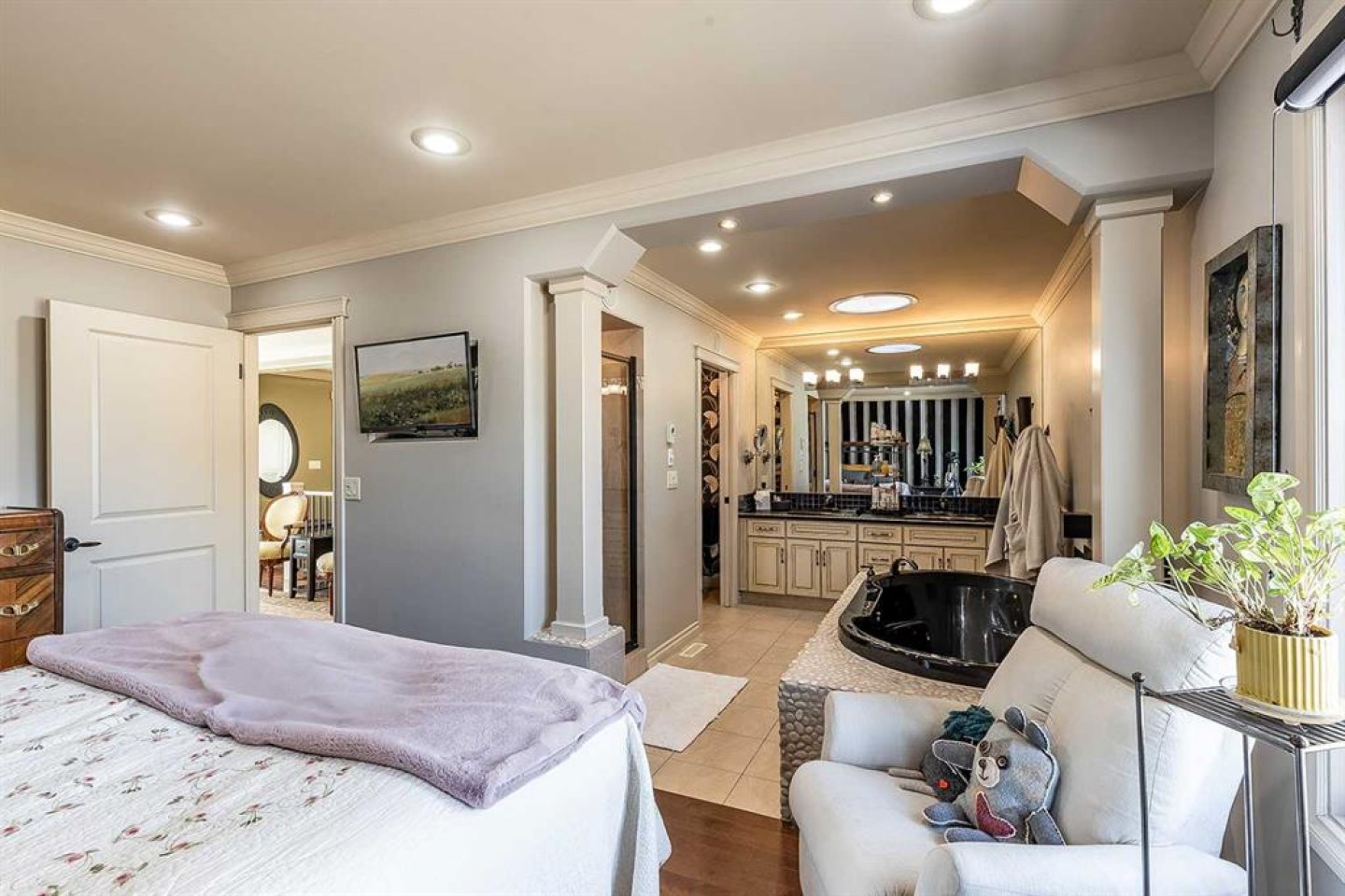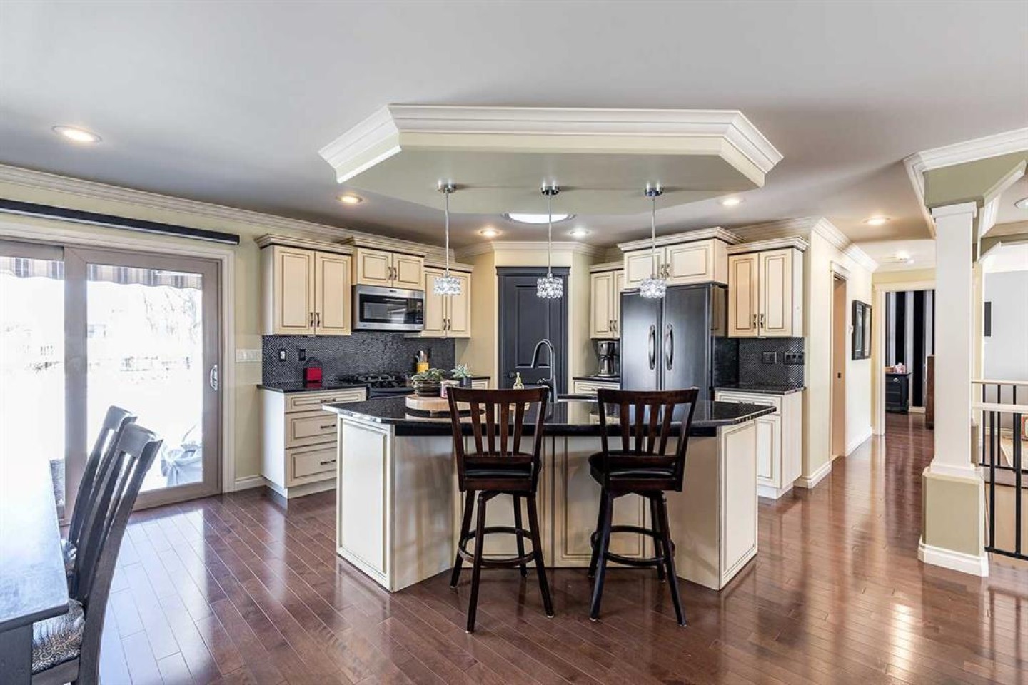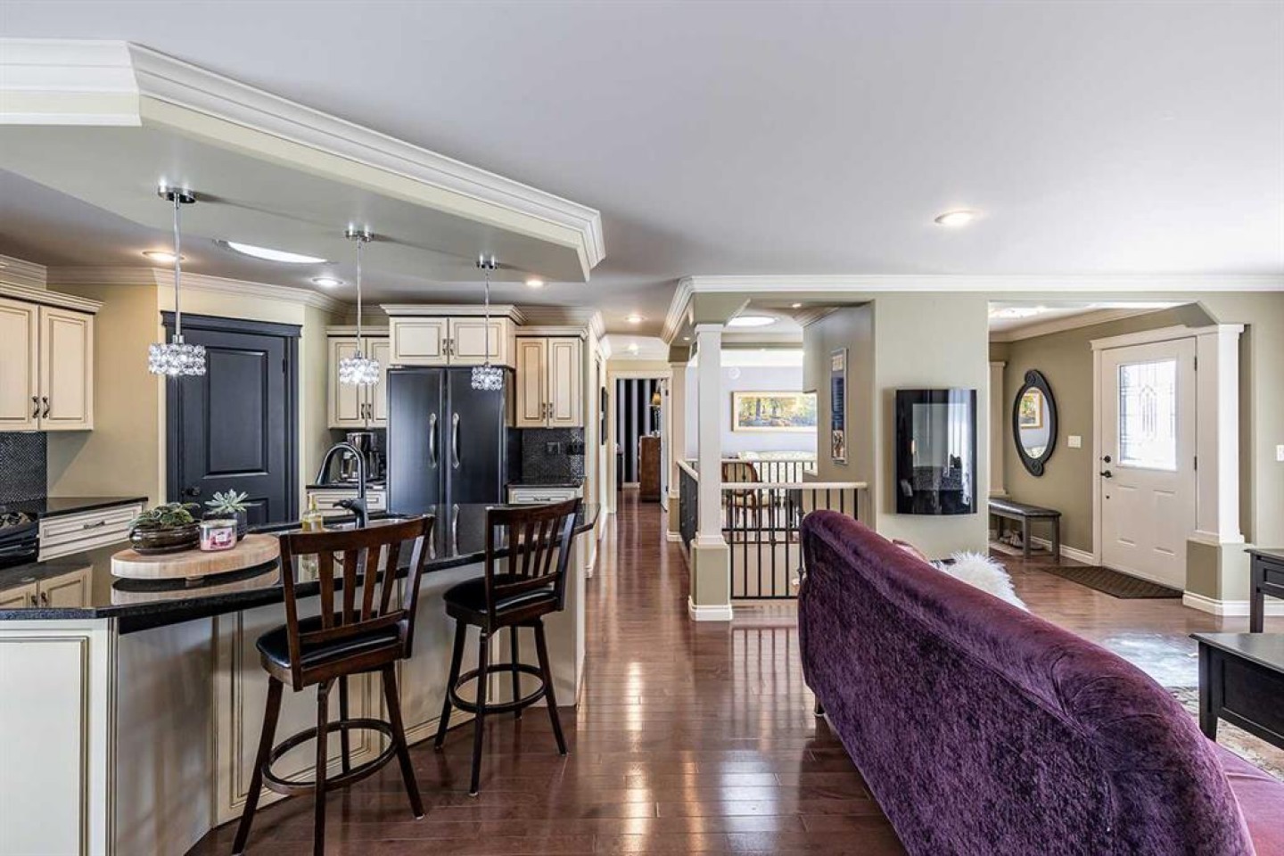 Some homes are beautiful inside. This one is beautiful inside and out. Beautifully Updated Ross Glen Bungalow with an Incredible Backyard Retreat. Welcome to this 1,191 sq. ft. bungalow tucked into a quiet court in sought-after Ross Glen, just steps from walking paths and green space. With charming curb appeal and mature landscaping, this home has been thoughtfully upgraded and meticulously maintained. Inside, rich hardwood flooring and abundant natural light create a warm and inviting atmosphere. The well-designed main floor offers two comfortable living areas (or a traditional dining room), providing flexibility for both everyday living and effortless entertaining. The kitchen is both stylish and functional, featuring warm cream cabinetry, granite countertops, a central island with seating, and a corner pantry for added storage. The adjoining dining area offers direct access through patio doors to the backyard — creating seamless indoor-outdoor flow. The primary bedroom serves as a relaxing retreat, complete with a walk-in closet and a beautifully appointed ensuite showcasing a soaker tub, separate walk-in shower, and dual sinks. A convenient two-piece powder room connects to both the ensuite and hallway, offering practical access for guests. The fully finished lower level extends your living space with a massive recreation room ideal for movie nights or hosting family and friends, a cozy office nook, a spacious den, a second bedroom (window does not meet egress), a full four-piece bathroom, and a functional laundry area. Step outside and you’ll discover what truly sets this property apart — an expansive, private backyard oasis. Mature trees, lush gardens, tranquil fountains, and generous entertaining space create a peaceful setting that feels like your own retreat. An attached double garage completes the package, offering convenience and additional storage. This exceptional Ross Glen home blends comfort, thoughtful upgrades, and an incredible outdoor lifestyle — all in one of the city’s most desirable neighbourhoods.