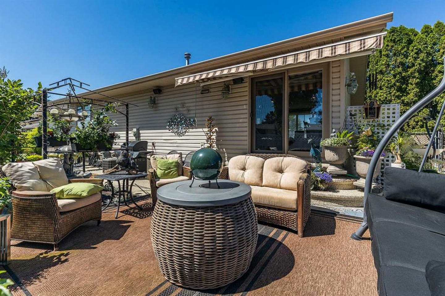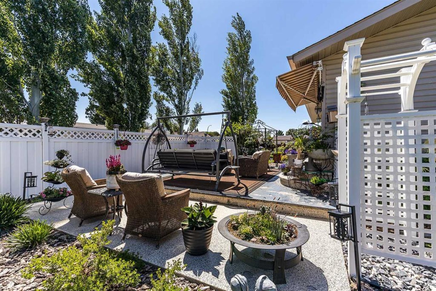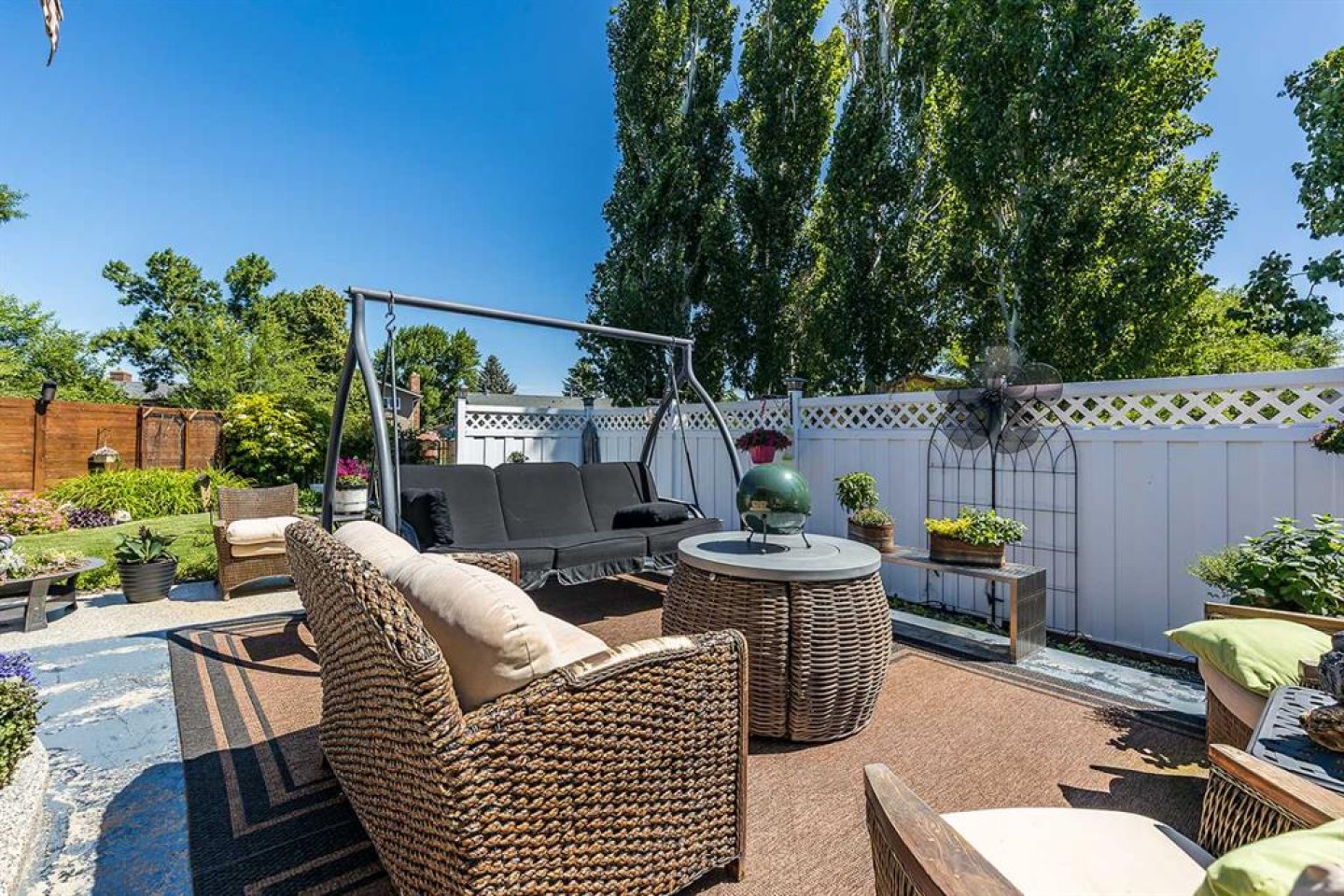 Refrigerator, Stove, Microwave, Dishwasher, Microwave Hood Fan, Central Air Conditoner, Washer, Dryer, Garage Control(s), Central Vac + Attachments, Underground Sprinklers, Counter Bar Stools, Kitchen Table + Chairs, Fire Feature, Mirror in Powder Room, White Recliner in Master, Storage Shelves in Garage, Tv in Master ( as is, seller never used) Desk and Filing cabinet, Ofiice Chair. Yard Stuff- Swing, Couch, Chairs, Fire Table, Two side tables, Pergola, Planter, Shed, Red Planters, Water Feature, Bird bath, Garden box, Bird bath and Trellis