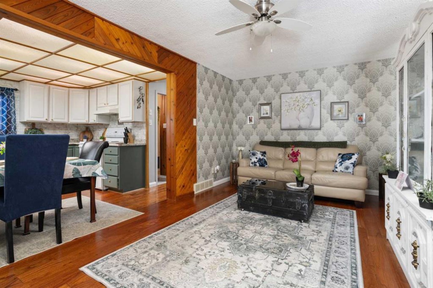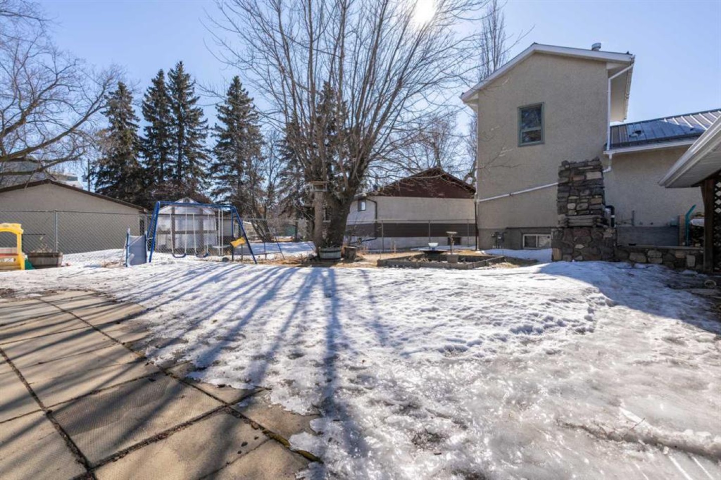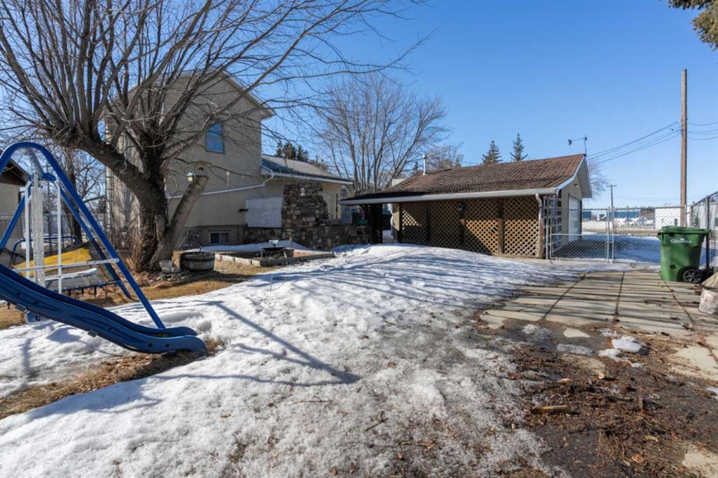 Charming 1.5 storey home offering 1,063 square feet of comfortable living space. A great opportunity for first-time buyers, investors, or anyone looking for a home with character. The bright kitchen opens to the living room, creating a warm and inviting main living area. The main floor features a primary bedroom with a walk-in closet. The 3 piece bathroom completes the main level. Upstairs you will find a spacious bedroom with its own 2 piece ensuite. The basement adds extra living space with a generous family room, an additional bedroom, a 4 piece bathroom, and laundry. Step outside to a private fenced yard highlighted by a stunning stone fireplace, perfect for relaxing or entertaining. The property also offers RV parking, and a double garage with carport. This one is worth checking out! (furnace 2023, hwt ~2020)