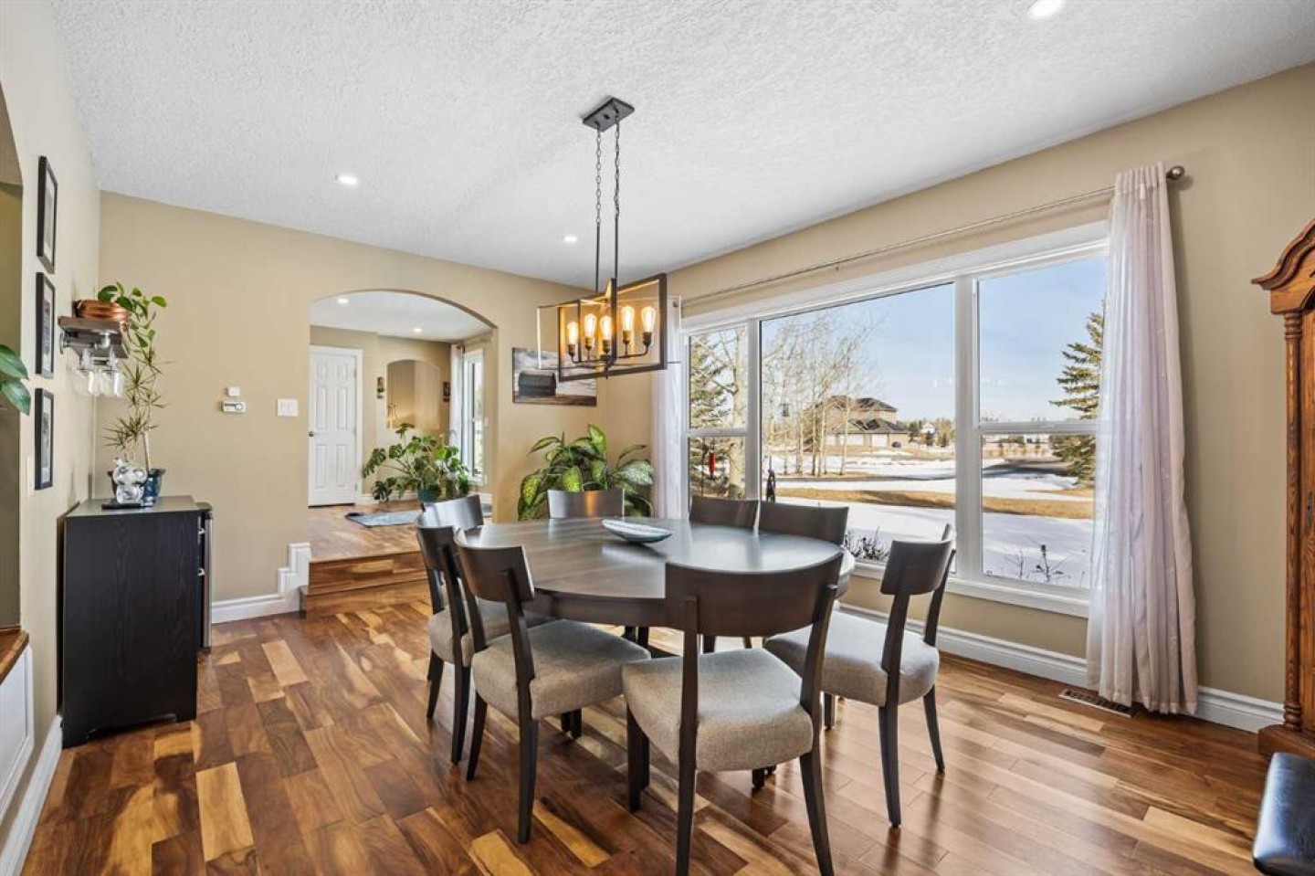 **OPEN HOUSE - MAR 7 & 8 (12-2PM)** Tucked among mature spruce trees in the quiet enclave of Crocus Ridge, this fully renovated bungalow captures beautiful Rocky Mountain views and the peaceful setting that makes Springbank so desirable. With extensive updates throughout and a thoughtfully designed main floor layout, this is a property that combines comfort, privacy, and the lifestyle that acreage buyers are searching for. Step inside and the renovations are immediately evident. Vaulted ceilings, oversized skylights, and expansive west-facing windows fill the home with natural light while framing the open landscape beyond. The west-side windows also include a 25-year transferable warranty, offering long-term peace of mind. Rich hardwood floors, tile finishes, and granite surfaces throughout create a refined feel, while the impressive gas fireplace—complete with remote control—anchors the main living area. The kitchen is designed for both everyday living and entertaining. Granite countertops, quality appliances, generous prep space, and abundant storage make it ideal for anyone who enjoys cooking. From here, garden doors open to the full-length rounded west-facing deck, offering the perfect spot to take in evening sunsets and unobstructed views across open fields toward the mountains. The deck also features a natural gas BBQ connection and a removable railing section for flexibility and access. The main floor layout is both practical and rare, offering three spacious bedrooms plus a dedicated office area. The primary ensuite has been beautifully updated with a spa-inspired tiled shower and modern finishes. Throughout the home, closet organizers have been installed, and automated blinds in the main living space add both comfort and convenience. Outside, the property continues to impress. The wide, illuminated deck staircase leads down to a large fenced yard, complete with an 800 sq. ft. organic garden and a dedicated dog run with artificial turf and direct dog access. Mature landscaping and towering trees provide privacy while still preserving the mountain views. Major upgrades and mechanical improvements provide confidence for years to come, including new shingles (2023), triple-pane west-facing windows (2023), new attic insulation (2023), a new sump pump (2023), central A/C installed in 2022, a newly paved driveway and front walk (2025), and a new heater installed in the garage (2025). The heated gas garage adds year-round comfort, and natural gas has also been run for the stove and outdoor BBQ. The unfinished basement includes rough-ins for future development, giving the next owner flexibility to create additional living space, bedrooms, or a recreation area tailored to their needs. Located in the meticulously maintained community of Crocus Ridge, the home is serviced by the highly regarded Springbank Water Co-op, with Springbank School and Edge School just a short drive away. A renovated bungalow offering mountain views and exceptional privacy.