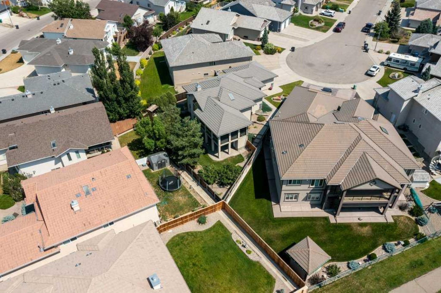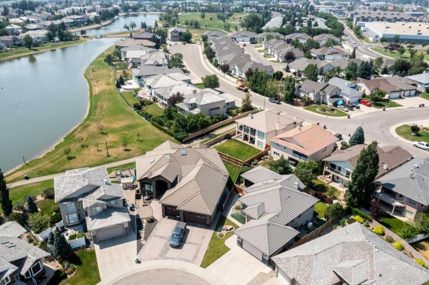 Welcome to this beautifully maintained executive walk-out bungalow, ideally situated in a quiet cul-de-sac in sought-after Fairmont. Offering over 3,100 sq ft of developed living space, this home is designed for true main-floor living. The spacious primary suite, private office, and laundry room are all conveniently located on the main level. The chef-inspired kitchen features double wall ovens, a cooktop, oversized island, skylight, and seamless flow into the vaulted living room with a cozy gas fireplace — perfect for both everyday living and entertaining. The bright walk-out basement adds exceptional space, complete with a large family room, wet bar, second gas fireplace, two additional bedrooms, and a full bathroom. A separate entry provides added flexibility and convenience. Step outside to the wrap-around deck featuring a Suncoast wind/sunscreen system and partial lake views — an ideal space to relax and unwind. Additional highlights include a heated garage, central A/C, cold storate, a generator, reverse osmosis system, and water softener. Located just minutes from Costco, Lethbridge Polytechnic, parks, walking paths, and countless amenities, this is executive bungalow living at its finest.