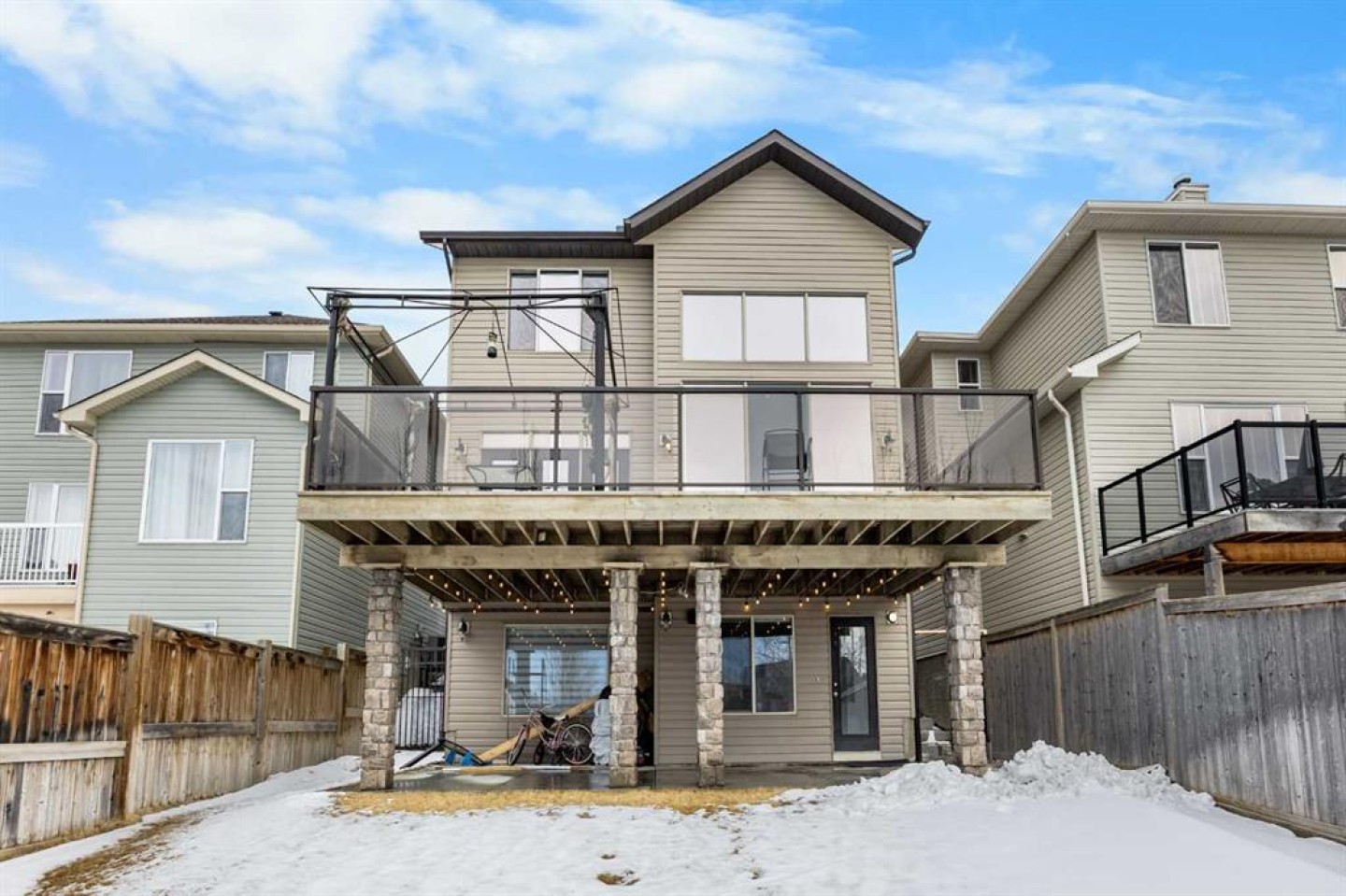 Welcome to this impressive 3-bedroom, 2.5-bath family home in the sought-after community of Panorama Hills, offering 2,225 sqft of above-grade living space plus a 2-bedroom illegal basement suite in Walkout level for excellent rental income potential (3,137 sqft total). Step inside to 9-foot ceilings throughout the main level with gleaming hardwood flooring. Continue to the heart of the home with an open floorplan, where you'll be amazed by the soaring 2-storey Living room with large windows and anchored by a grand oversized gas fireplace. On the other side, the gourmet Kitchen features ceiling-height maple cabinetry, centre island, granite countertops, stainless steel appliances including gas stove, and walk-through pantry. Adjacent is the Dining room leading out to a full-width deck with glass panel railing and gazebo—a perfect place for hosting parties, summer barbecues, or relaxation. A Main floor Den with French doors is perfect to be your home office. On the upper level, a bright Bonus room with vaulted ceiling and plenty of windows provides the perfect space for family gatherings. The spacious Primary suite offers a peaceful retreat with a walk-in closet and 4-piece ensuite bath featuring soaking tub and separate shower. Two additional well-sized bedrooms share a 4-piece bath to complete this level. The illegal basement suite features a functional Kitchen with quartz countertops and stainless steel appliances, open Living area, 2 bedrooms each with walk-in closets, a 4-piece bath, and in-suite laundry. From the Living room, step out to a covered full-width patio. A separate back entry provides comfortable, private living space for tenants or extended family. Step outside to the fully fenced and landscaped backyard, offering plenty of space for outdoor play and relaxation. The Double attached garage and air conditioning add comfort and convenience. Located in family-friendly Panorama Hills, this home offers close proximity to top-rated schools, Panorama Hills Golf & Country Club, shopping at Country Hills Village and Superstore, Vivo Recreation Centre, parks, transit, and major roadways including Stoney Trail. This is a fantastic opportunity to own a move-in ready home with income potential in one of Calgary's most desirable Northwest communities!