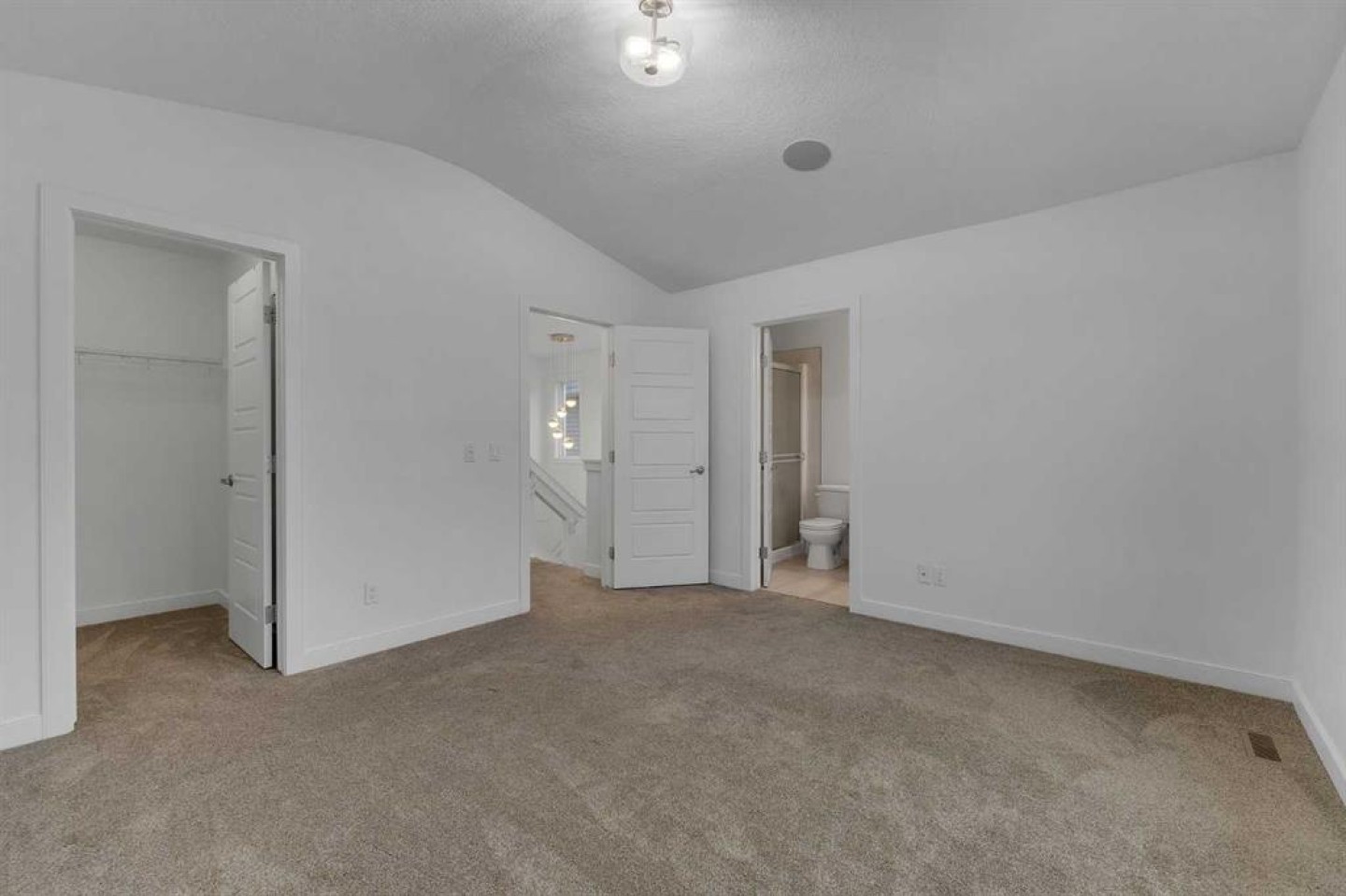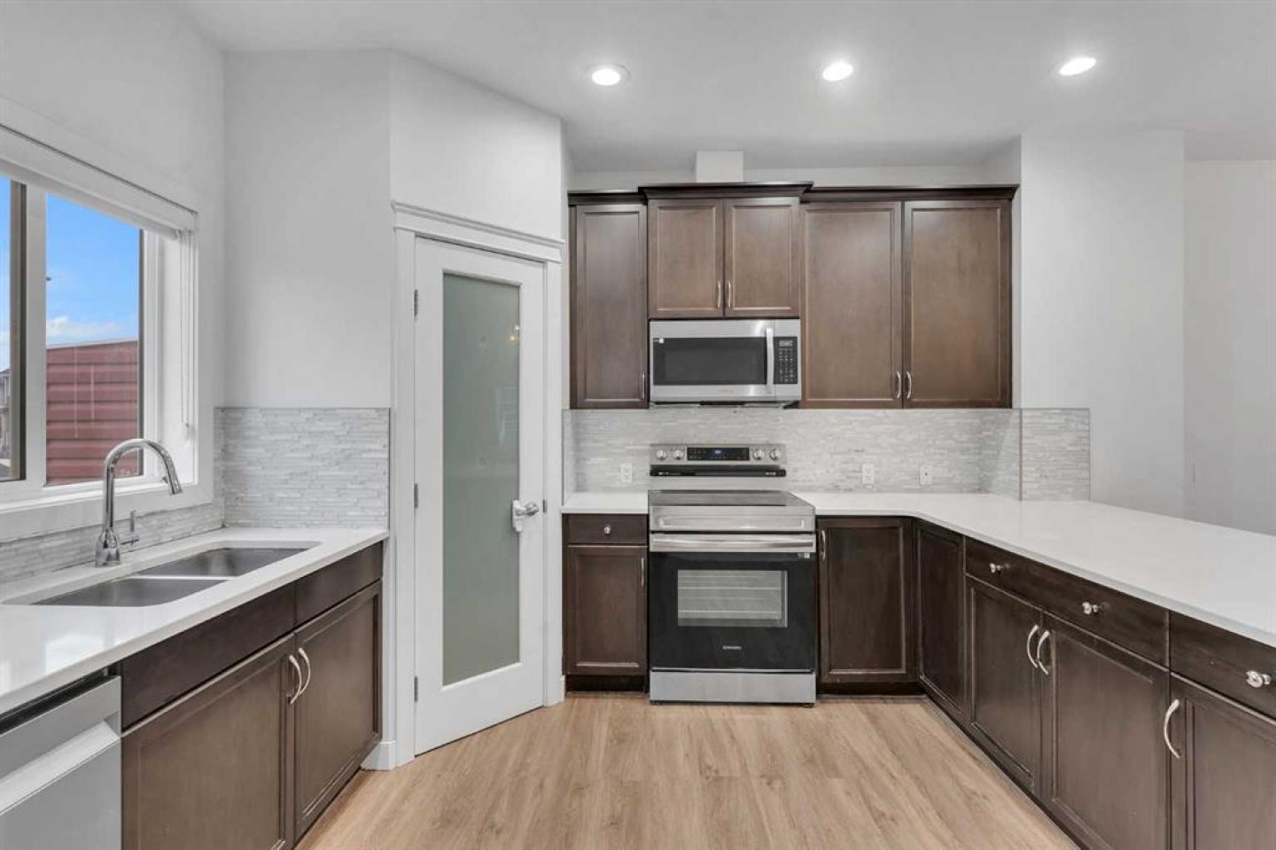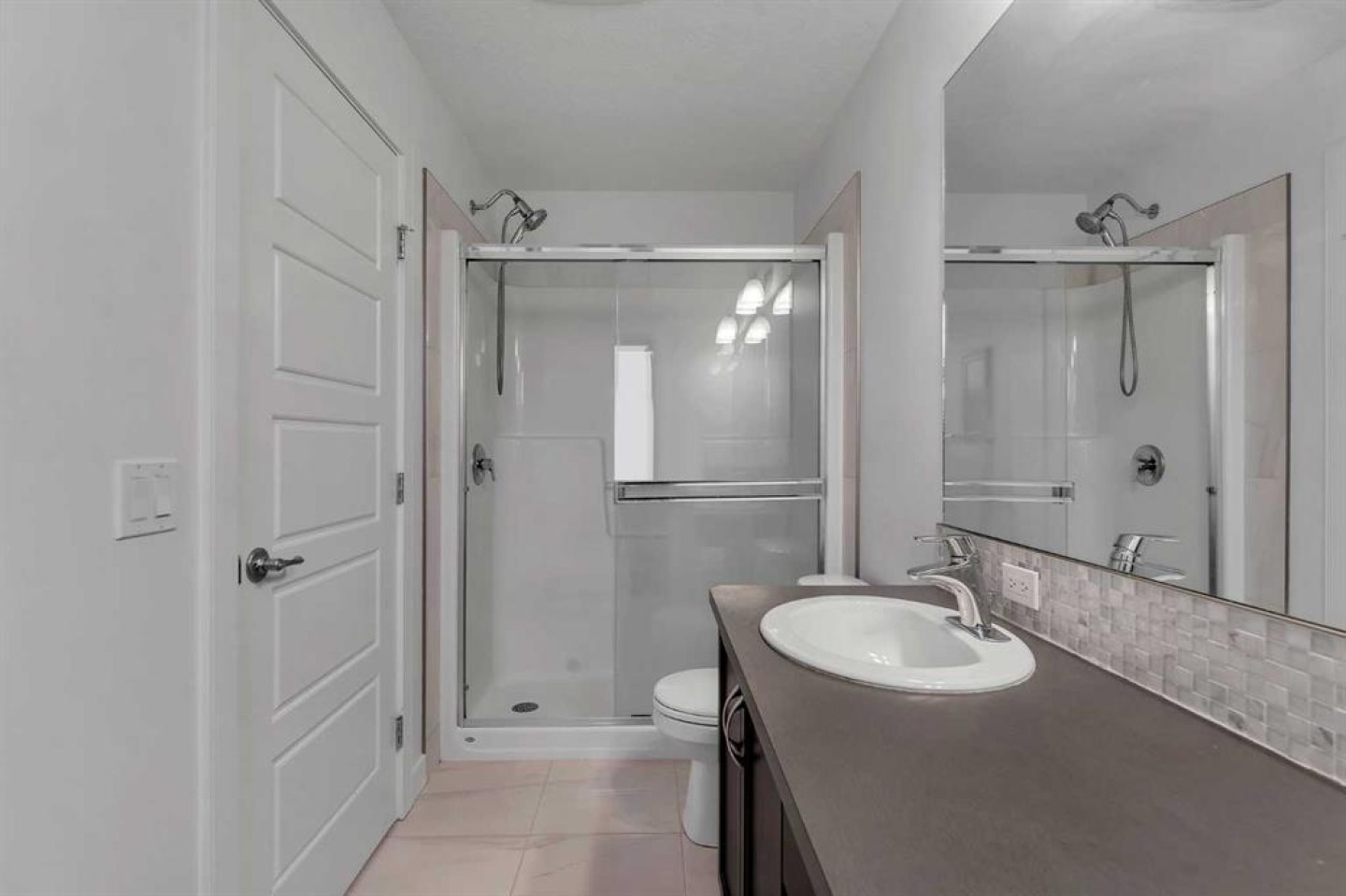 Welcome to this FORMER SHOW HOME semi-detached gem in the vibrant community of Redstone NE, Calgary! Thoughtfully upgraded and meticulously maintained, this stunning home offers a LEGAL BASEMENT SUITE, DOUBLE DETACHED GARAGE, AIR CONDITIONING, DECK, and FULLY FENCED & LANDSCAPED YARD — truly a complete package for homeowners and investors alike. Step inside to a bright and inviting open-concept main floor designed for modern living. The spacious living room flows seamlessly into the dedicated dining area and an upgraded kitchen that will impress any home chef. Featuring sleek quartz countertops, stainless steel appliances, ample cabinetry, and a large kitchen island perfect for entertaining, this space is both functional and stylish. Heading upstairs, you are welcomed by elegant glass railings along the staircase and three well-placed windows that flood the area with natural light. The upper level boasts a beautiful primary bedroom with vaulted ceilings, creating an airy and luxurious retreat. The primary ensuite includes his & her dual sinks and a standing shower. Two additional generously sized bedrooms share a full bathroom, and the strategically placed upper-level laundry adds everyday convenience. A major highlight of this property is the 1-bedroom LEGAL BASEMENT SUITE with a separate side entrance. This self-contained suite offers a bedroom, full bathroom, kitchen, and living space — ideal for rental income or extended family. Outside, enjoy a fully fenced and landscaped backyard complete with a great-sized deck — perfect for summer BBQs and gatherings. The double detached garage provides secure parking and protection from harsh Canadian winters. Located within walking distance to a future school, parks, and plaza, this home offers exceptional accessibility — just 2 minutes to Stoney Trail, 4 minutes to Deerfoot Trail, 10 minutes to Calgary International Airport, and 20 minutes to Downtown Calgary. This property truly checks all the boxes — style, functionality, location, and income potential. Don’t miss your opportunity to own this exceptional home. Book your showing today! Happy Showings!